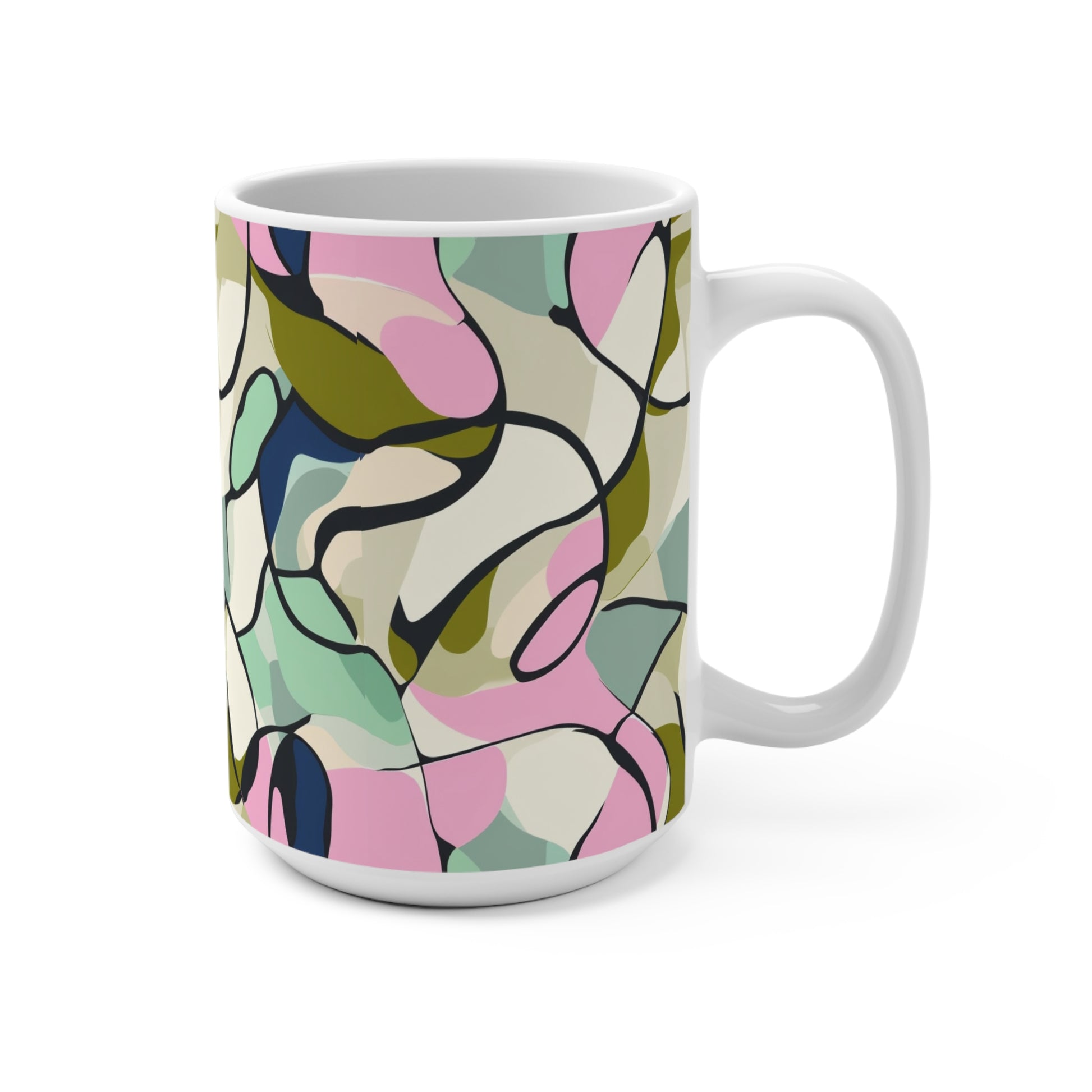 Abstract Floral Mug - 15oz Coffee Cup, Artistic Drinkware, Unique Home Decor, Gift for Her, Birthday, Art Lover