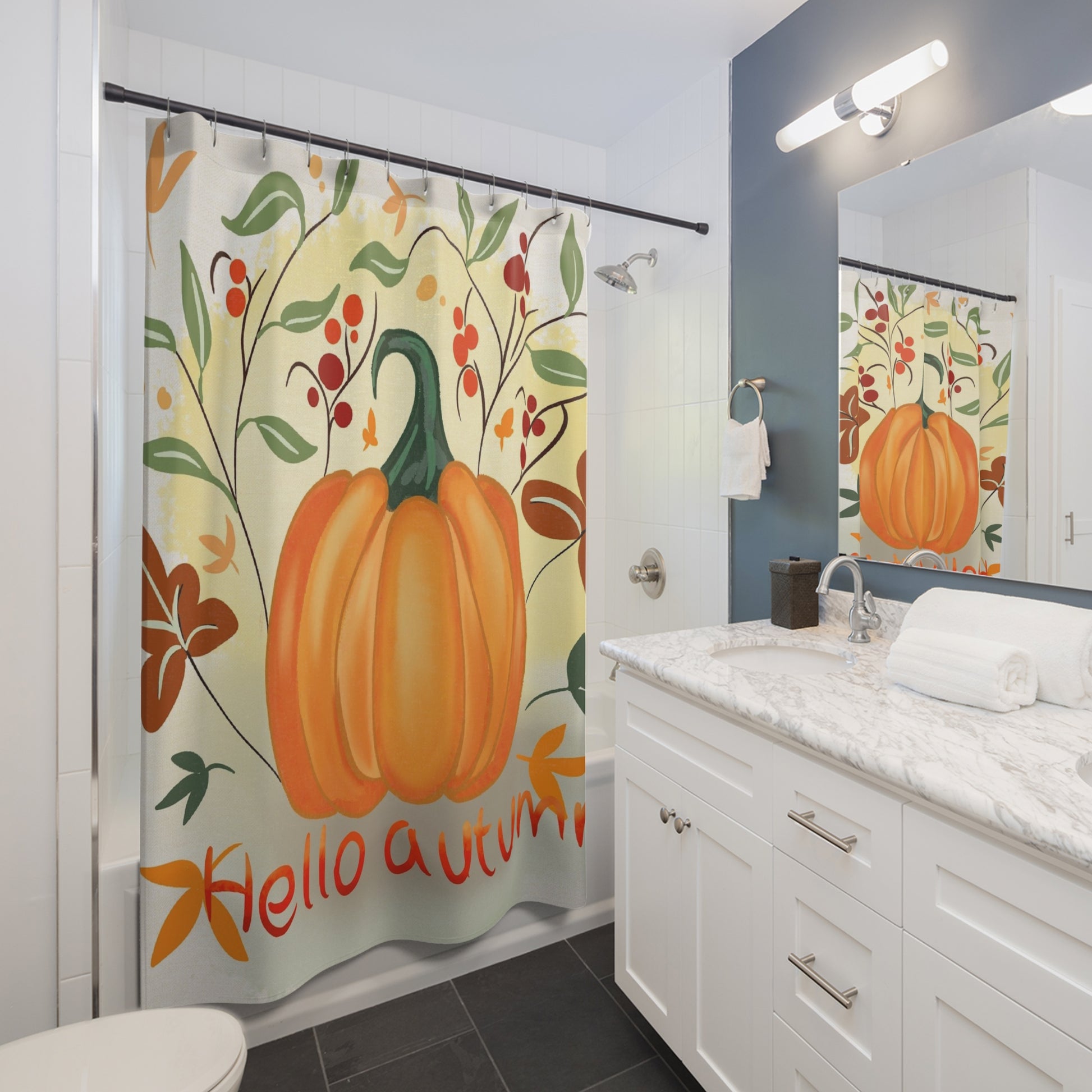 Autumn Pumpkin Shower Curtain, Fall Decor, Bathroom Accessories, Pumpkin Decor, Seasonal Home Decor