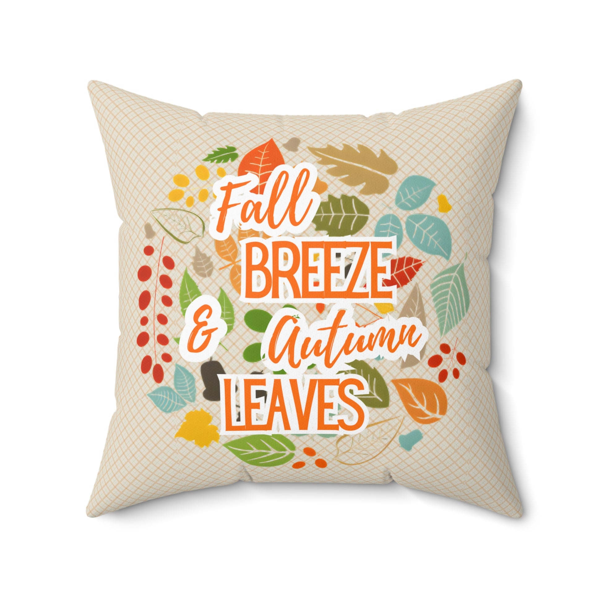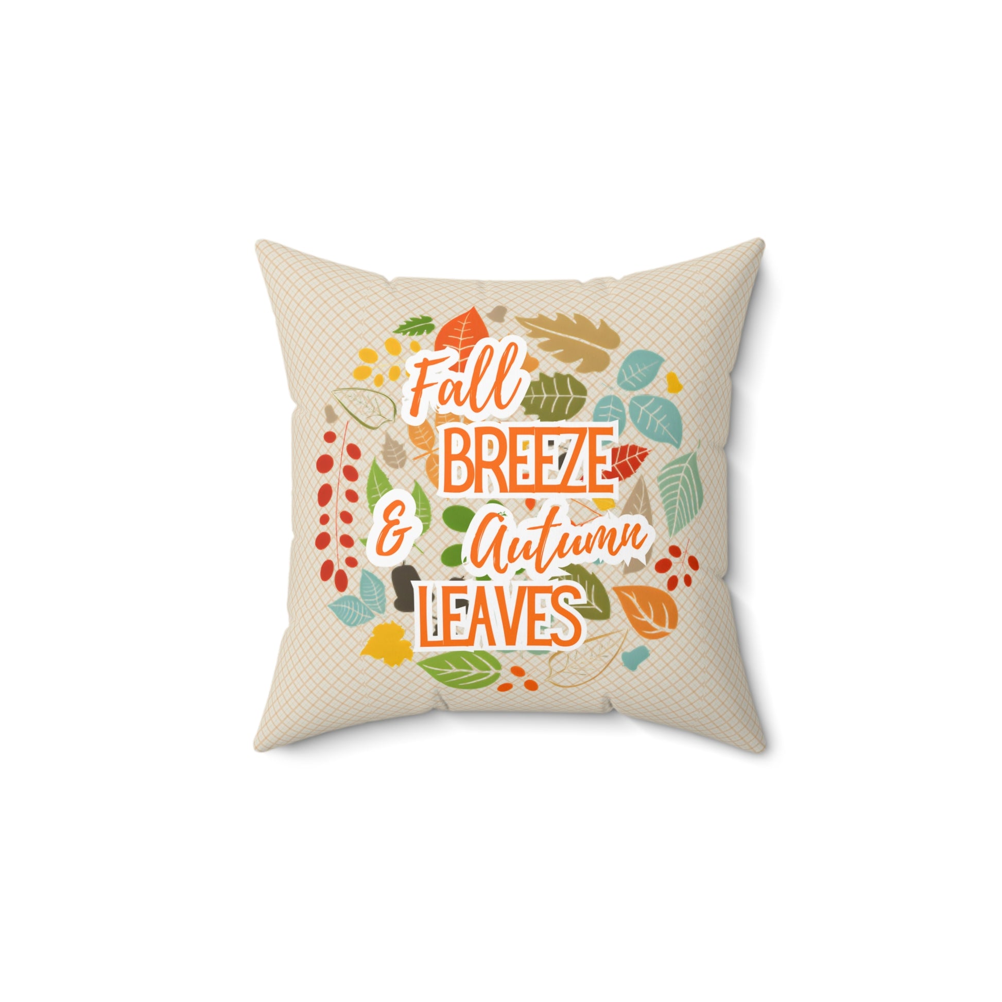 Transform your living space with this cozy square pillow, perfect for adding a touch of autumn charm. The delightful design reads, "Fall Breeze & Autumn Leaves," invoking a warm and inviting atmosphere. Ideal for snuggling up on chilly evenings or adding a festive element to your home decor during the fall season, this pillow is a must-have for anyone who loves autumn vibes. It makes a lovely gift for friends, family, or anyone looking to celebrate the beauty of fall. Perfect for Thanksgiving gatherings, cozy nights in, or simply brightening your living room, this pillow is a testament to seasonal flair and comfort. It’s an essential addition for those who cherish the beauty of nature and the coziness of the autumn season.