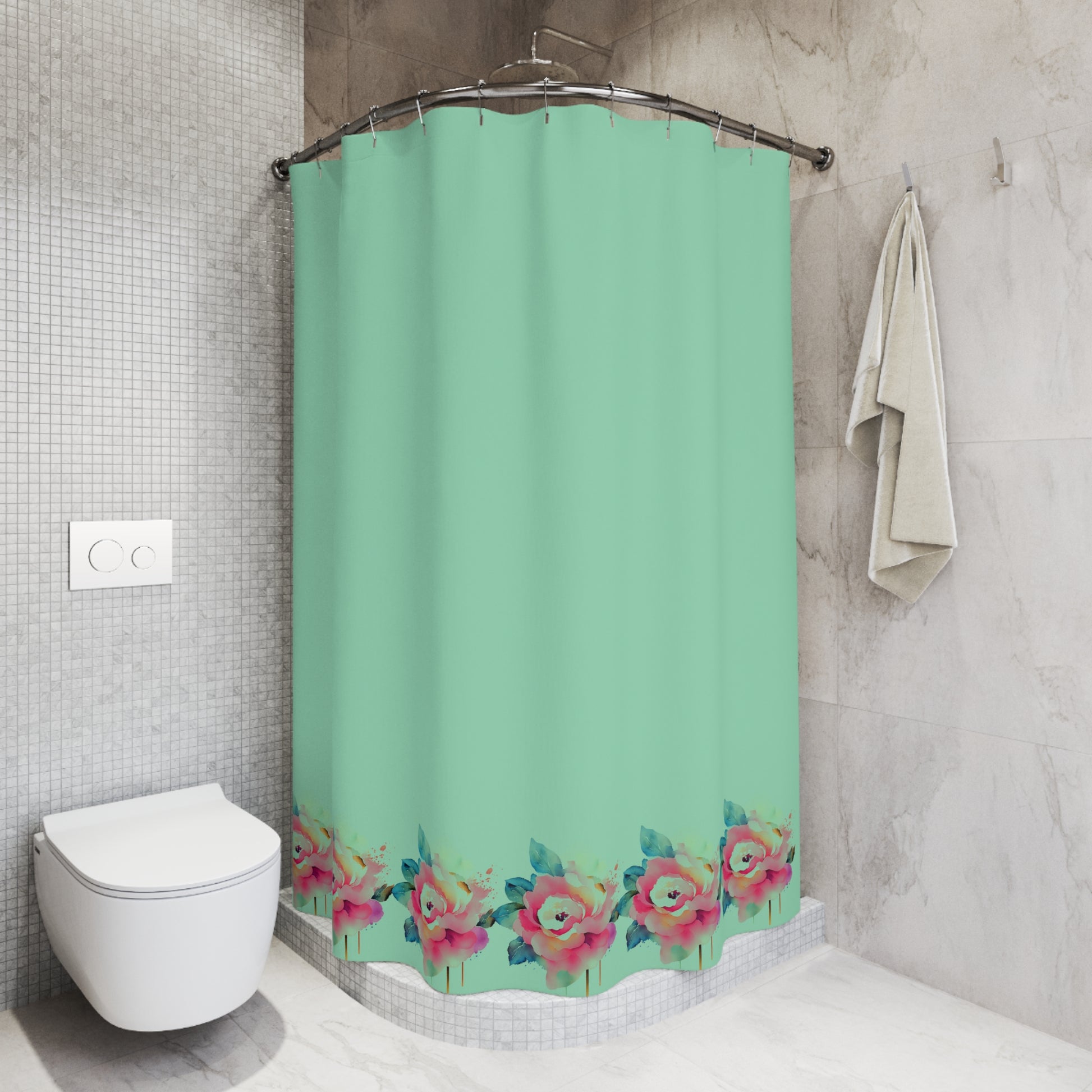 Transform your bathroom into a serene oasis with this elegant shower curtain. Crafted from durable polyester, it showcases a beautiful design that invites a refreshing and vibrant atmosphere. The soothing mint color and floral accents create a calming vibe, perfect for unwinding after a long day. This versatile shower curtain is ideal for adults looking to enhance their home decor, making it a thoughtful gift for housewarmings, holidays, or weddings. Give your space a fresh touch and let the charm of this curtain elevate your daily routine.