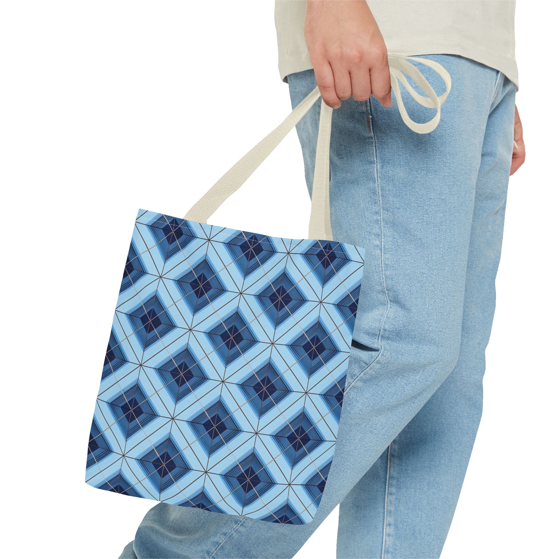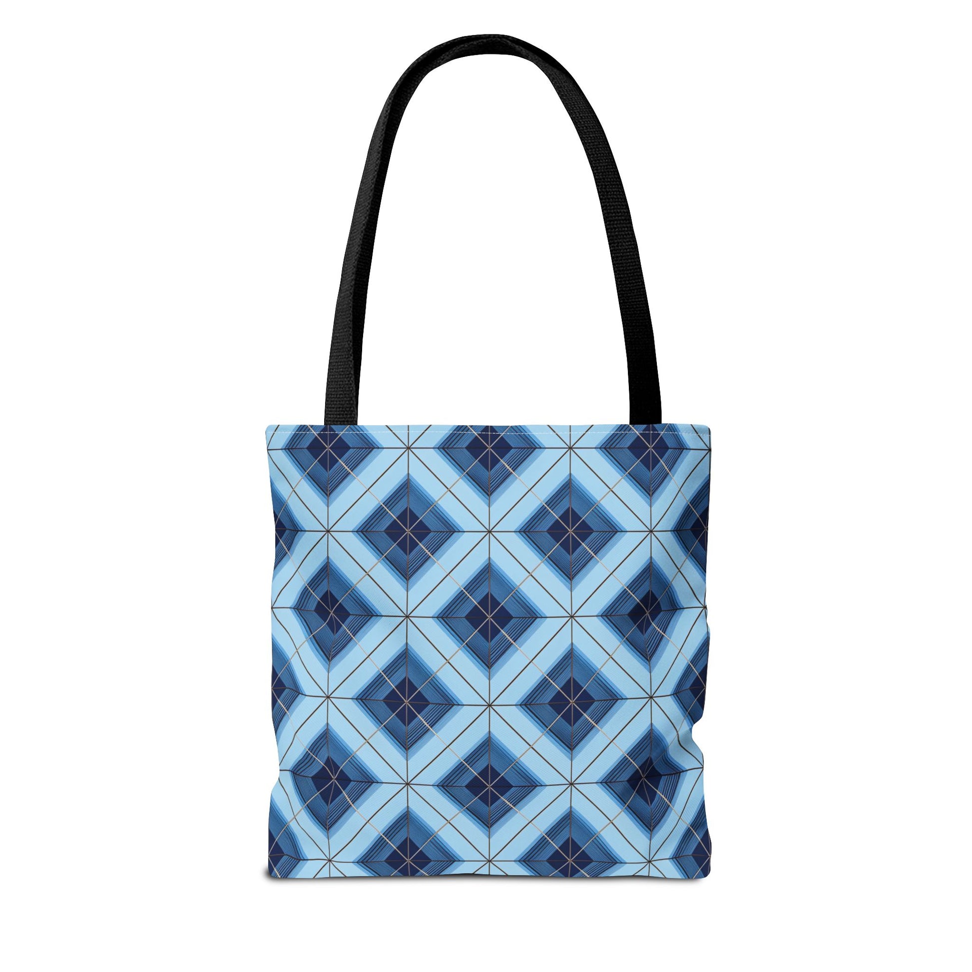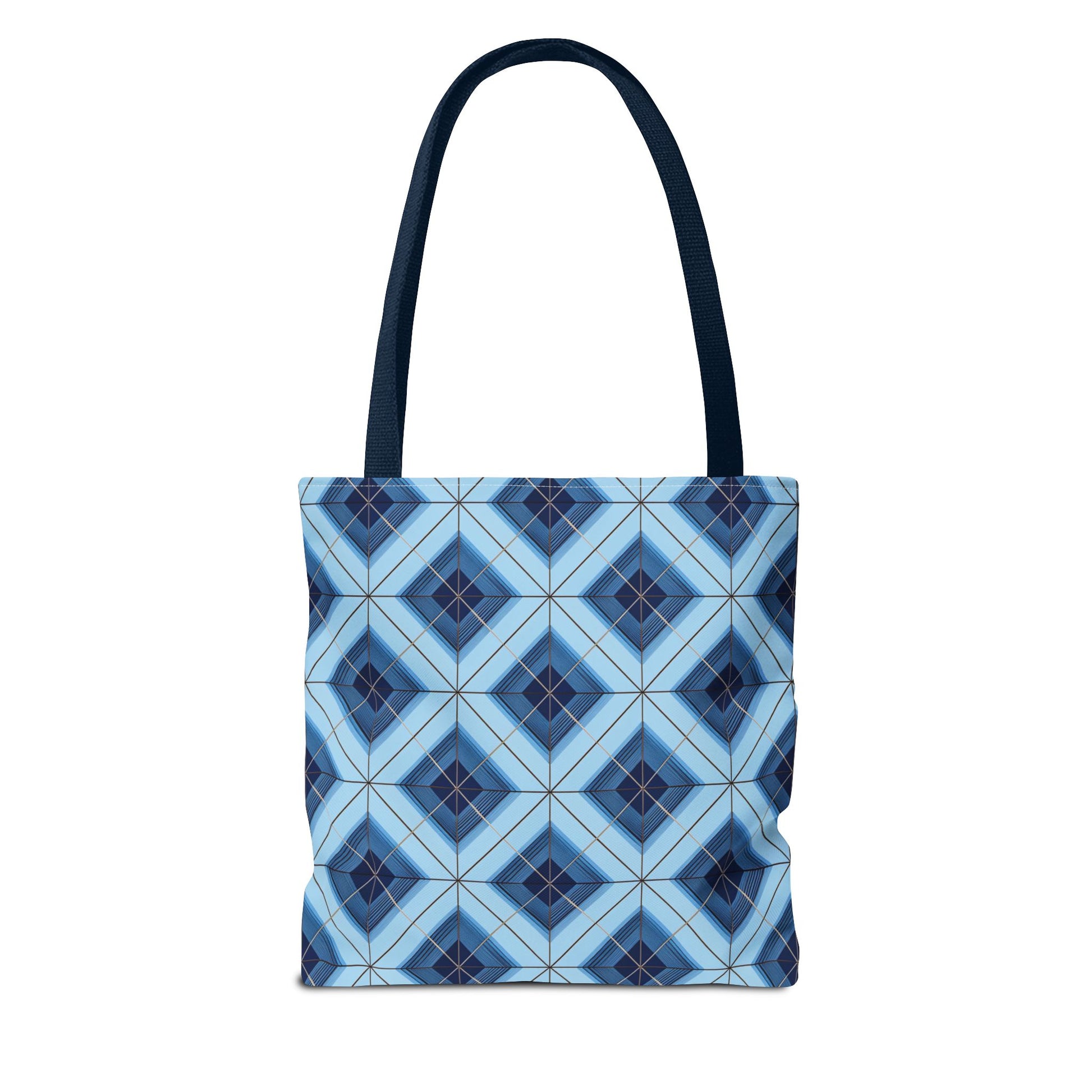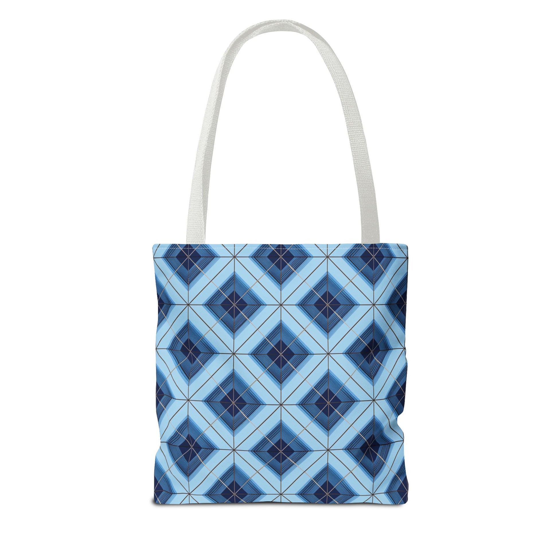 Blue Geometric Tote Bag — Repeating Diamond Pattern AOP
