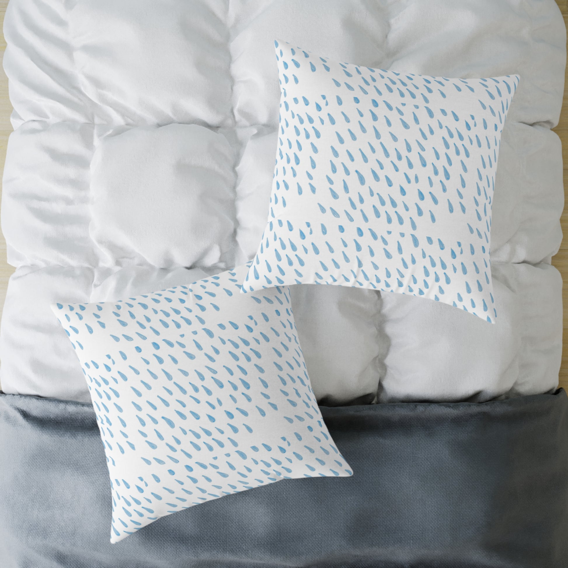 Soft, simple, and quietly modern — this square poly canvas pillow brings a calm, hand-painted rhythm to living rooms and cozy nooks. Pale blue dash marks float across a clean white field, like slow summer rain or a sketchbook of gentle textures. The fine polyester canvas feels silky to the touch while the plump, resilient filling keeps the pillow looking full and relaxed. Because the print is on both sides and the zipper is hidden, it reads as an intentional design element from every angle. Use it to layer on a sofa, lean into on the floor during low-key gatherings, or slide behind your back for a peaceful reading corner.