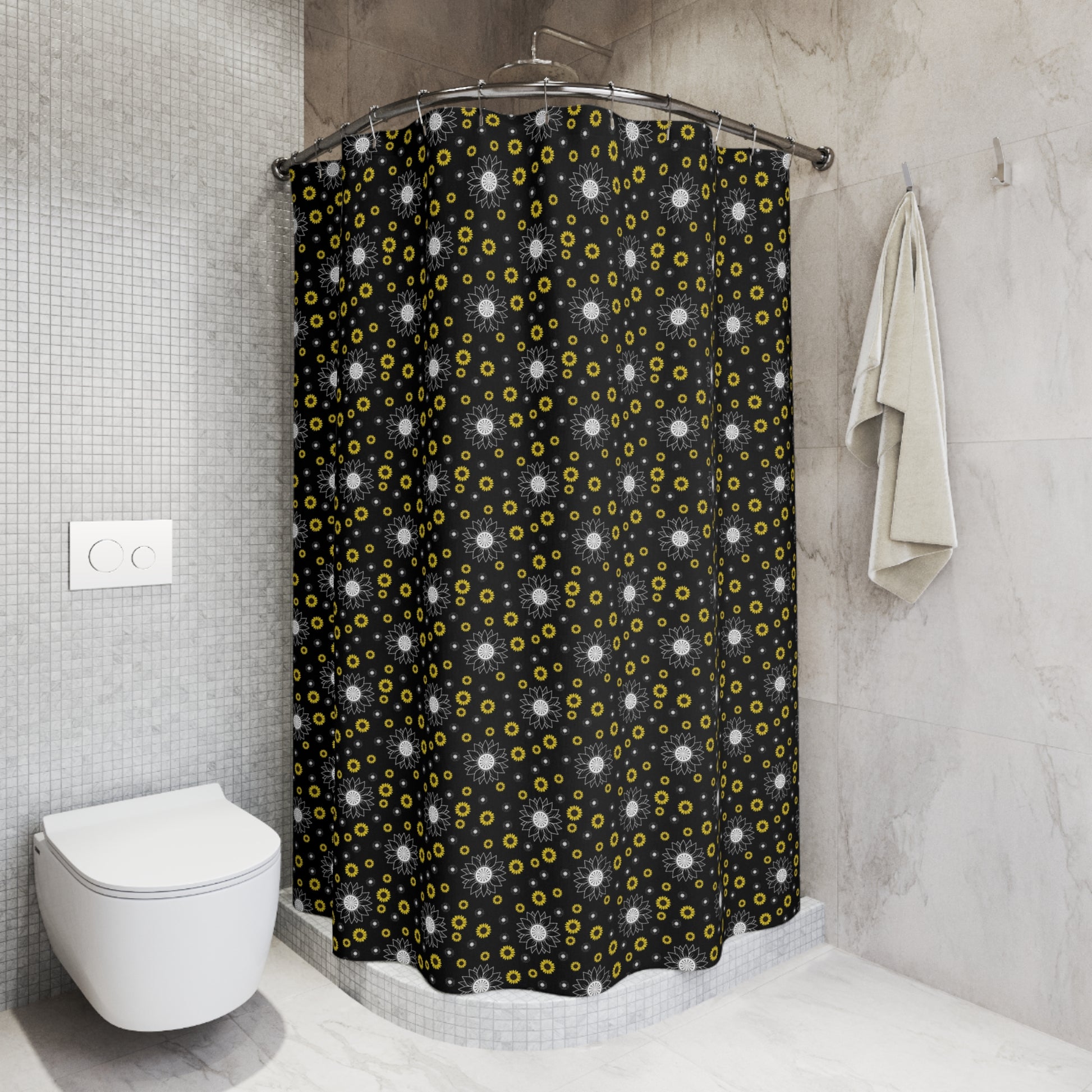 Transform your bathroom with this stylish shower curtain, designed to bring a pop of personality to your space. Crafted from 100% polyester, it boasts durability and a vibrant one-sided print that adds a unique flair. The cheerful, modern pattern creates a lively atmosphere, making every shower feel like a refreshing escape. Ideal for anyone looking to enhance their home decor, this product is perfect for young adults, families, or anyone with a flair for creativity. Celebrate occasions like housewarming parties, holidays, or just a fresh start in your home with this eye-catching accessory. It's a great way to showcase your personal style while elevating your bathroom's ambiance.