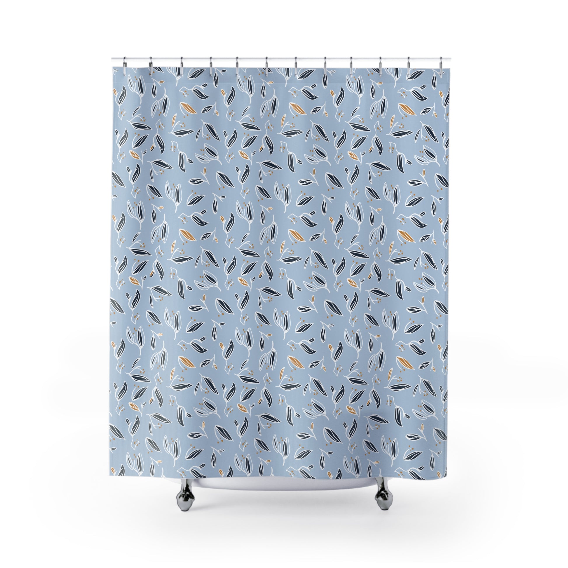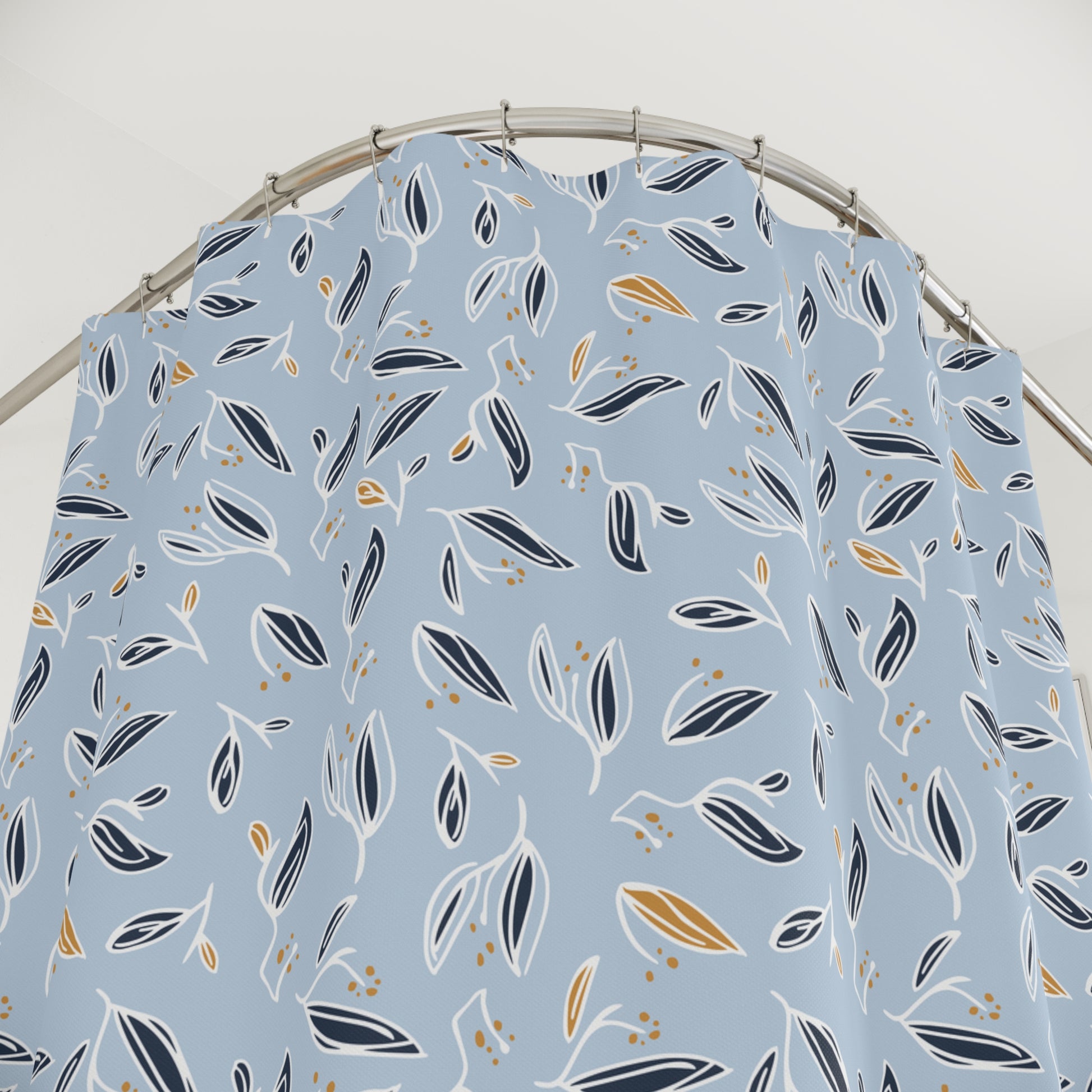 Botanical Blue Shower Curtain, Floral Bathroom Decor, Nature-Inspired Curtain, Modern Home Accessories, Gift for Nature Lovers