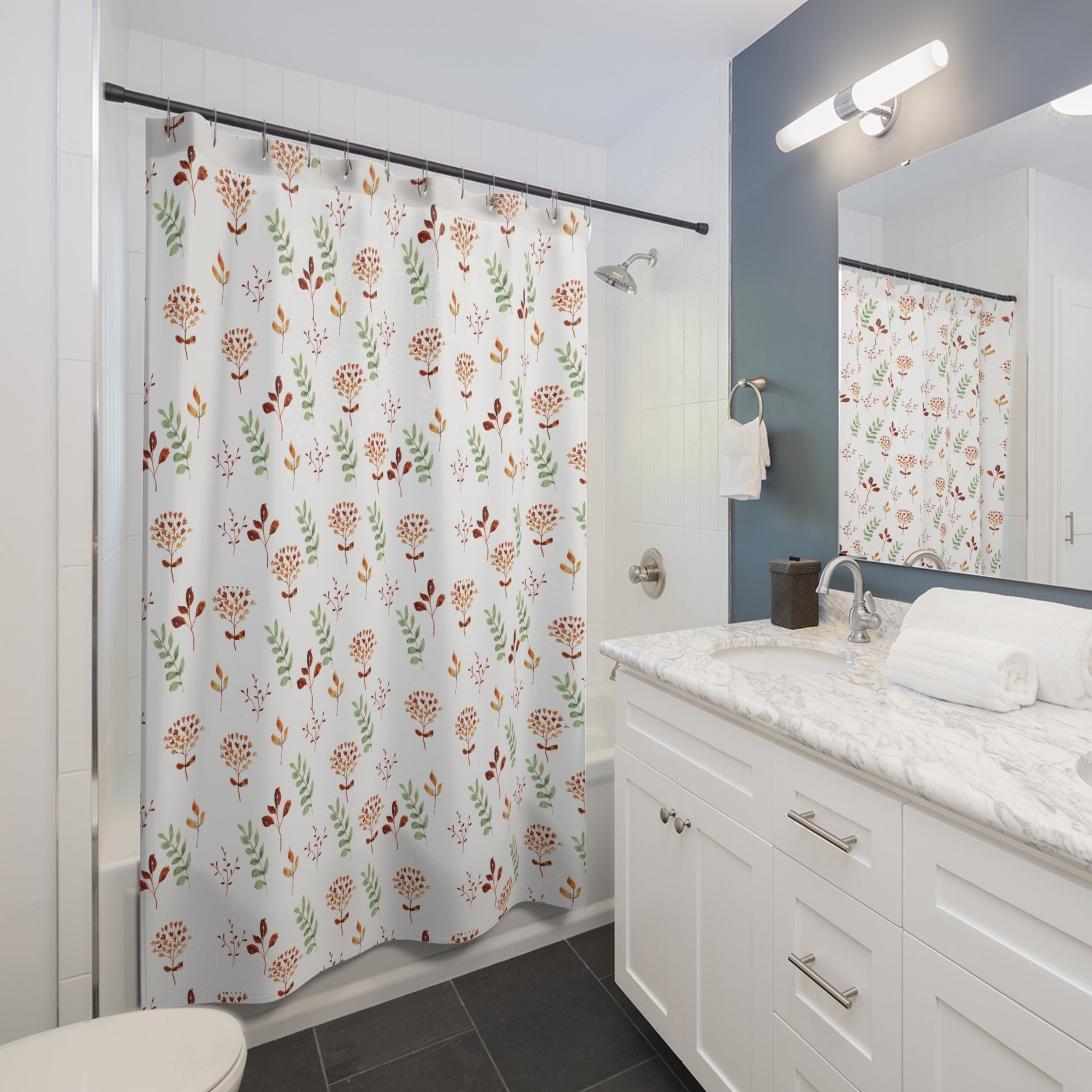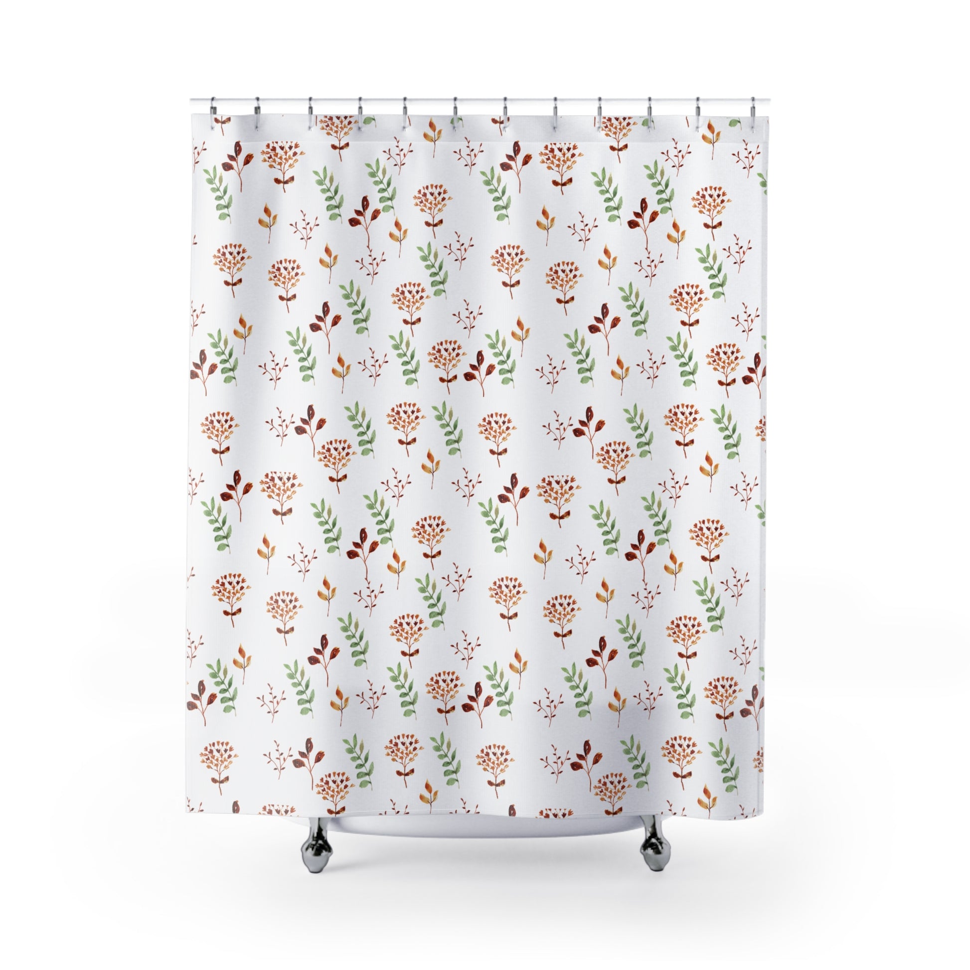 Bring a gentle, hand-painted garden into your bathroom with this lightweight polyester shower curtain. Soft watercolor florals in warm terracotta, muted golds, and leafy greens float across a crisp white background, creating a calm, airy atmosphere. The subtle, organic pattern keeps things feeling fresh without overwhelming the space — it’s the kind of detail that makes mornings feel slower and evenings feel cozier. Hang it on your tub to add quiet color and a touch of nature-inspired charm that complements wooden accents, rattan baskets, and vintage brass fixtures.