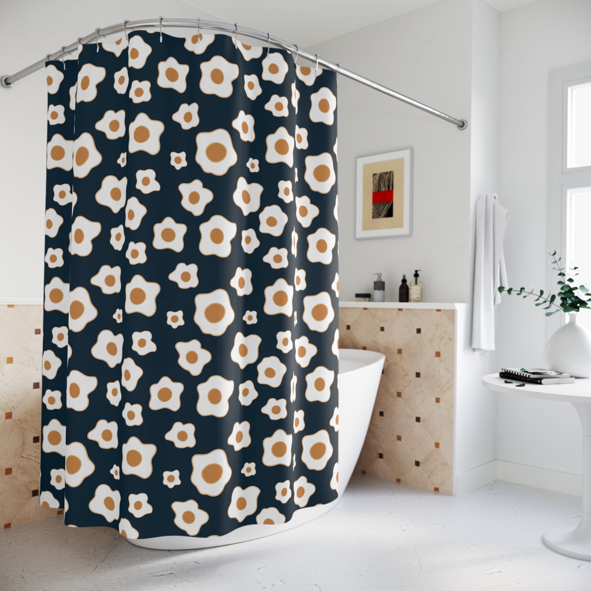 Transform your bathroom into a serene oasis with this delightful shower curtain. Made from 100% polyester, it offers durability and quick-drying benefits, ensuring your space stays fresh and beautiful. The eye-catching one-sided print features charming floral patterns on a classic navy background, providing a perfect blend of elegance and warmth. Ideal for anyone looking to elevate their bathroom decor, this shower curtain suits modern, eclectic, or minimalist styles. Perfect for gifting on occasions like housewarmings, birthdays, or even holidays like Mother's Day, it’s a thoughtful addition for friends or family who appreciate cozy, stylish spaces. Add a pop of personality and create a tranquil environment as you unwind in your own sanctuary.