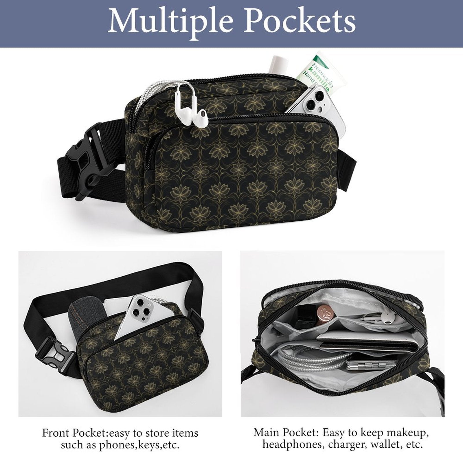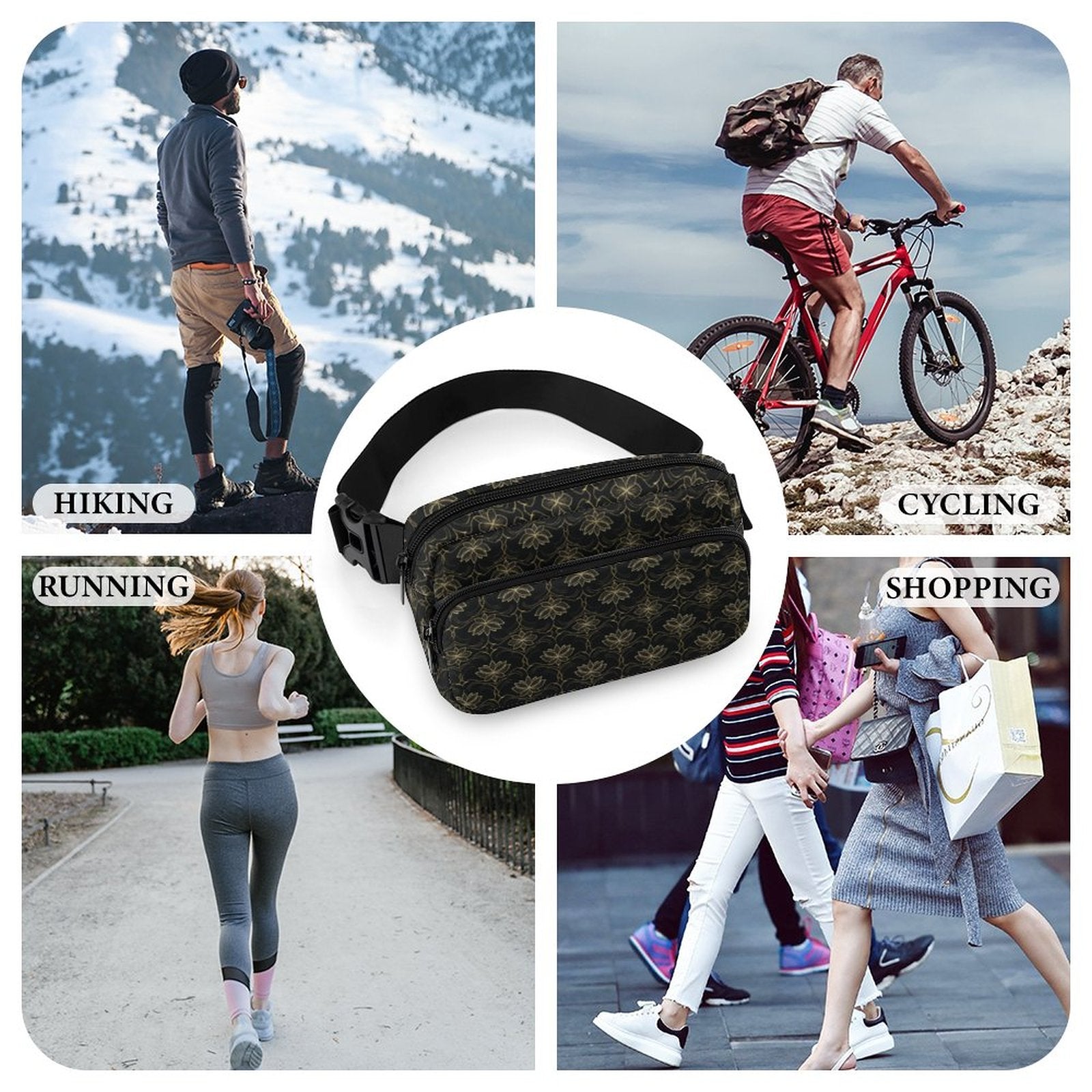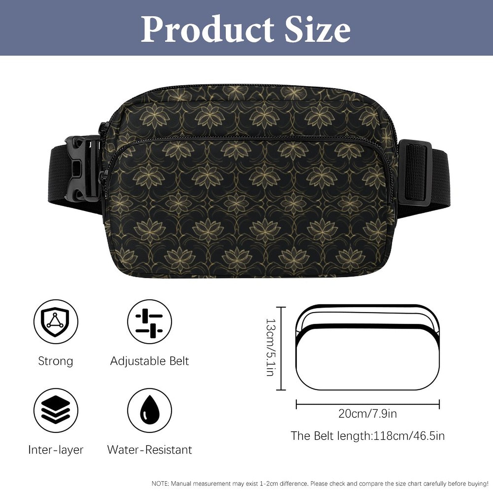The Bum Bag (All-over printing), made of high-quality 300d twill fabric, is sturdy, wear-resistant, and durable, ensuring long-lasting use. The Bum Bag offers multi-functionality, making it an excellent choice for going out, as it can release your hands from carrying heavy items. The Bum Bag features an adjustable waist strap, allowing you to adjust it according to your needs, and can be worn around your waist or hung on your chest. The main pocket is large enough to hold your mobile phone and other personal items, while the side pockets are perfect for keys or other small items.