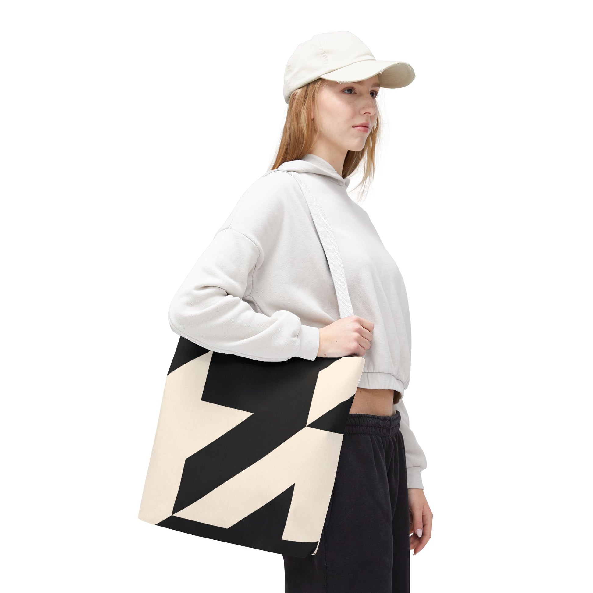 Elevate your everyday style with this stunning tote bag. Crafted from 100% polyester, it boasts durability and a chic design that effortlessly complements any outfit. The sleek black and cream pattern adds a modern touch, making it perfect for both casual outings and special occasions. Whether you’re heading to the farmers' market, a picnic, or just out and about, this tote provides ample space for your essentials while showcasing your unique taste. Ideal for fashion-forward individuals or as a thoughtful gift for friends and family on birthdays, holidays, and celebrations, this tote bag is a must-have for anyone looking to combine function with flair.
