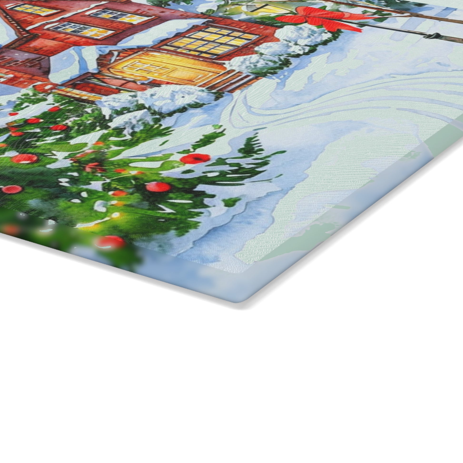 This beautifully designed Glass Cutting Board brings a warm and festive touch to your kitchen. Featuring a vibrant Christmas scene, it exudes a joyful holiday spirit, perfect for holiday cooking and entertaining. Ideal for food enthusiasts and anyone who loves to celebrate the season, this cutting board is not just functional but also a delightful decoration. It's great for Christmas gatherings, family dinners, and holiday parties, serving as an eye-catching centerpiece for your culinary creations. Whether you're preparing a festive feast or simply slicing vegetables, this cutting board elevates the experience and can also make a thoughtful gift for housewarmings or seasonal celebrations.