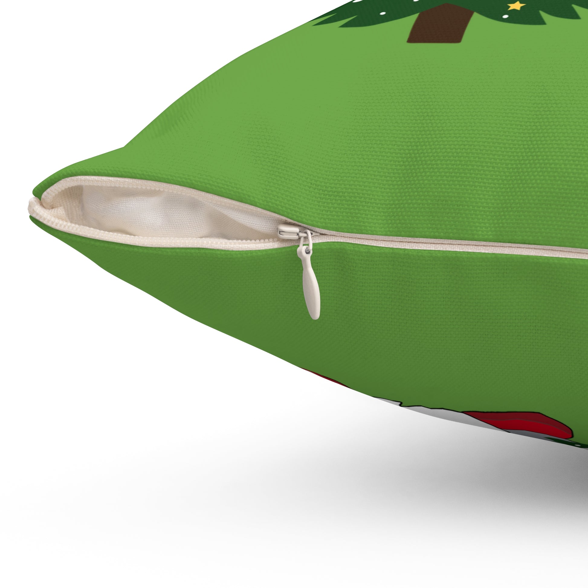A cozy holiday accent that brings whimsy to any living space. This square throw pillow features a cheerful gnome in a red hat beside a twinkling Christmas tree, set against a warm green background. The double-sided, vibrant print holds its color over time, and the concealed beige zipper keeps the look clean. Use the generously sized recycled polyester insert to fluff the pillow for a plump, inviting shape that sits nicely on sofas, armchairs, or bedroom benches. It’s the kind of small, festive detail that turns ordinary rooms into warm, lived-in spaces during the holiday season.
