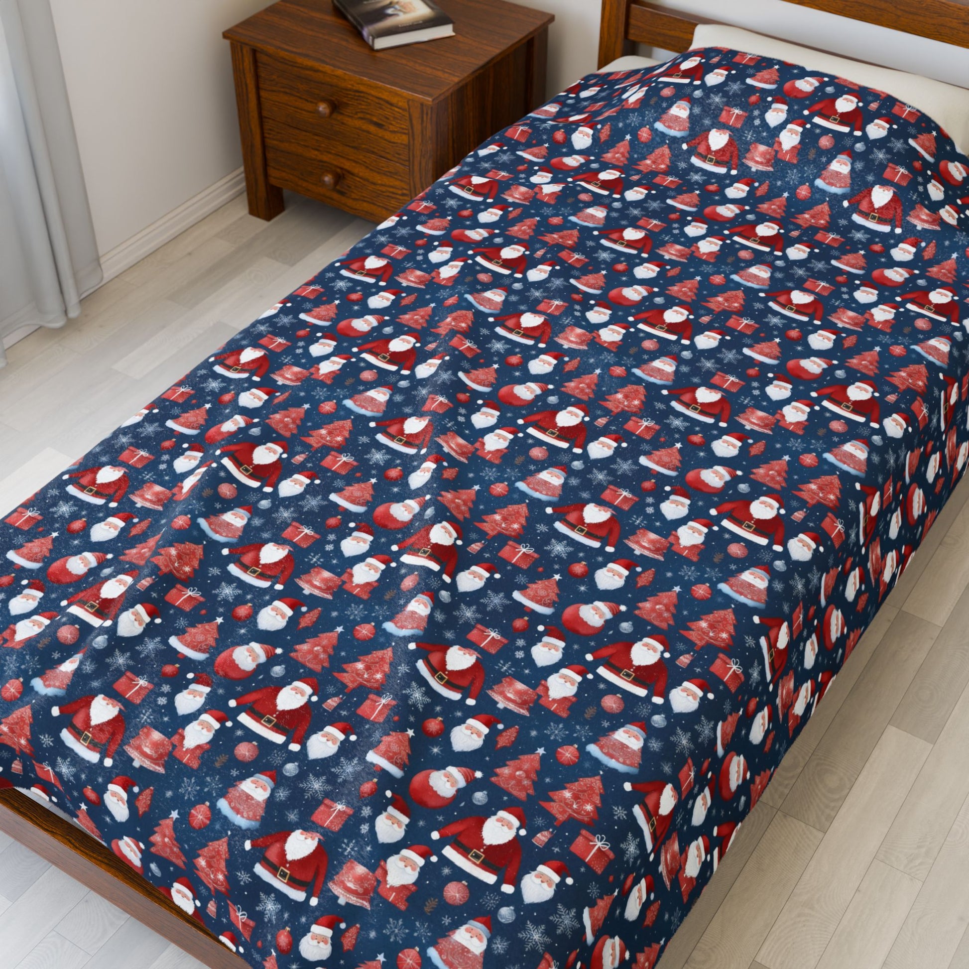 Wrap yourself in a velvety hug built for cozy nights and holiday mornings. This plush blanket features a tight, vibrant print on one side with a soft white reverse — a tactile contrast that invites you to curl up with a book, sip something warm, or stretch out for an afternoon nap. The medium-weight fabric drapes beautifully over a sofa or at the foot of a bed, while the dense pile holds color and detail so the festive pattern stays bright through repeated use. It’s crafted to feel indulgent against the skin yet rugged enough for everyday family life.