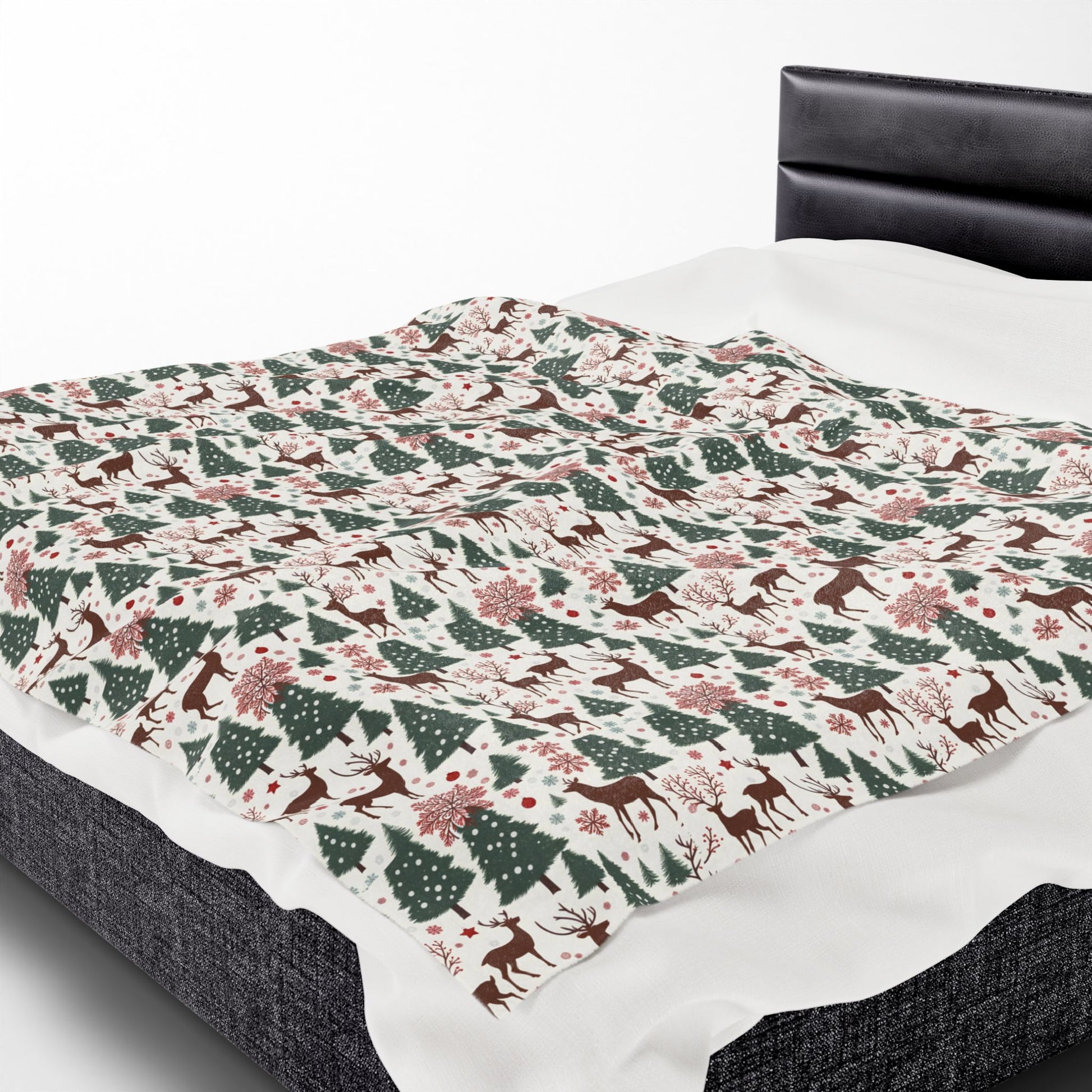 Christmas Reindeer & Pine Trees Velveteen Plush Blanket — Cozy Holiday Throw