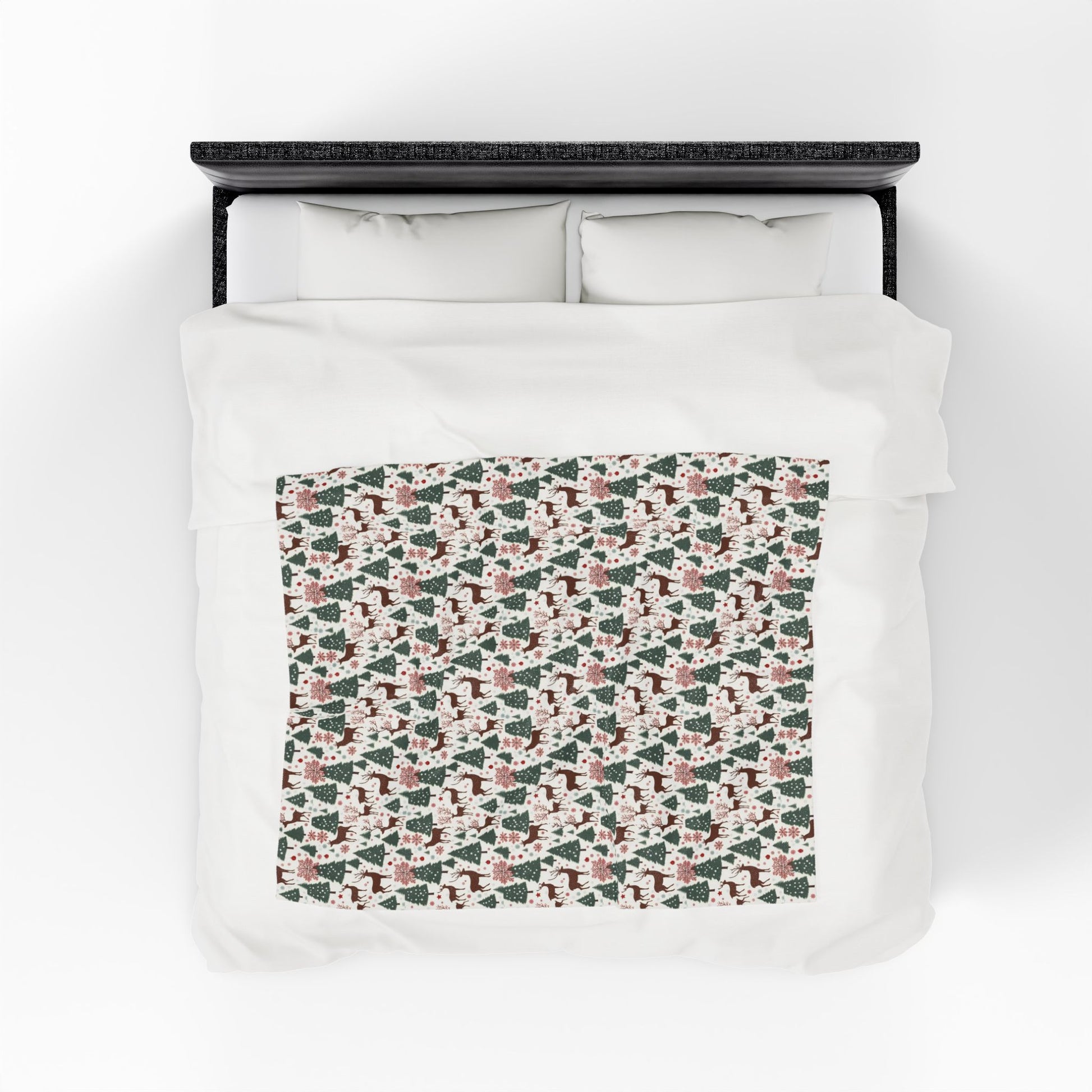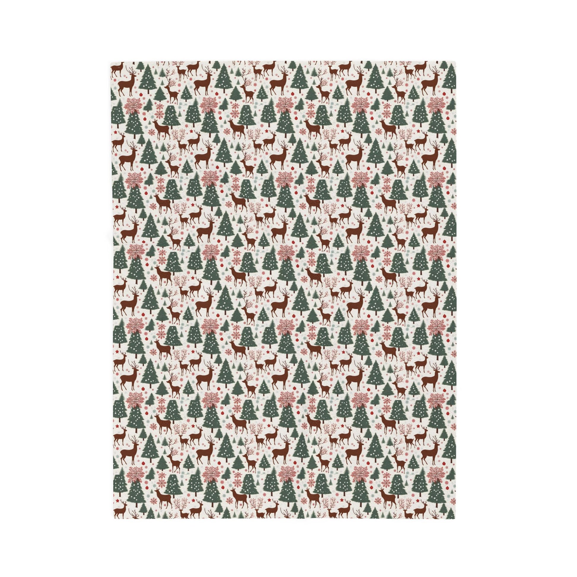 Christmas Reindeer & Pine Trees Velveteen Plush Blanket — Cozy Holiday Throw