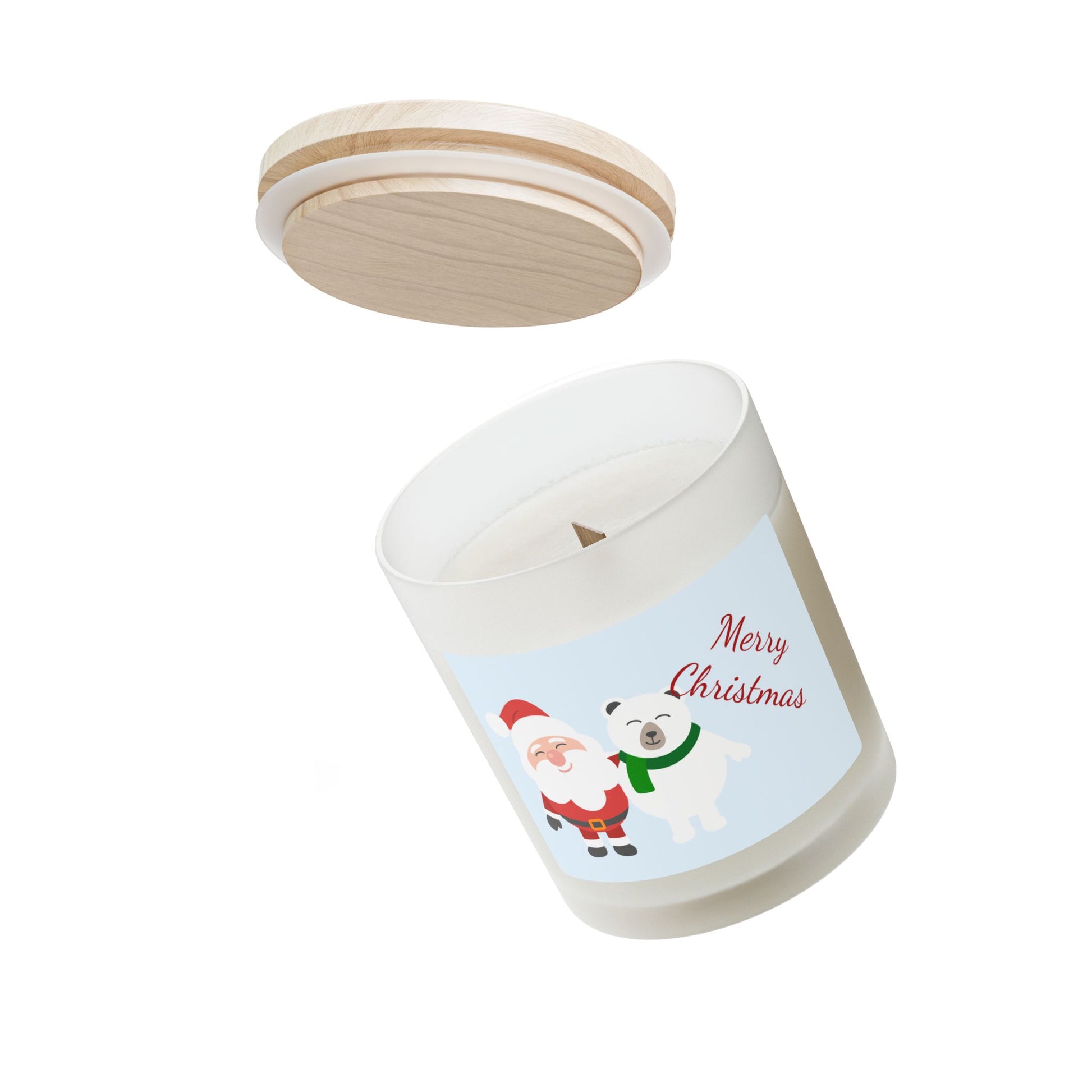 Christmas Santa & Polar Bear Frosted Glass Candle — 11oz Merry Christmas Holiday Scented Candle