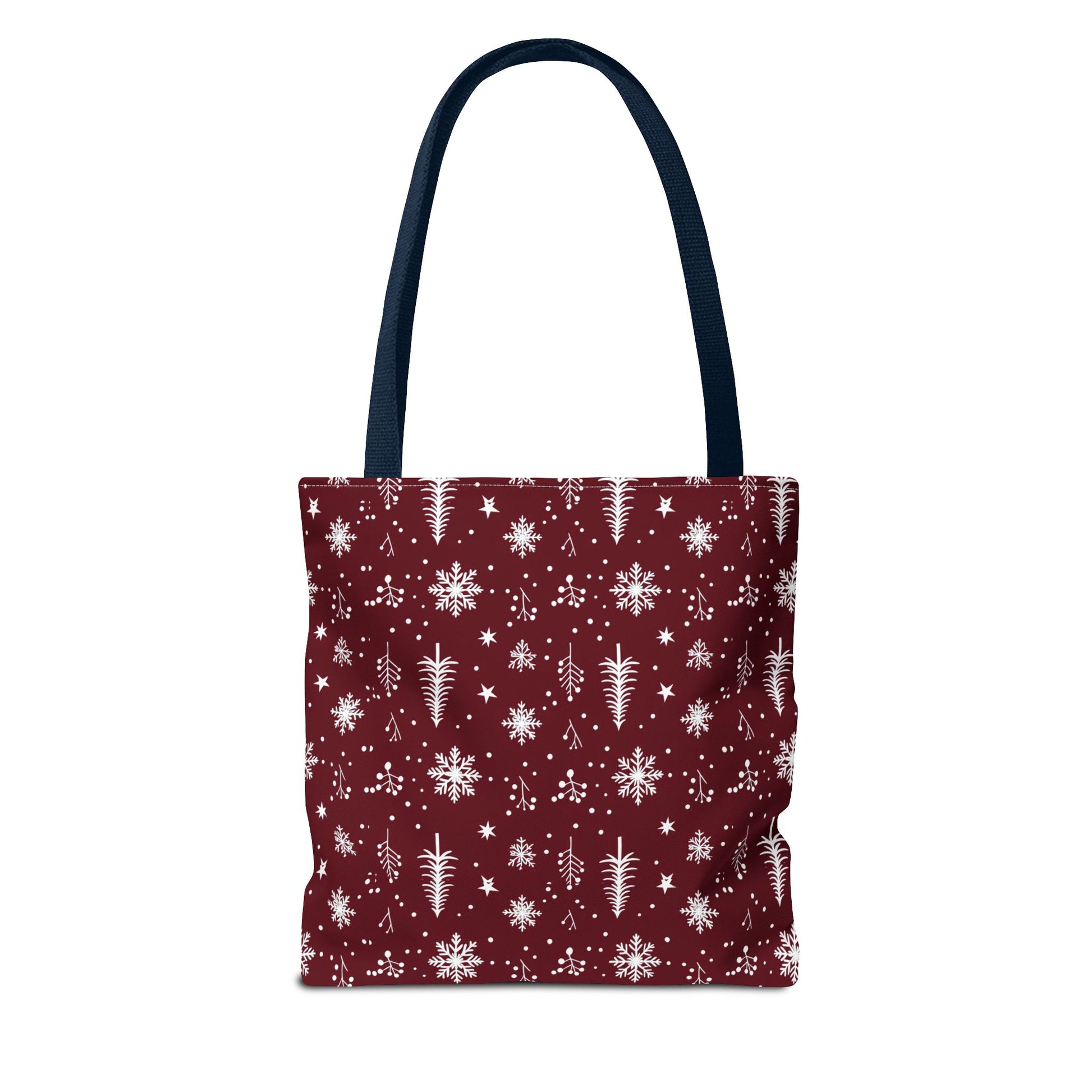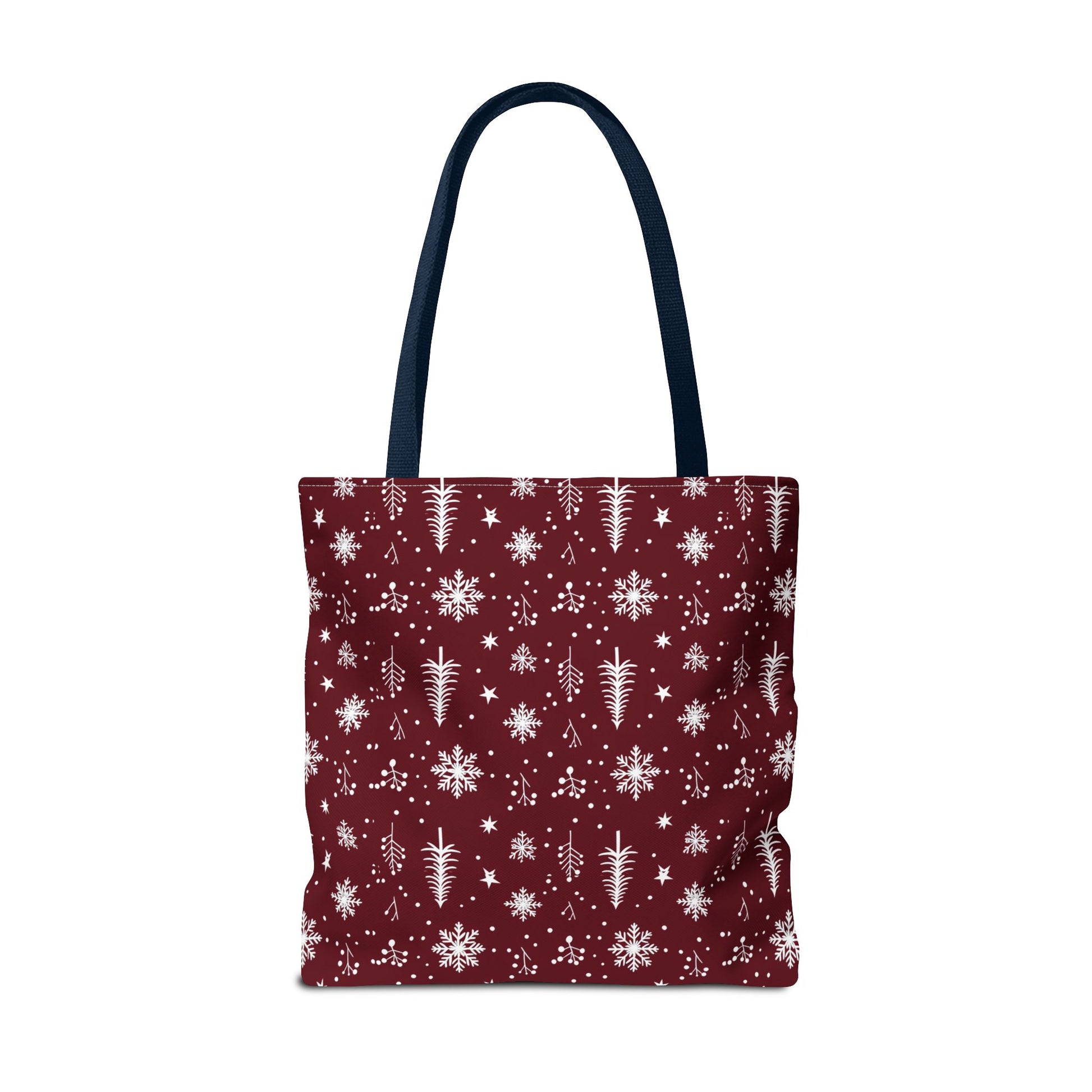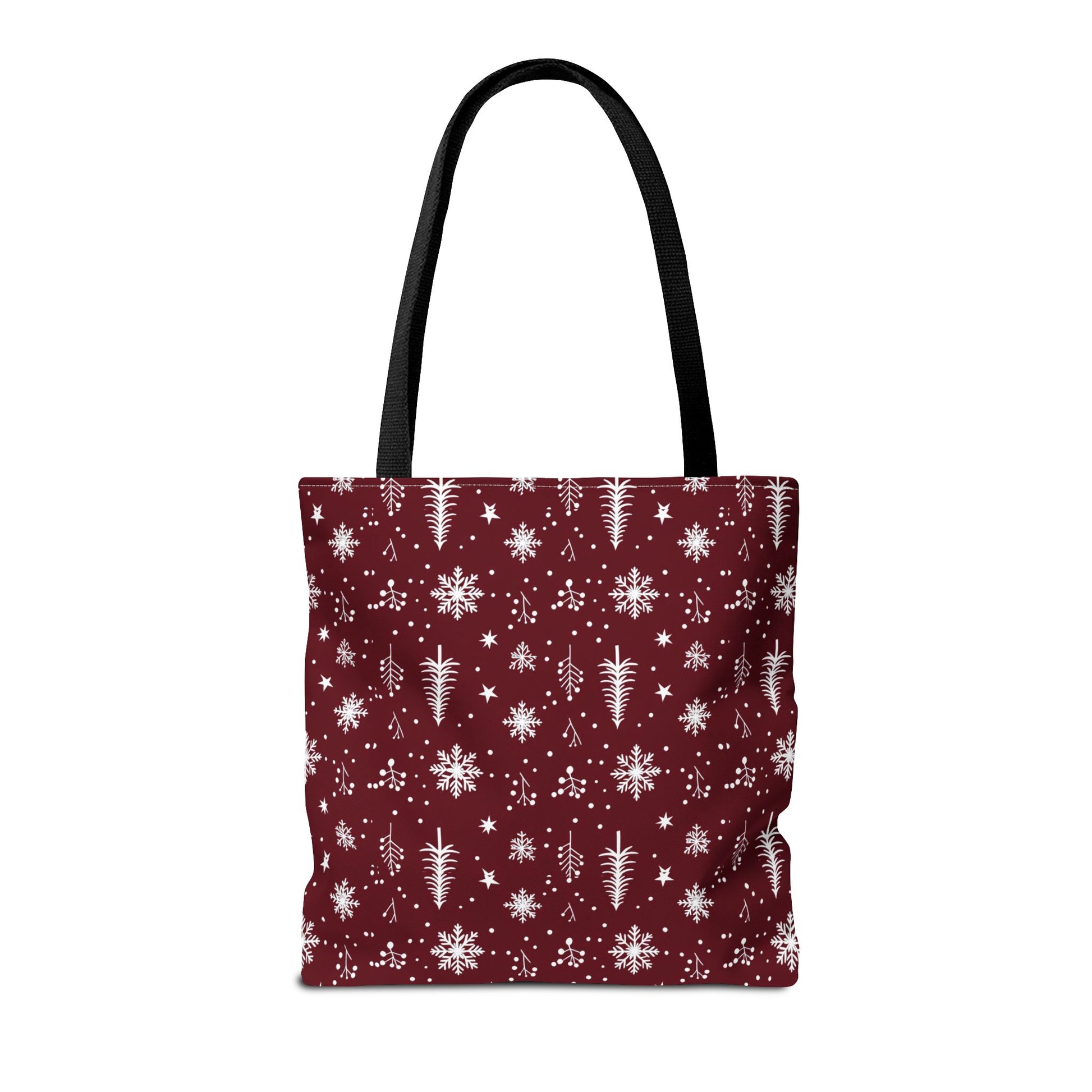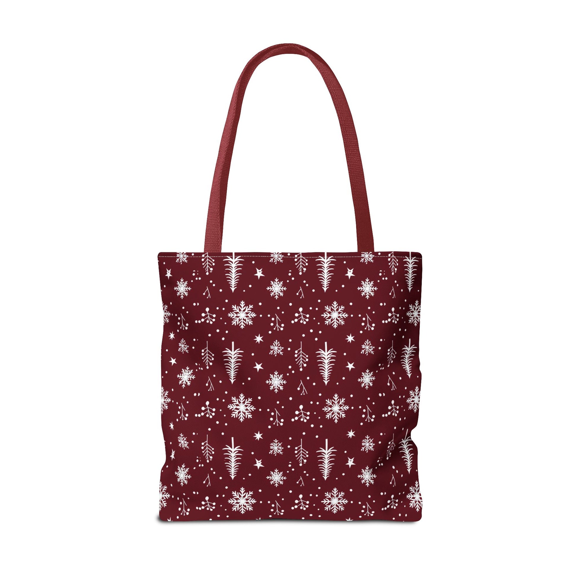 Christmas Snowflake Tote Bag – Burgundy Holiday Patterned Carryall