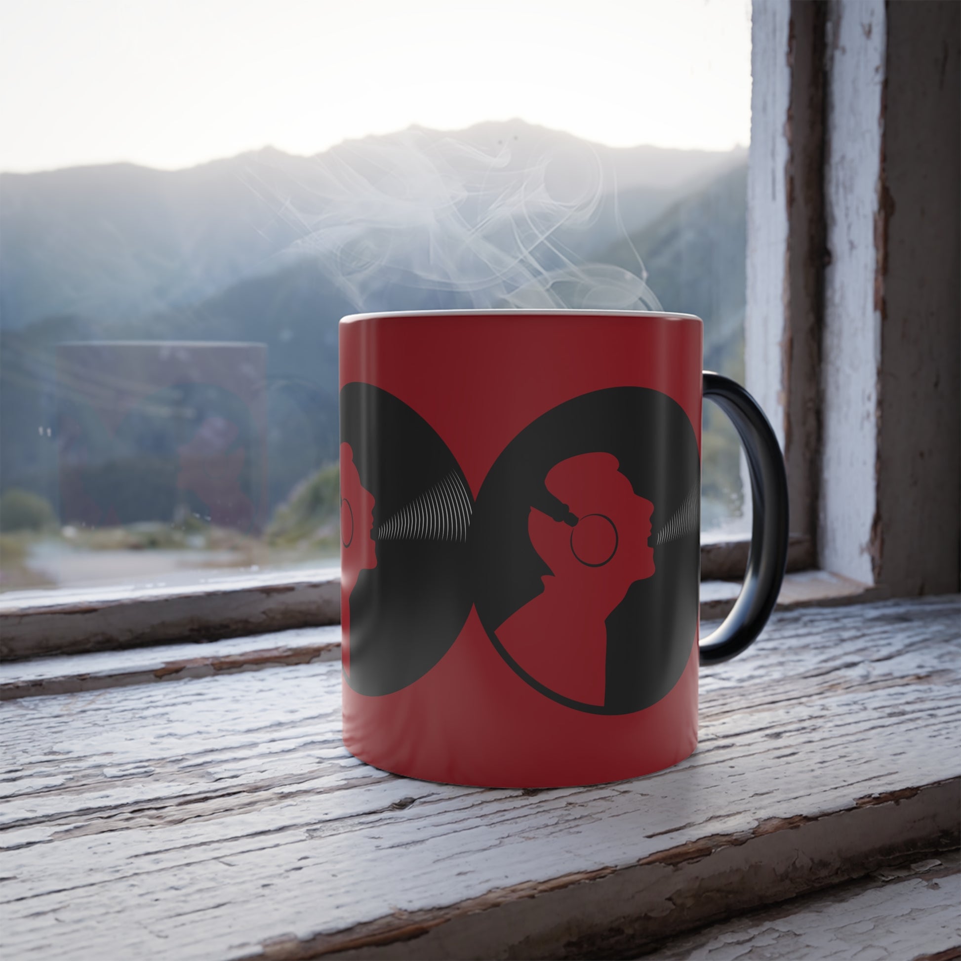Color Morphing Mug for Music Lovers, Unique Gift for Birthdays, Fun Drinkware, Red & Black Design, Creative Coffee Mug