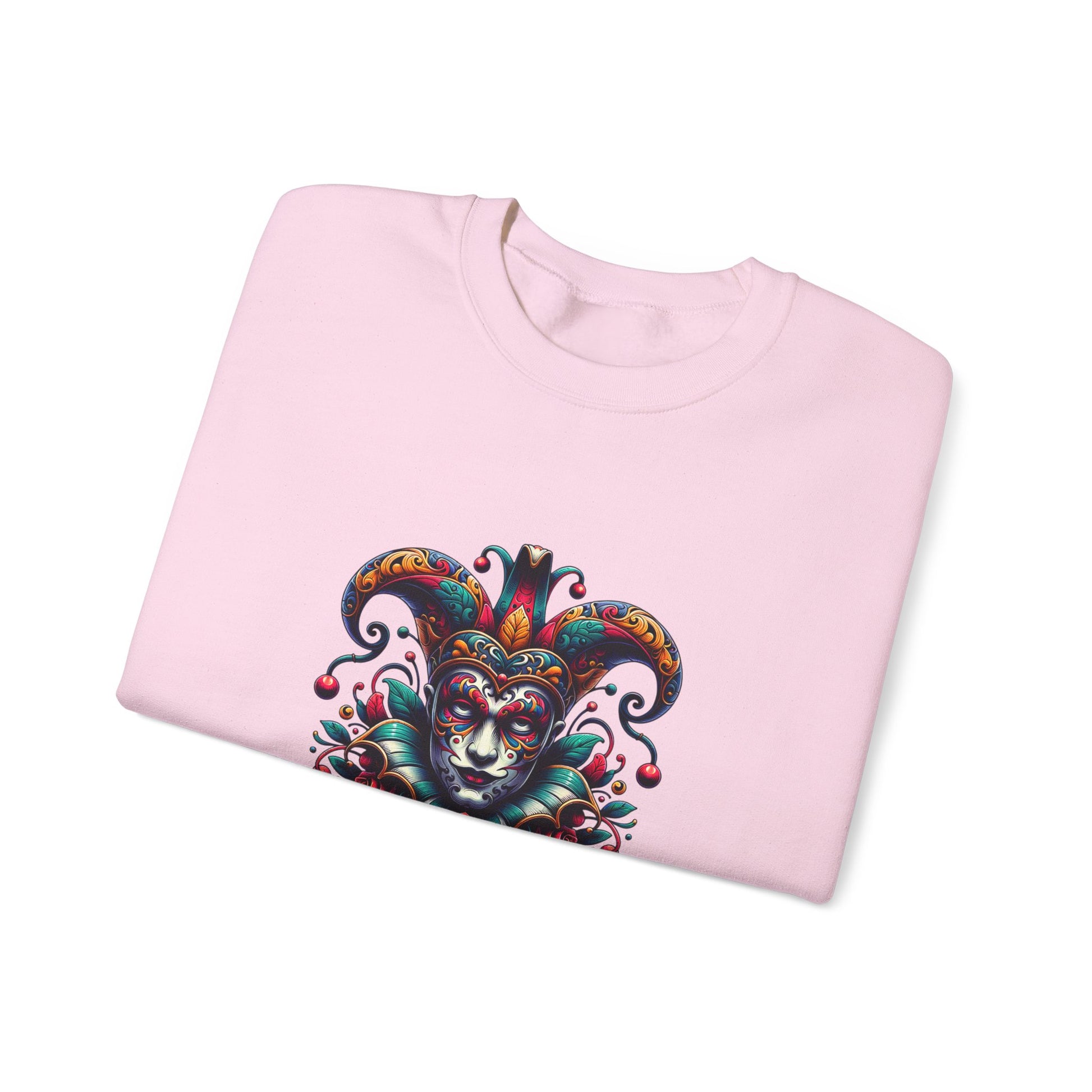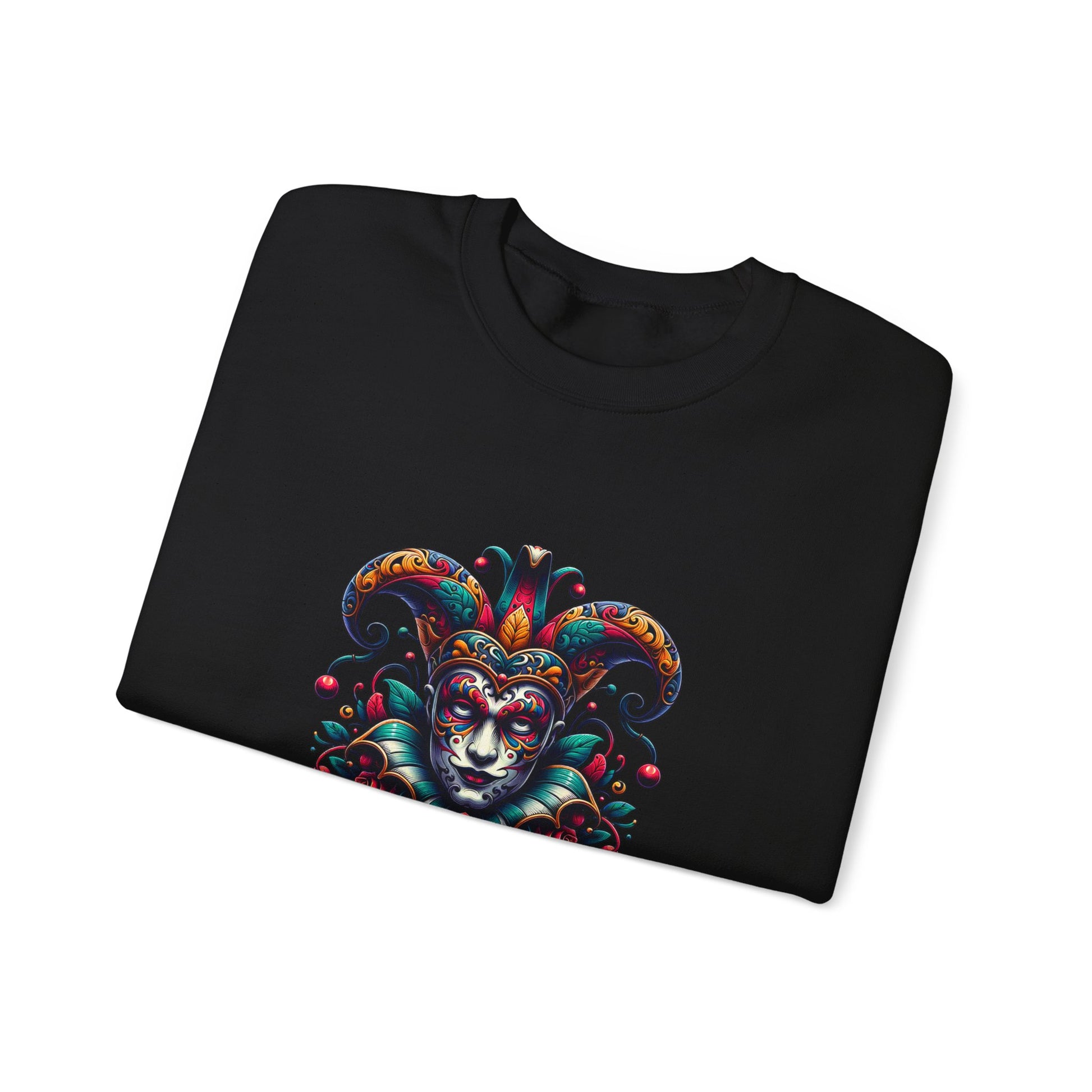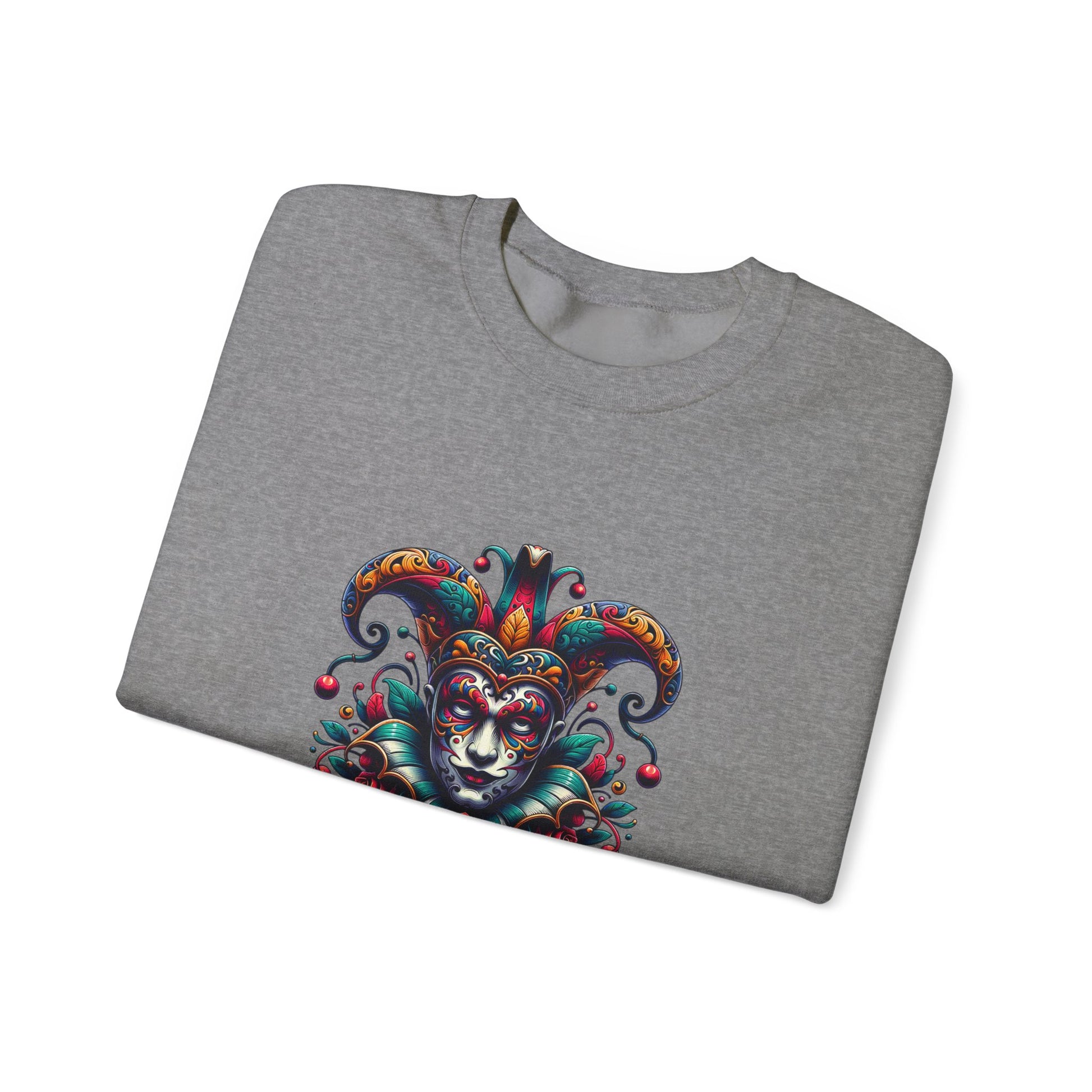 Colorful Jester Sweatshirt, Unisex Heavy Blend Crewneck, Unique Art Apparel, Trendy Fashion, Cozy Gift for Adults