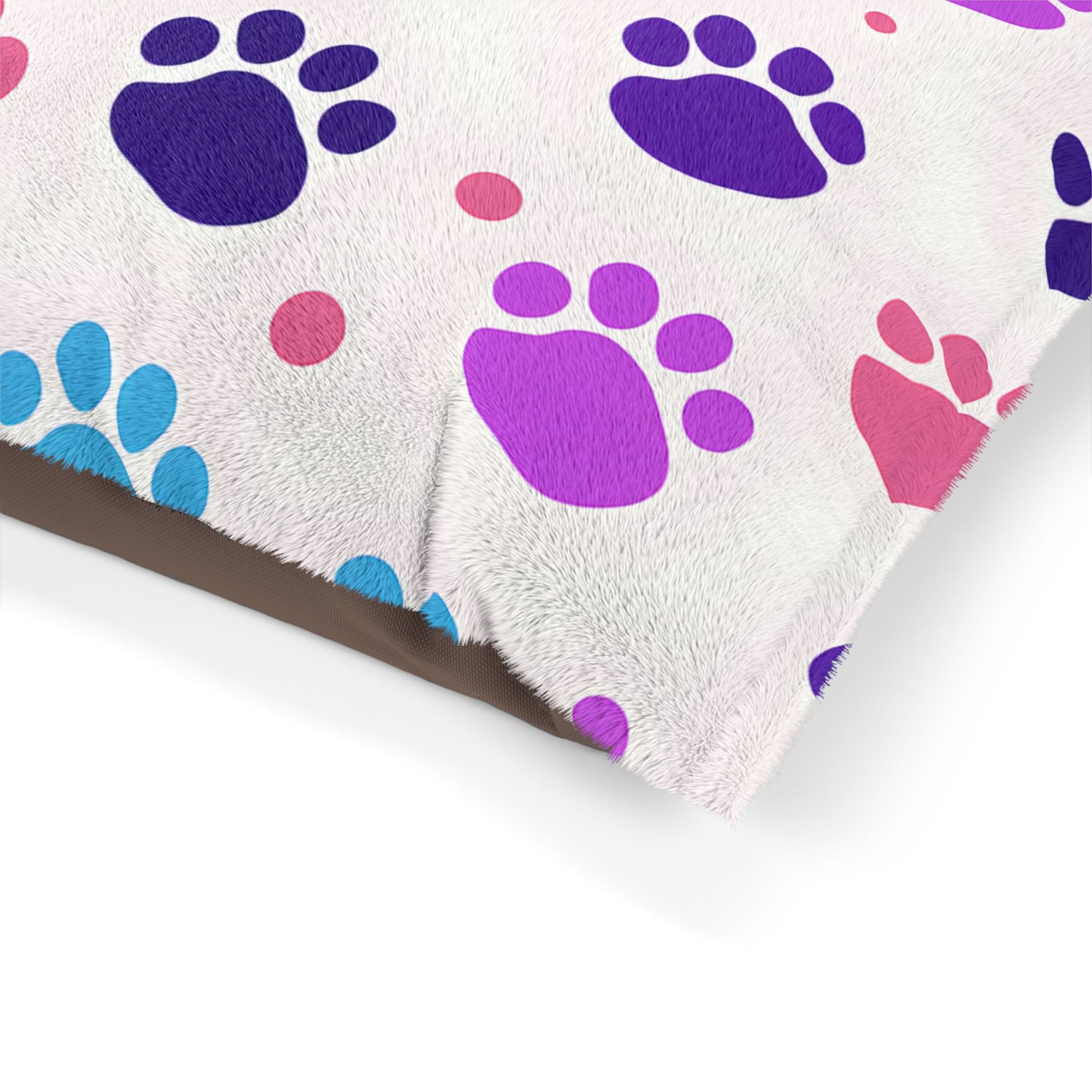 Make your furry friend feel special with this cozy pet bed. Designed for comfort, it features a soft coral fleece top that invites warmth and relaxation, while the cotton underside ensures a sturdy base for hours of lounging. The vibrant paw print design brings a playful vibe to any space, making it perfect for pet lovers who want to add a splash of color to their home. This pet bed is ideal for indoor use, providing a safe haven for your pets during holidays like Christmas, or cozy movie nights. It's not just a bed; it's a statement piece for any pet owner's home. A must-have for those who cherish their pets and want to celebrate occasions like their pet’s birthday or adoption anniversary.
