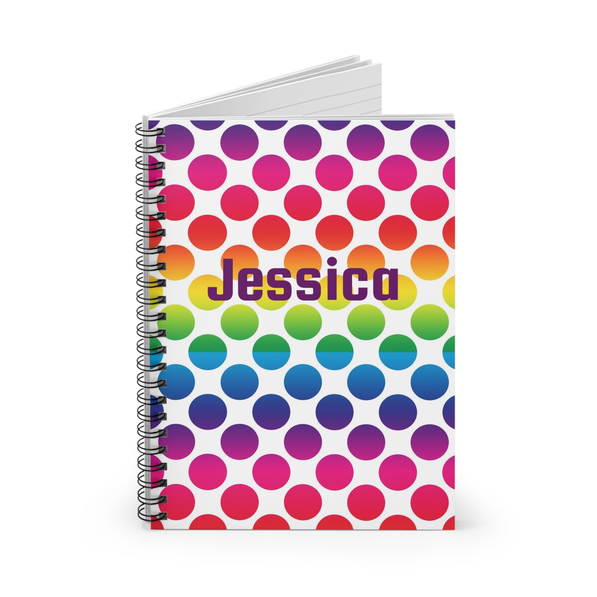 Colorful Polka Dot Spiral Notebook, Cute Journal for Students, School Supplies, Gifts for Kids, Rainbow Stationery
