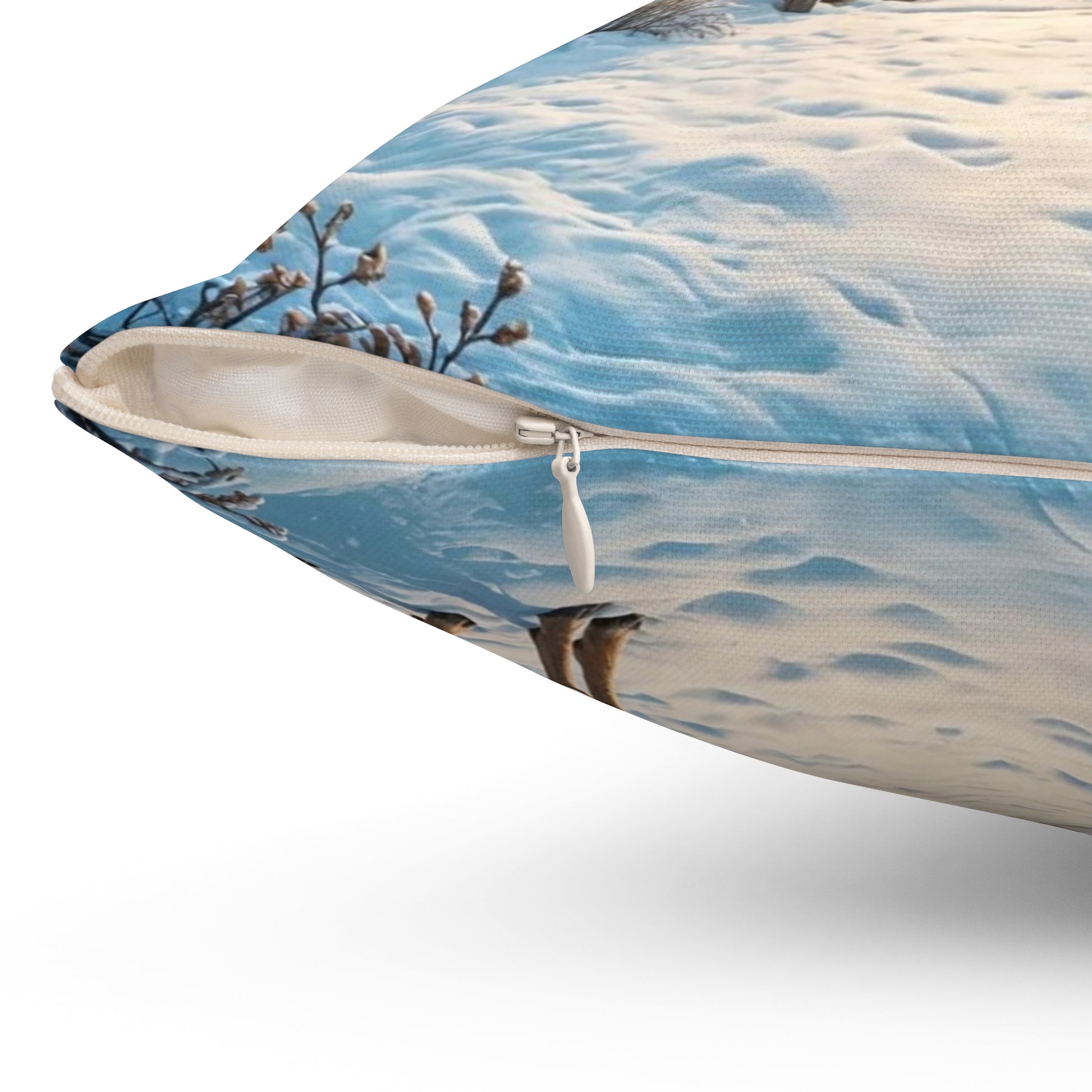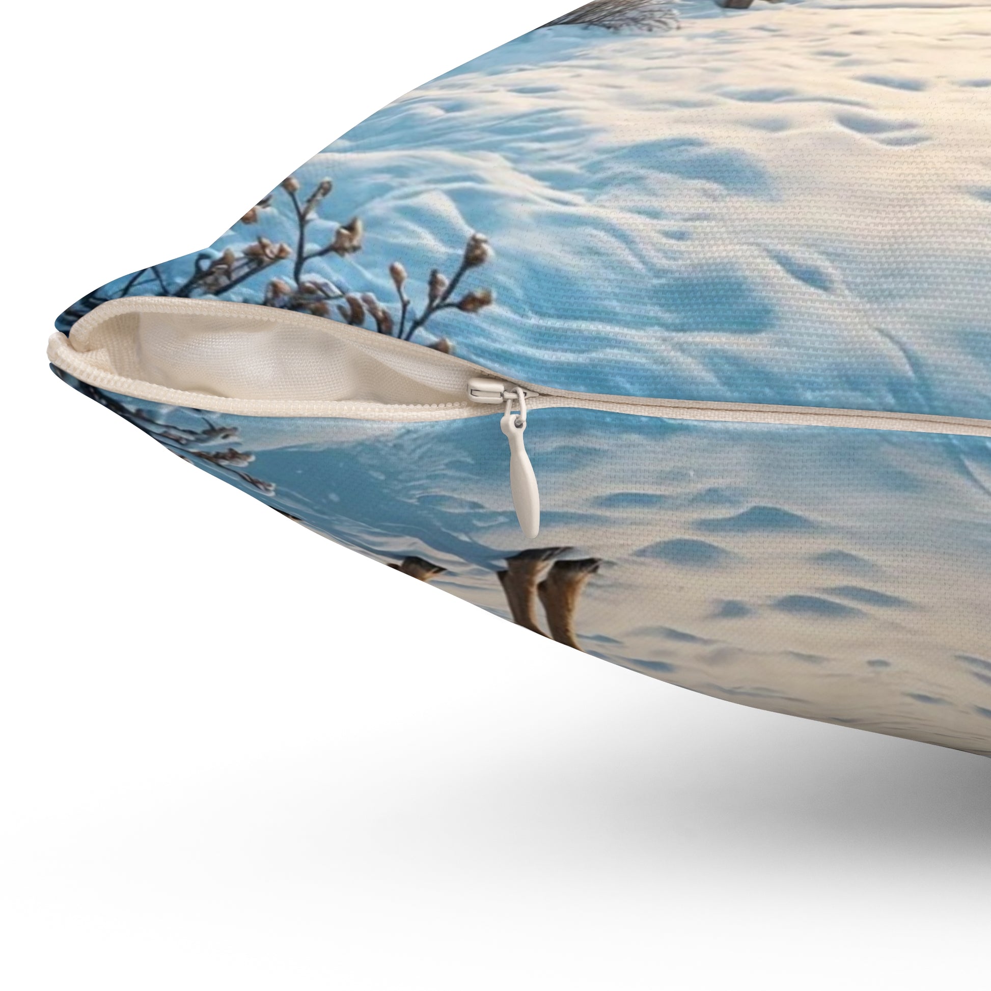 Add a touch of warmth and charm to your space with this cozy pillow designed for comfort and style. The enchanting winter scene features a picturesque cabin and a majestic deer, perfect for those who appreciate nature's beauty. Ideal for living rooms, bedrooms, or holiday décor, this pillow creates a warm, inviting atmosphere that makes every cozy night feel special. It’s a wonderful addition for anyone who loves home décor, especially during the winter season, making it a perfect gift for holidays like Christmas or delightful housewarming occasions.