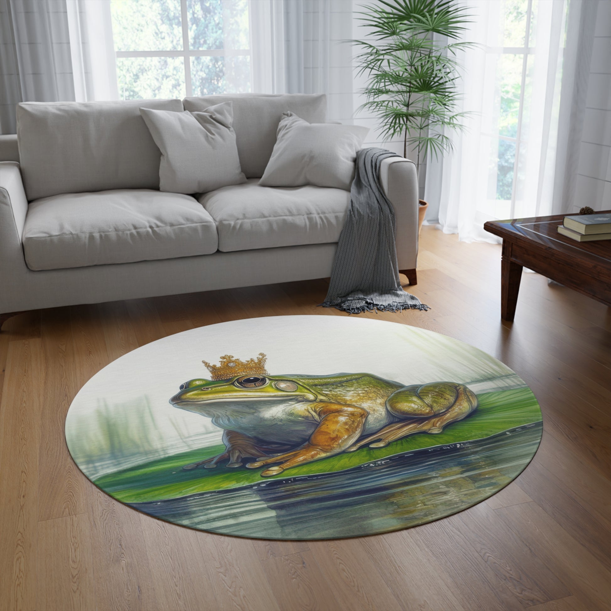 Crowned Frog Round Rug, Playful Decor for Kids' Rooms, Unique Living Room Accent