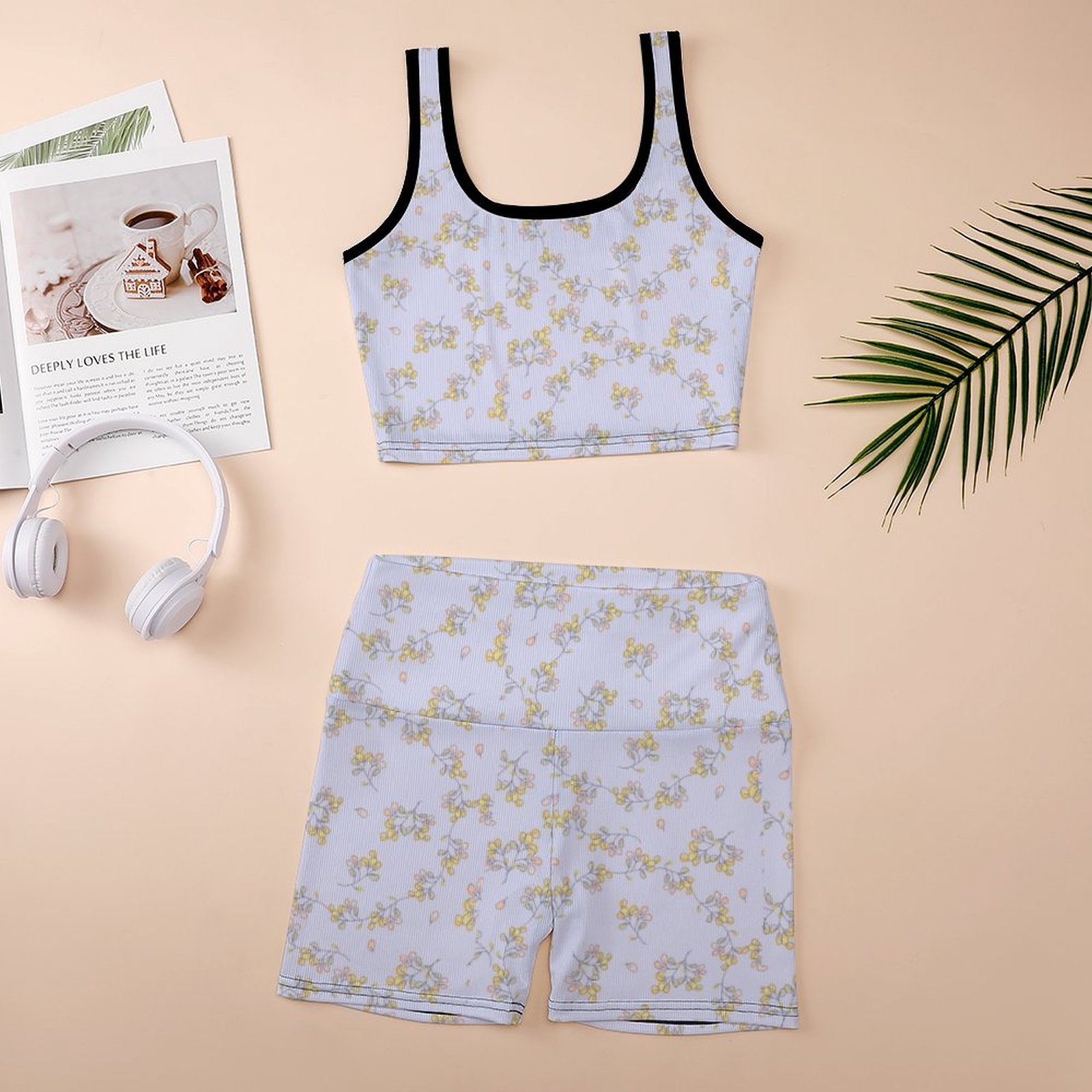 Accessory Construction: The Ribbed Yoga Set includes a Tank Top and a pair of shorts.
