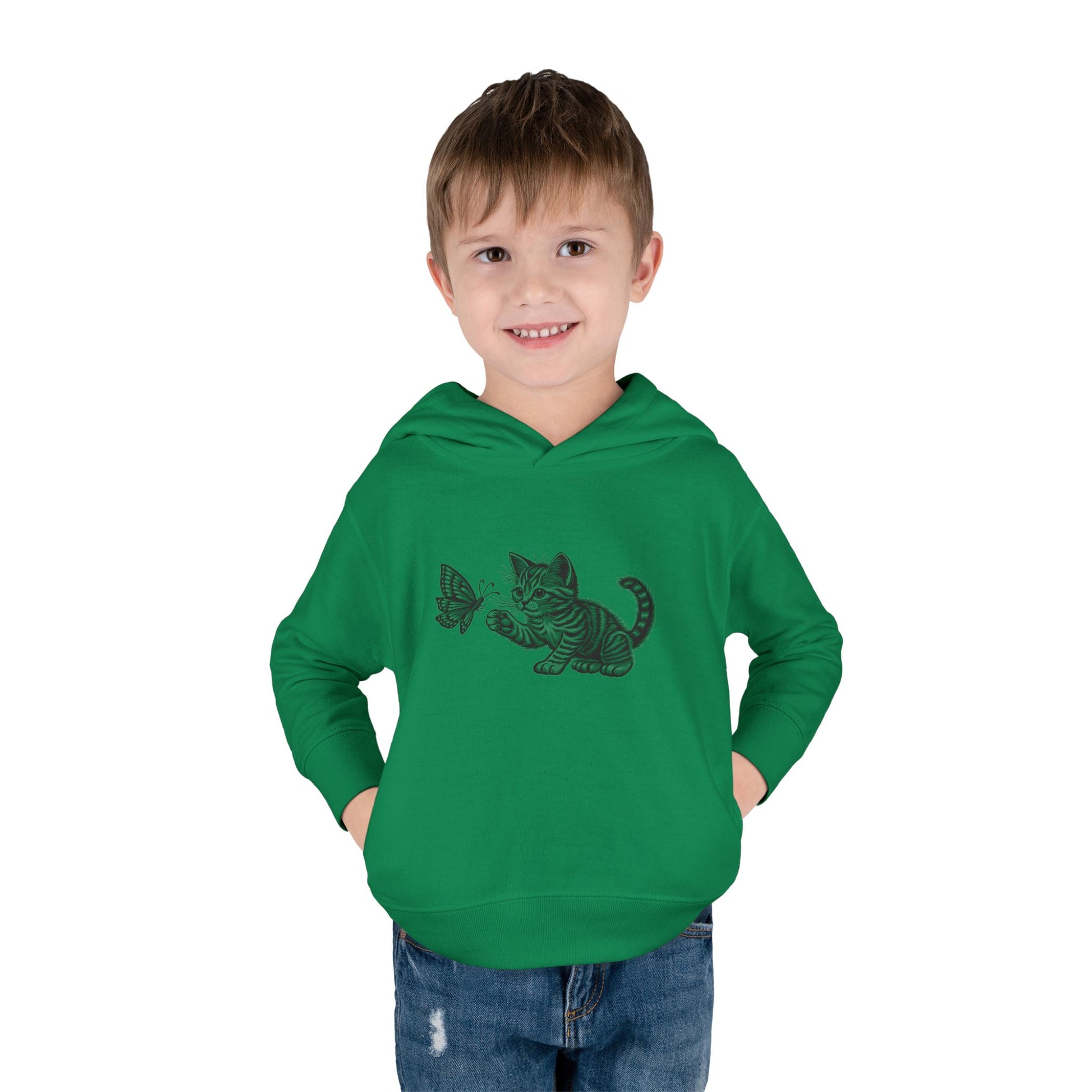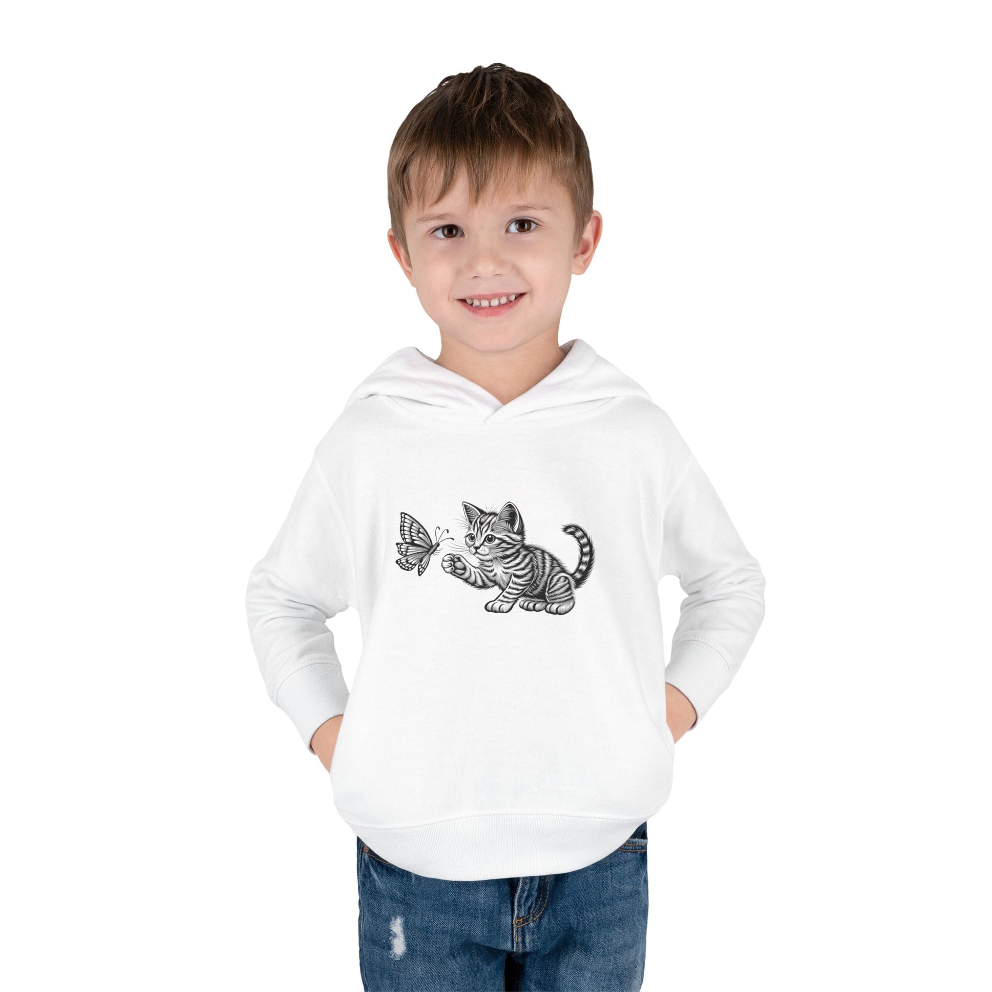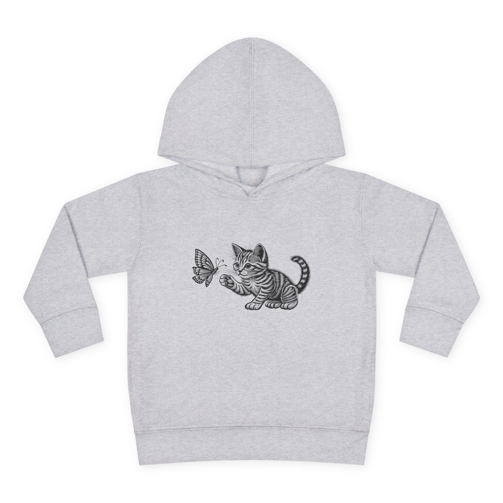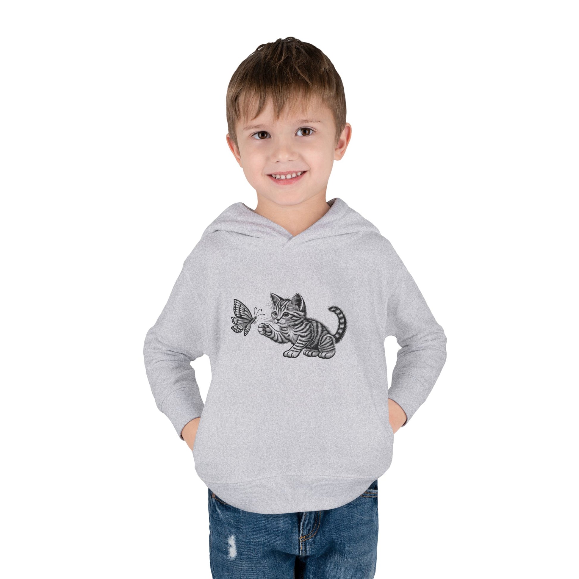 Cute Cat and Butterfly Toddler Hoodie, Toddler Pullover, Kids Fleece Hoodie, Animal Lover Gift, Playtime Pullover
