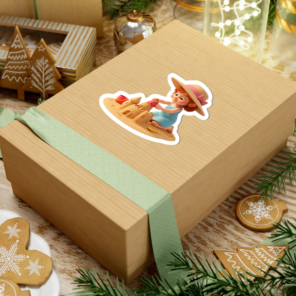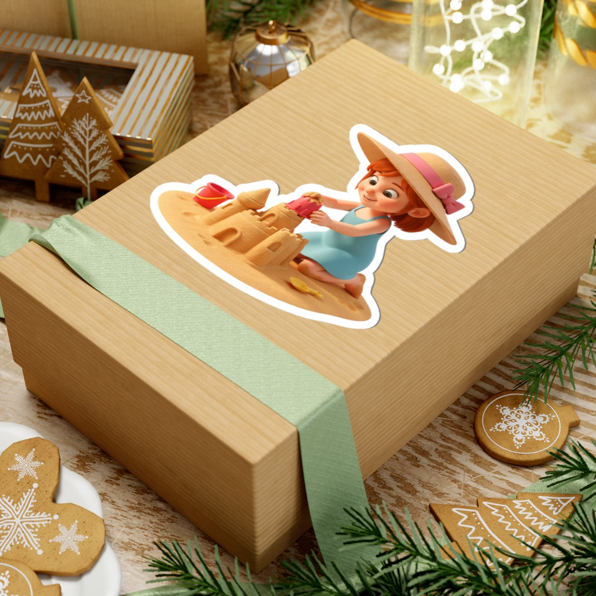 A glossy kiss-cut vinyl sticker capturing a sweet, sunlit moment: a little girl in a wide-brimmed hat building a sandcastle. The bright, eco-solvent printed colors pop against the durable vinyl for a cheerful accent on laptops, journals, water-resistant cases, or any smooth flat surface. The sticker’s glossy finish highlights the playful details — the bucket, the tiny shovel, and the textured sand — while the precise kiss-cut makes peeling and applying effortless. Choose white or transparent backing and from multiple sizes to match your placement. Designed to bring a warm, seaside smile wherever it’s placed.