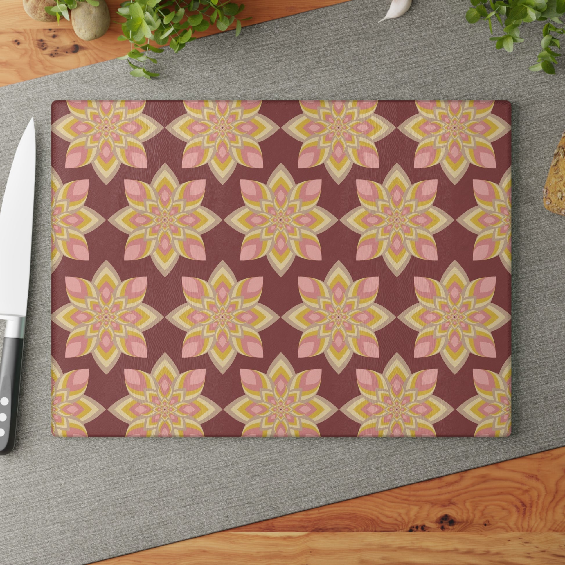 Enhance your kitchen with this vibrant Glass Cutting Board, perfect for both food preparation and as a stunning decorative piece. The lively floral design brings a splash of color to your cooking space, making every meal feel special. Ideal for home chefs or anyone who loves to host, this cutting board is not just functional but also a statement piece. It fits seamlessly into your dining experience during holidays, celebrations, or everyday cooking, adding joy and style to your culinary adventures. A thoughtful gift for housewarmings, weddings, or any occasion where you want to bring a unique touch to a kitchen. Bring elegance and efficiency to your home with this exquisite design!