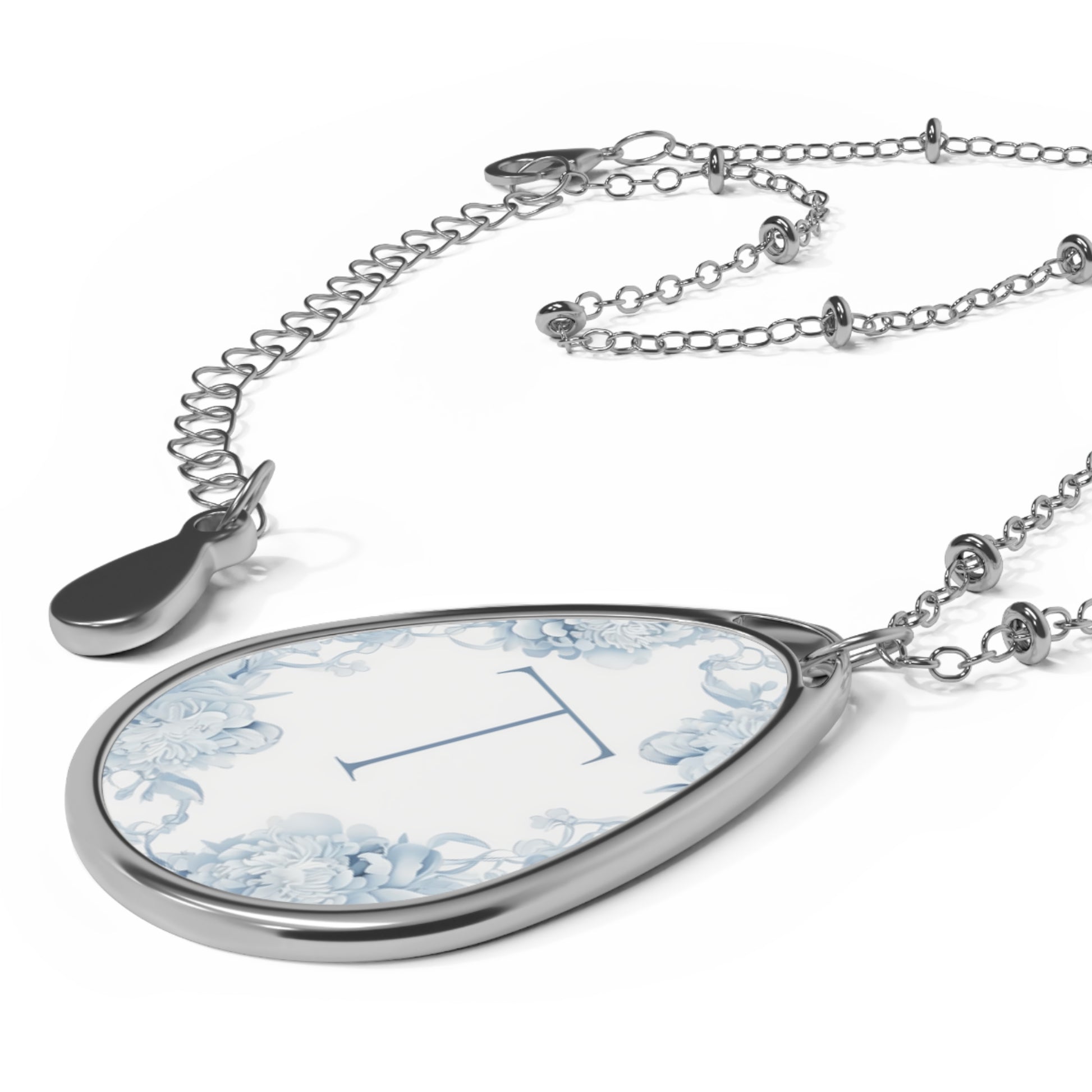 - Ellipse-shaped pendant allows for personalization and customization.