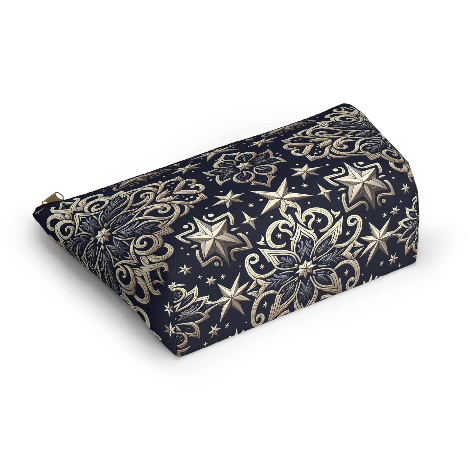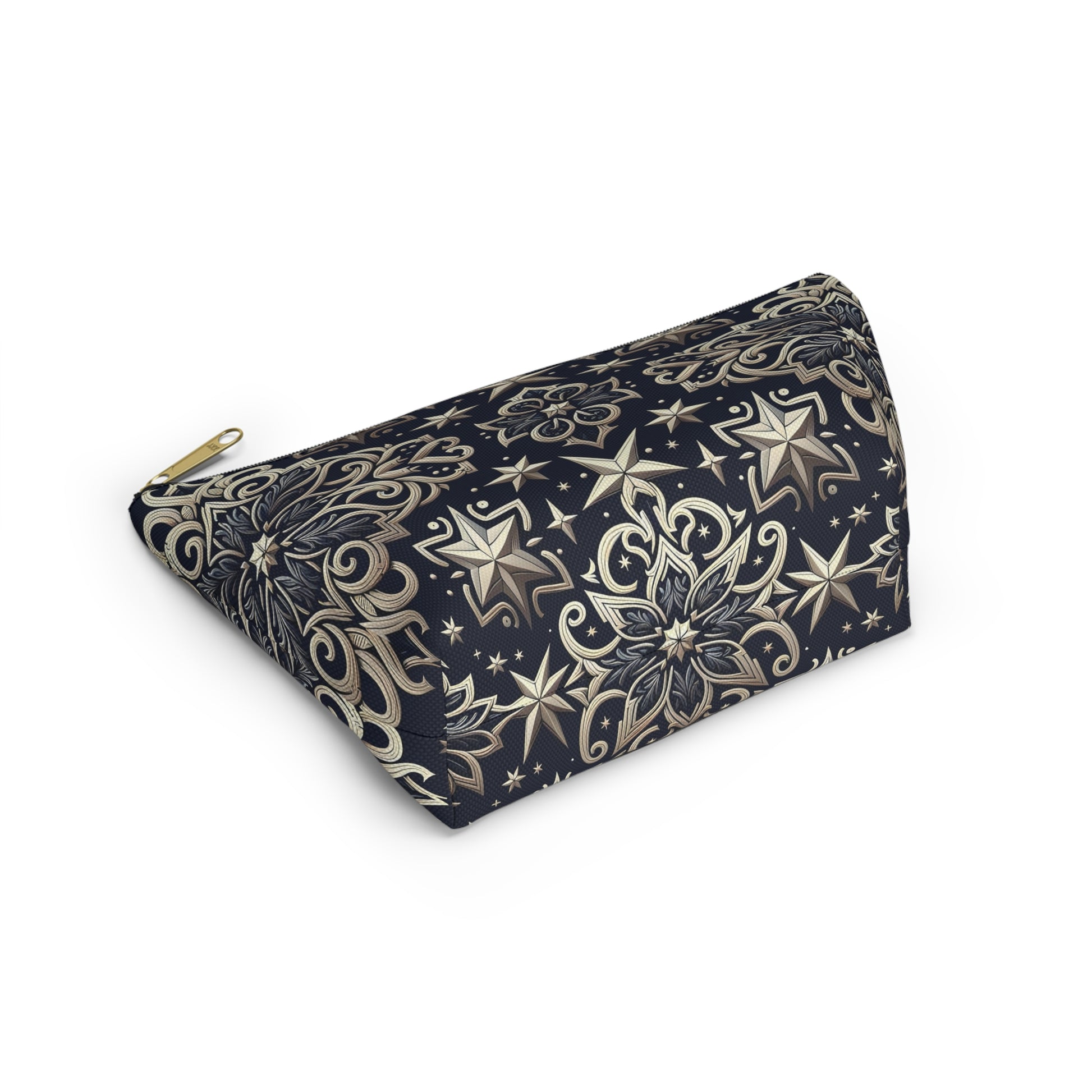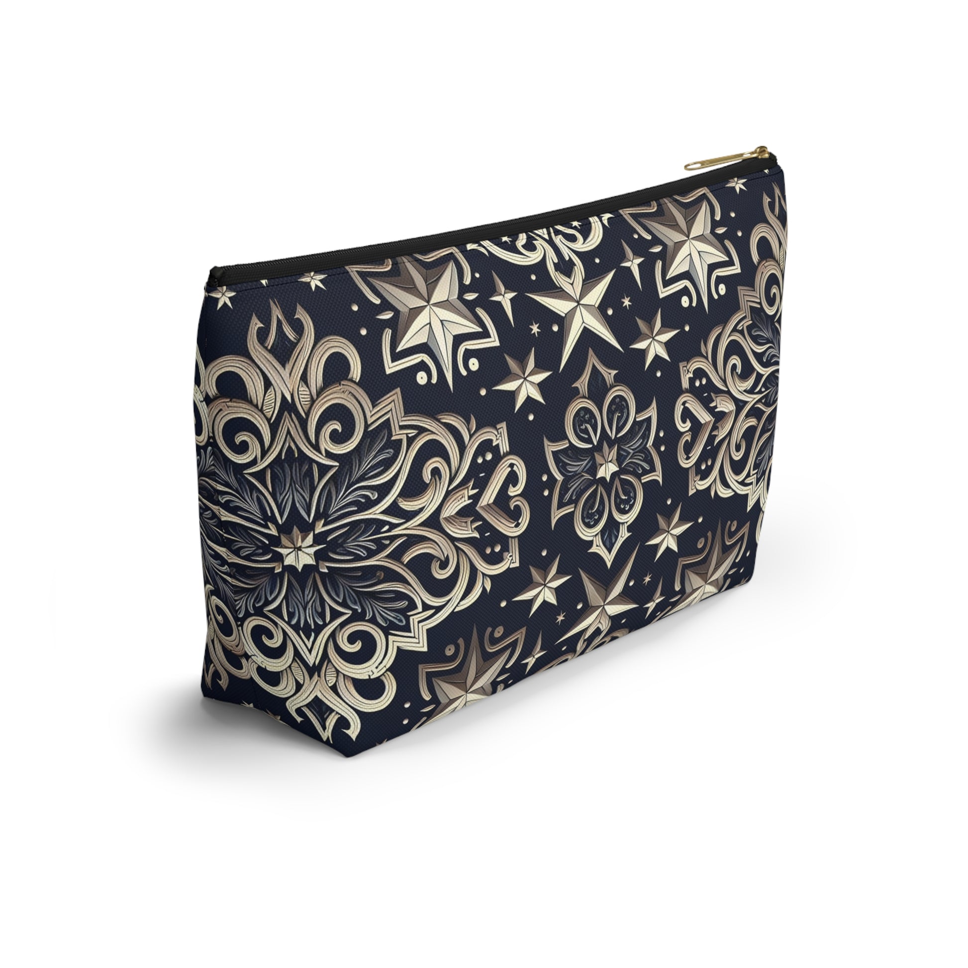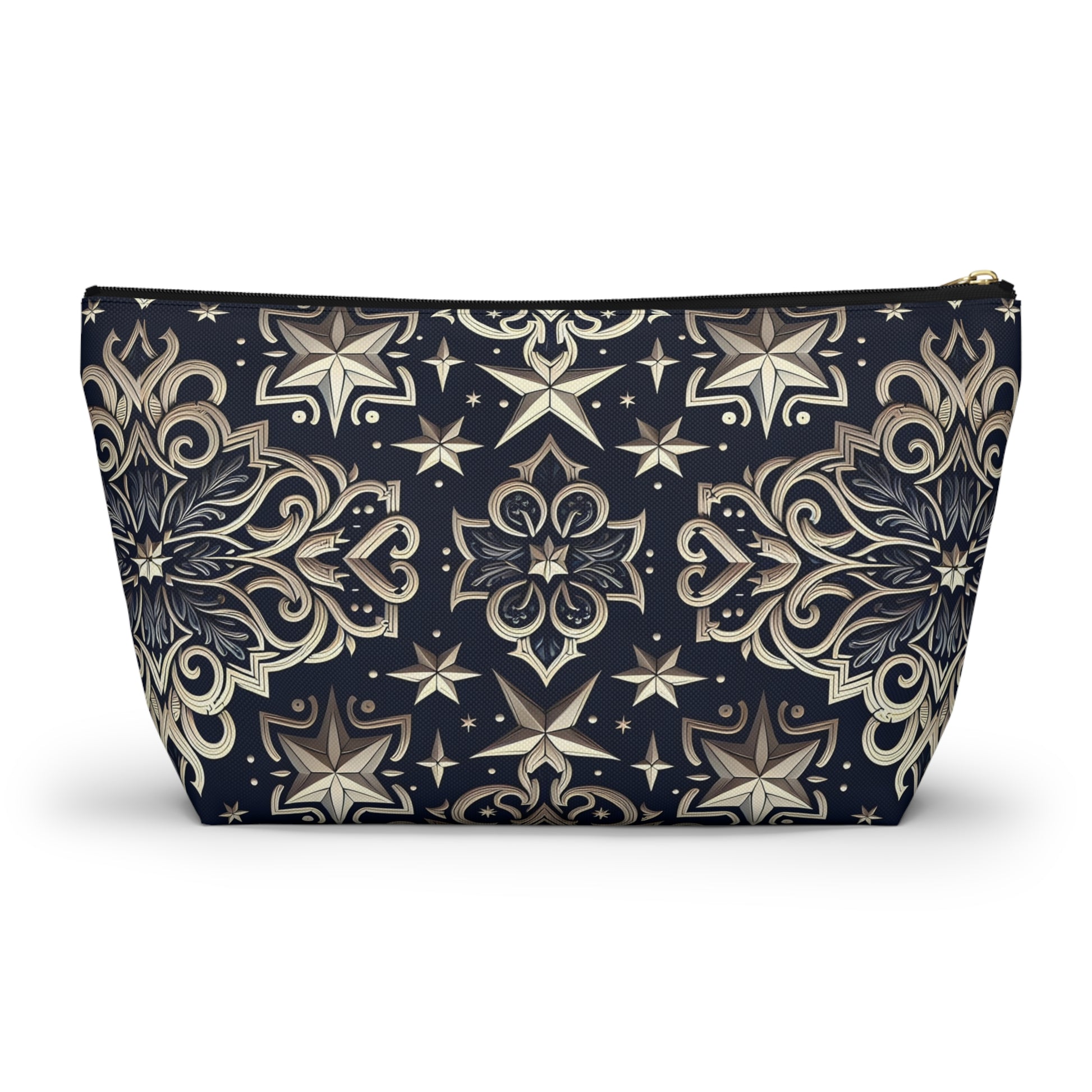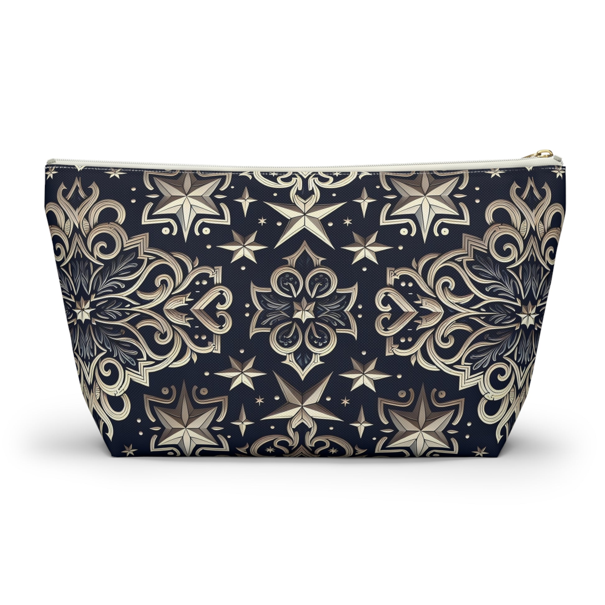 Product features - Made of 100% spun polyester, ensuring durability and wrinkle resistance. - Features a non-woven laminate lining, available in white or black, enhancing the design. - Utilizes vibrant printing techniques for bright and crisp colors. - Equipped with a durable zipper closure with a gold color puller. - Available in multiple sizes, accommodating various needs.