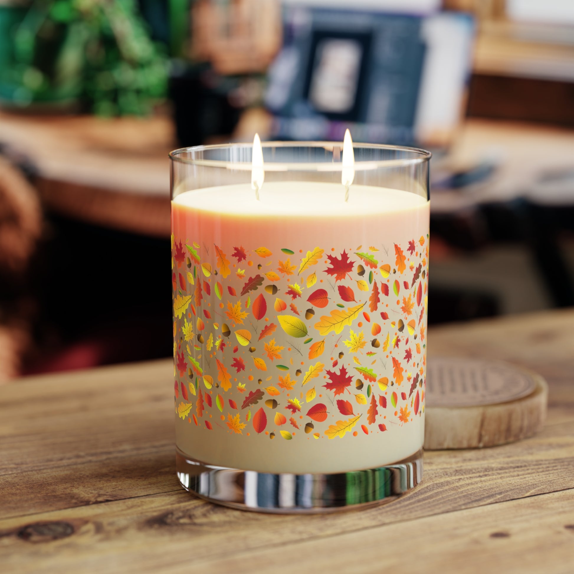Product features - Made from 100% premium soy wax sourced from American-grown beans. - Eco-friendly and vegan, with a clean-burning composition free of phthalates and lead. - Available in three distinct scents: White Tea & Fig, Lavender & Sage, and Ocean Mist & Moss. - Features a vibrant, high-quality print on the glass jar that complements any decor style. - Two cotton-cored wicks provide an impressive burn time of approximately 65 hours.