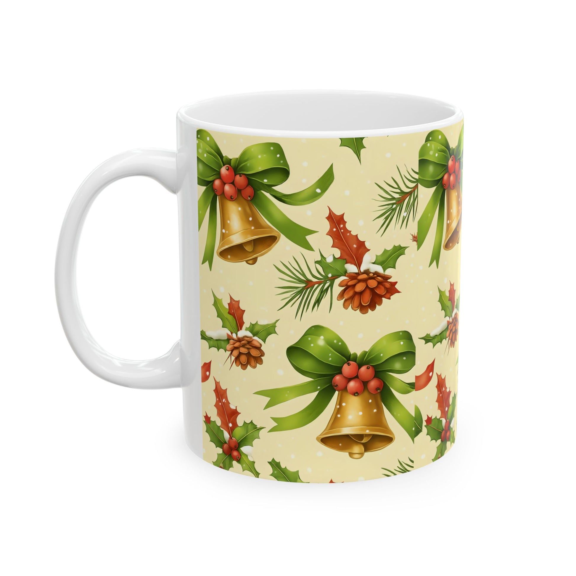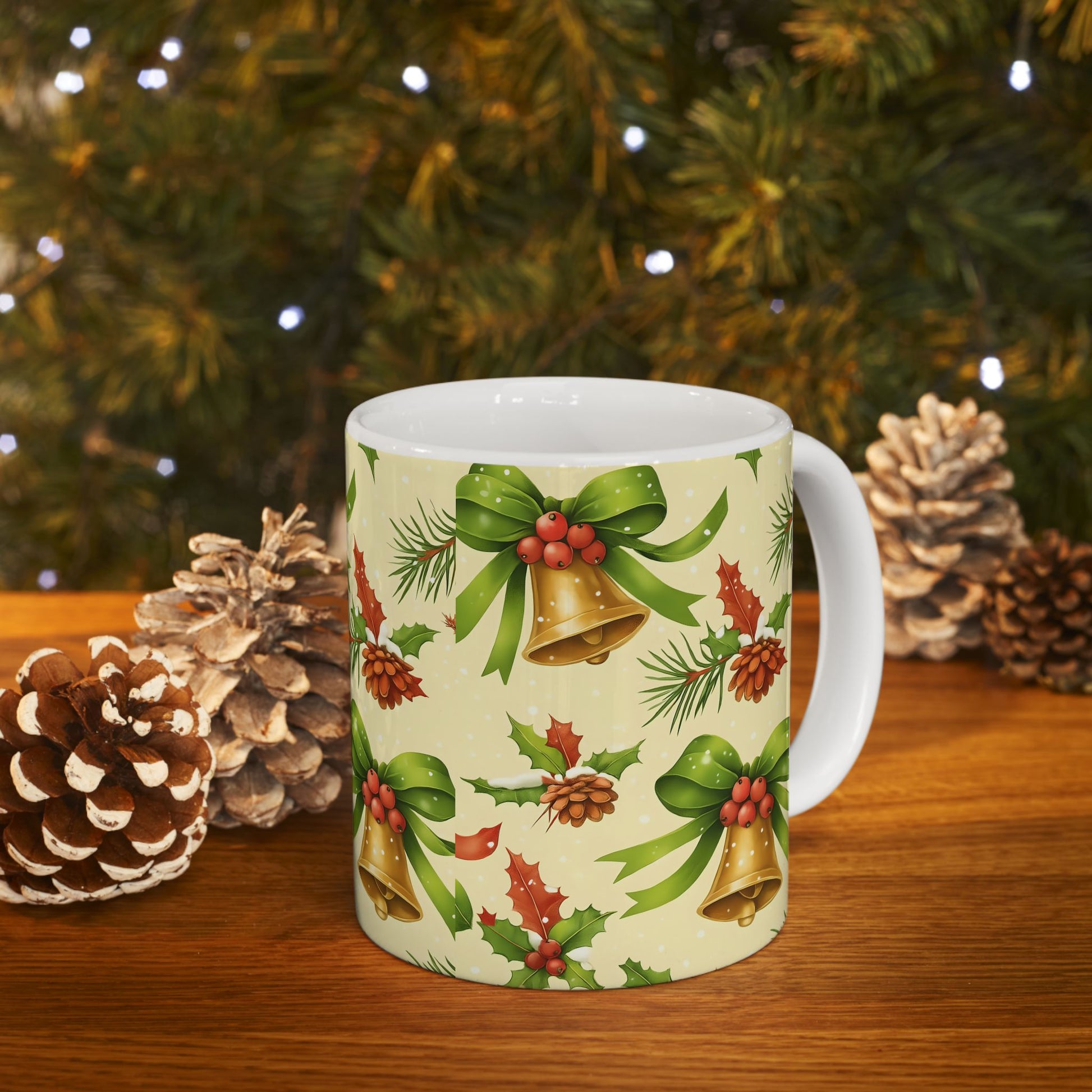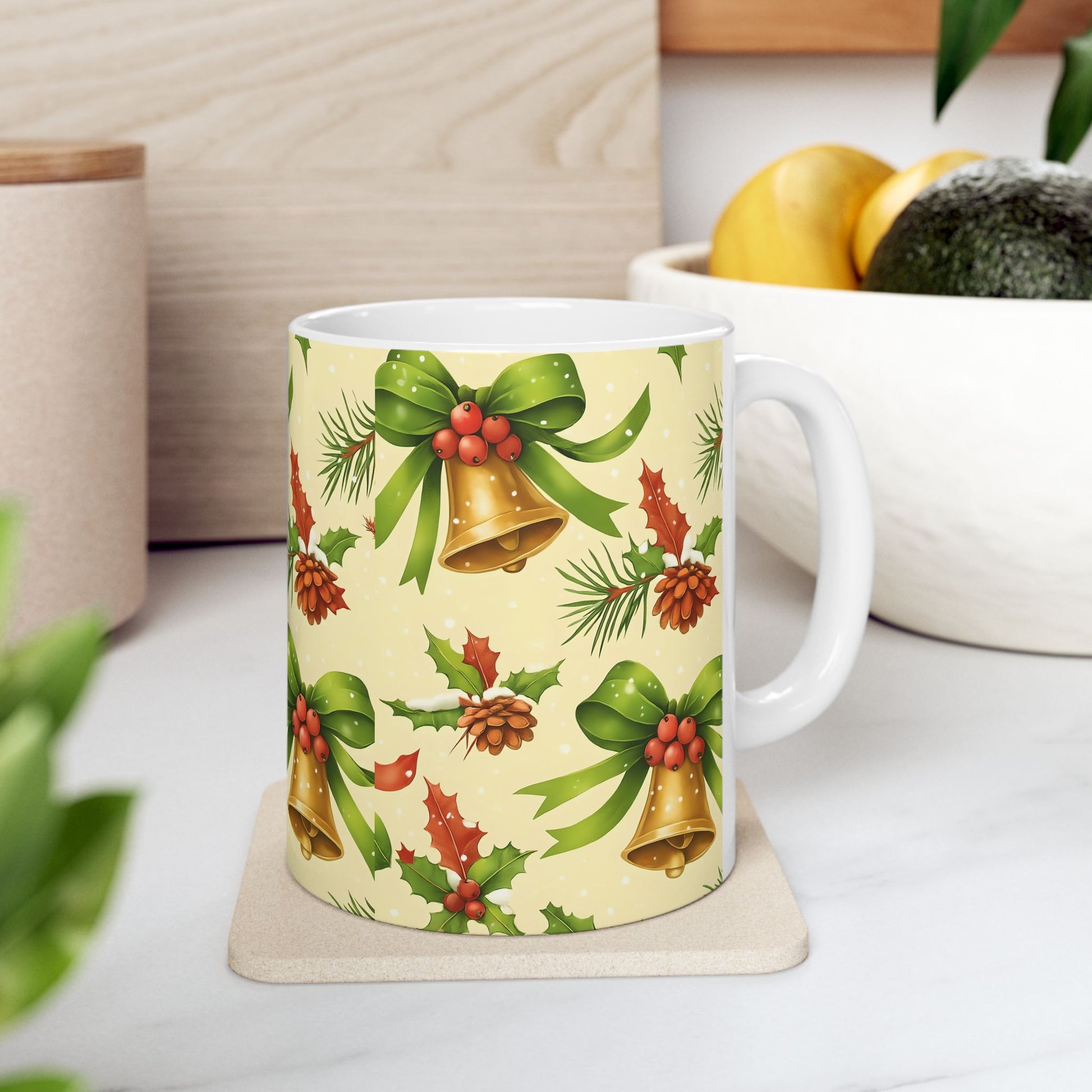 Introduce a touch of warmth to your daily routine with this charming Ceramic Mug. Adorned with festive designs featuring bells and ribbons, this mug creates a cozy atmosphere perfect for the holiday season. It’s the ideal companion for sipping hot cocoa during chilly evenings or enjoying your morning coffee as you prepare for a day of festivities. Great for friends and family who love to celebrate, this mug makes a thoughtful gift for Christmas, Hanukkah, or any joyous occasion. Whether you're cozying up at home or looking for a delightful surprise for a loved one, this mug brings a festive vibe to every moment.