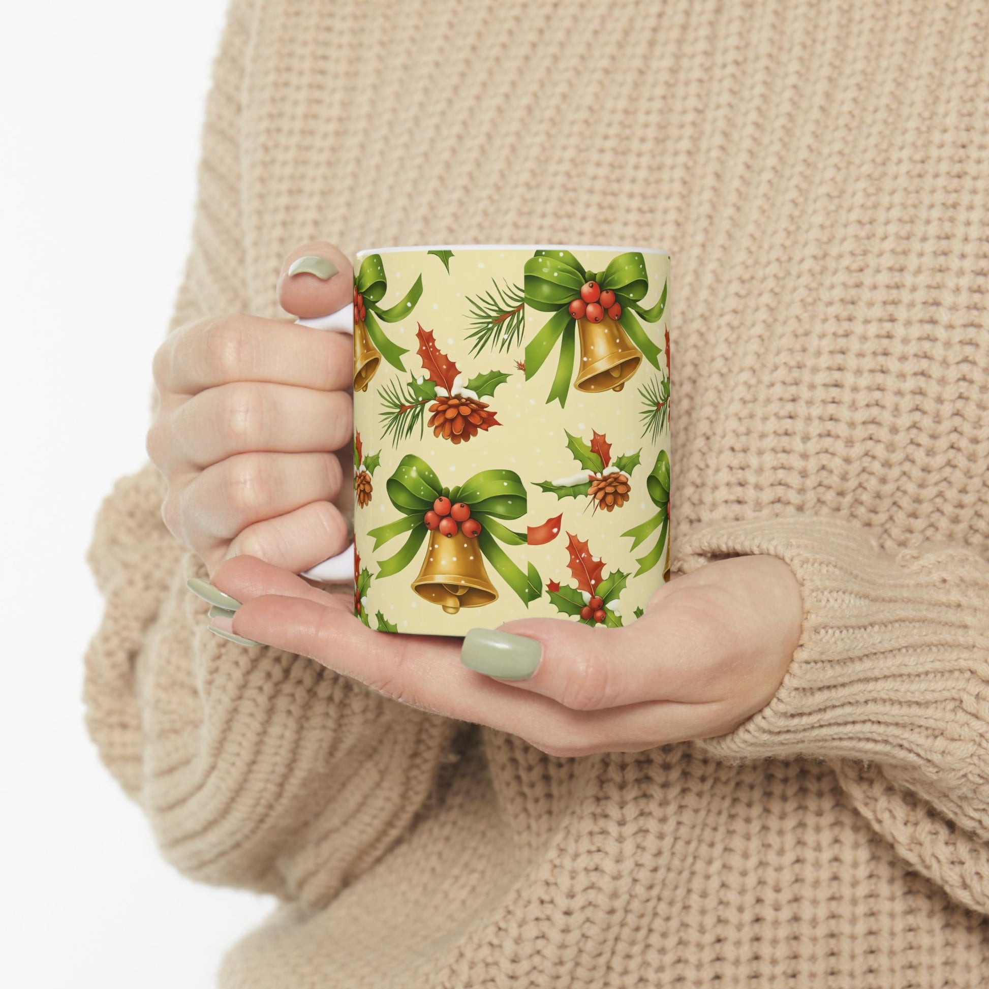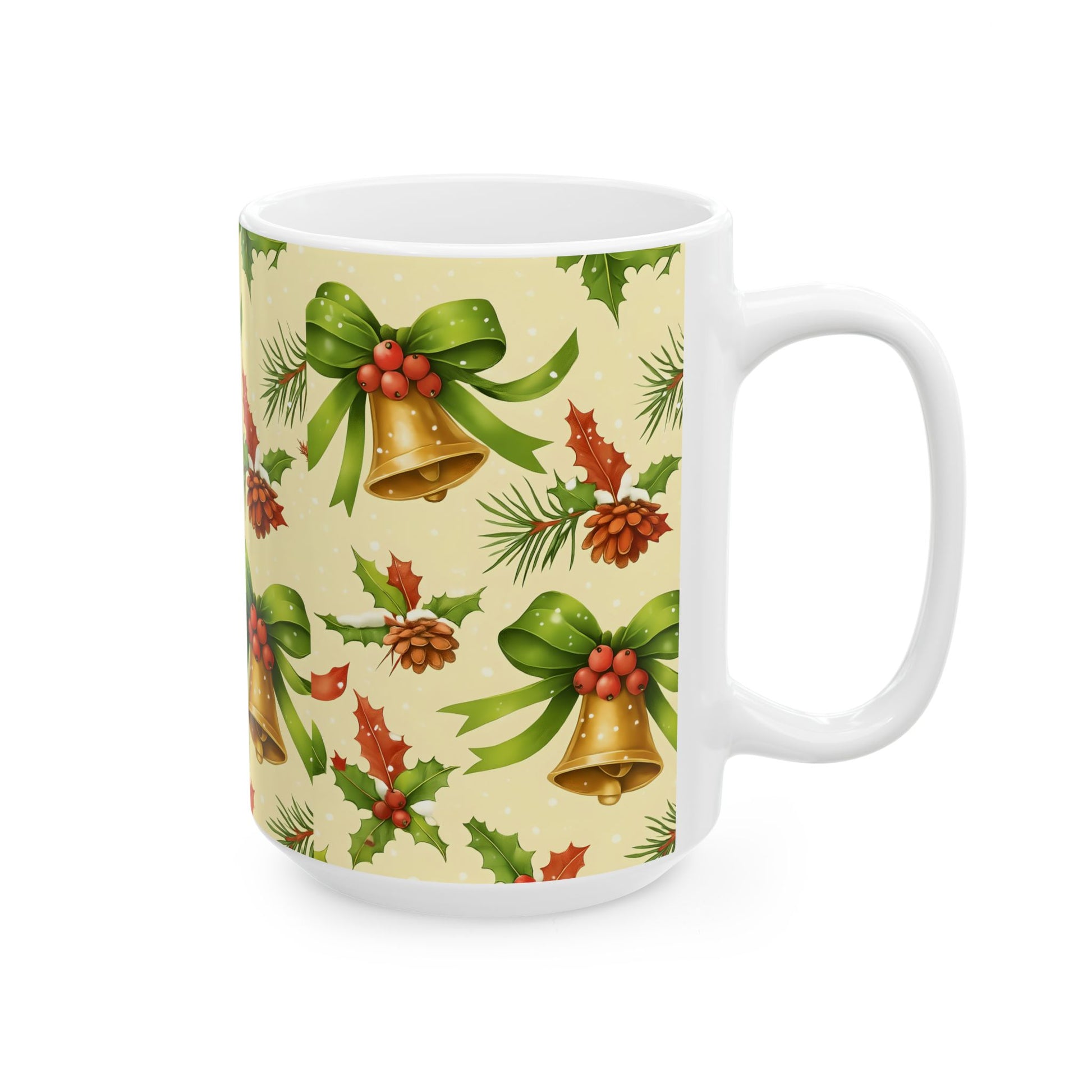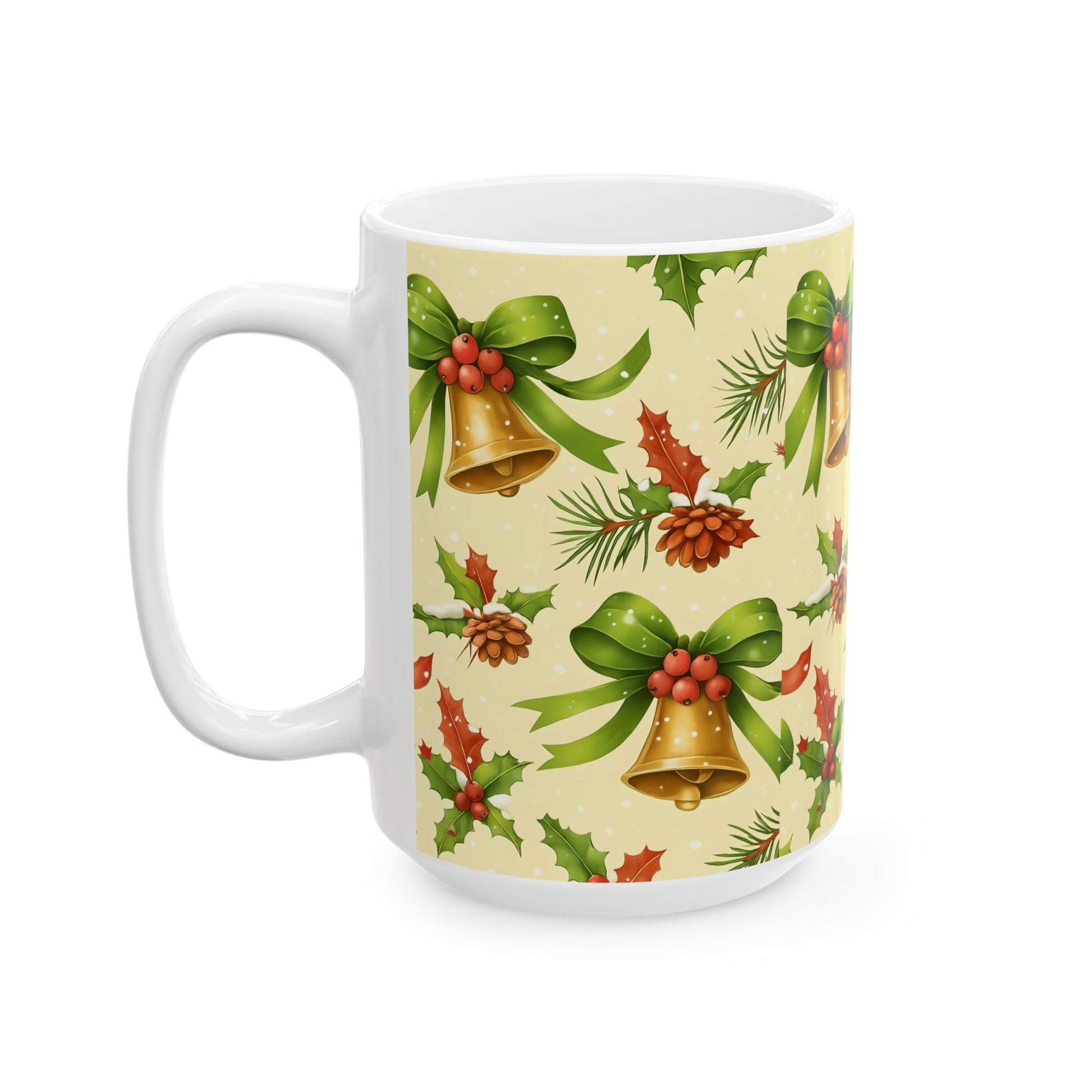 Introduce a touch of warmth to your daily routine with this charming Ceramic Mug. Adorned with festive designs featuring bells and ribbons, this mug creates a cozy atmosphere perfect for the holiday season. It’s the ideal companion for sipping hot cocoa during chilly evenings or enjoying your morning coffee as you prepare for a day of festivities. Great for friends and family who love to celebrate, this mug makes a thoughtful gift for Christmas, Hanukkah, or any joyous occasion. Whether you're cozying up at home or looking for a delightful surprise for a loved one, this mug brings a festive vibe to every moment.
