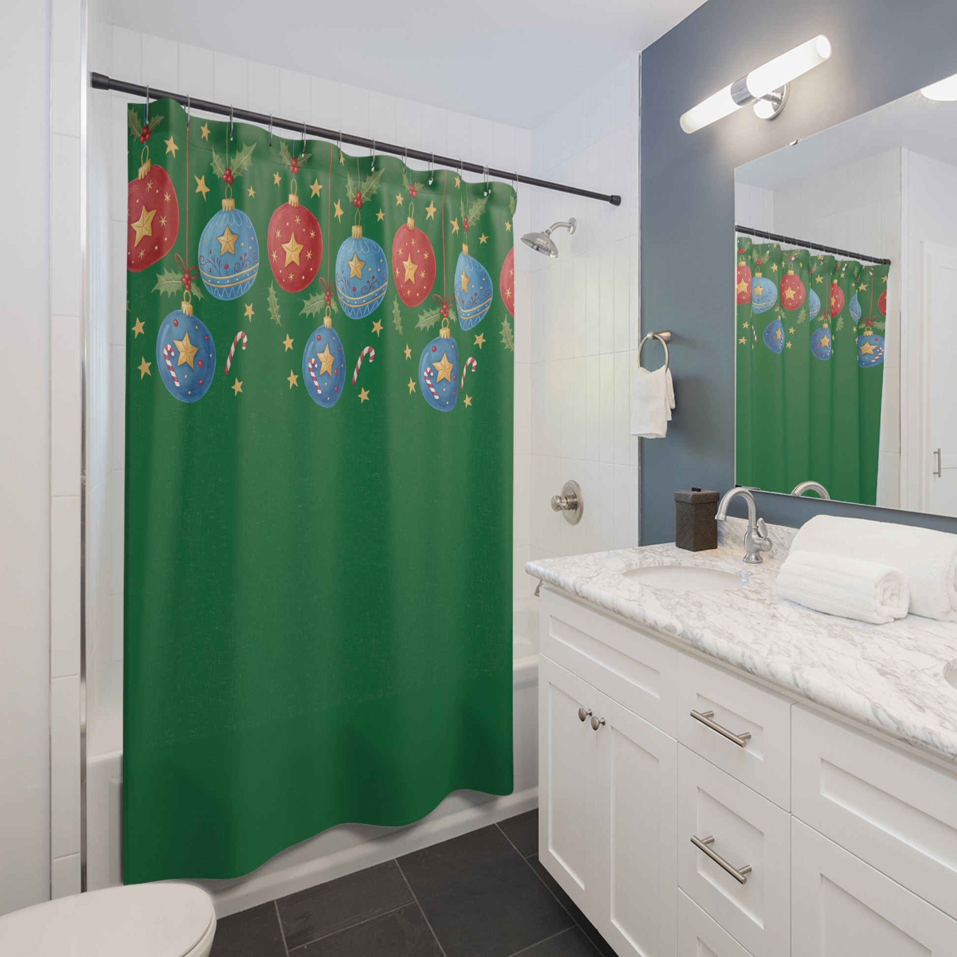 Transform your bathroom into a festive oasis with this vibrant shower curtain. Featuring colorful ornaments and greenery, it brings a cheerful holiday vibe that instantly brightens your space. Perfect for decorating during Christmas, this shower curtain is not just functional but also a wonderful way to express your seasonal spirit. Ideal for anyone looking to add a touch of joy and festive flair to their home, it makes a great gift for holiday enthusiasts or anyone renovating their space for the season. Celebrate with style and make every shower a little more special!