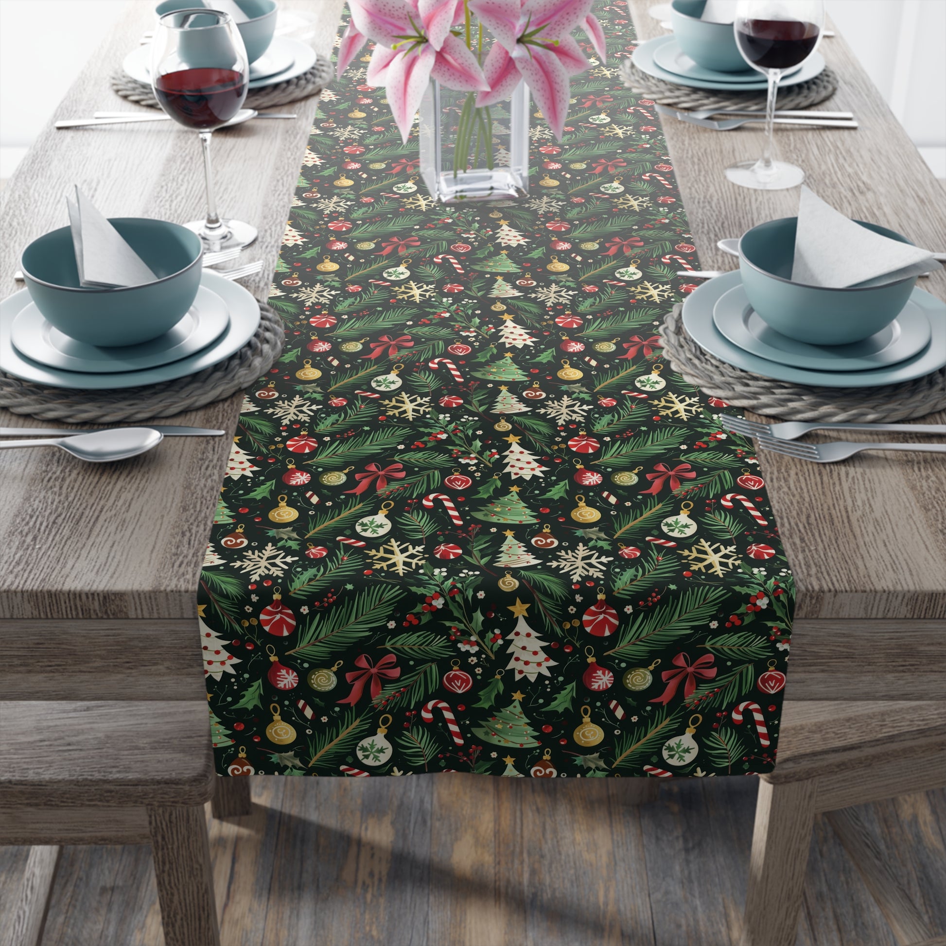 Elevate your dining experience with our stunning Table Runner. Perfect for special occasions and everyday gatherings, this table accessory adds a touch of elegance and warmth to any table setting. Crafted from high-quality materials, it radiates a cozy, festive vibe, making it ideal for holiday feasts, family celebrations, or intimate dinners. Whether you're hosting a Christmas dinner or celebrating Thanksgiving, this runner is a delightful addition to your decor. It appeals to those who appreciate style and functionality in their home accessories.