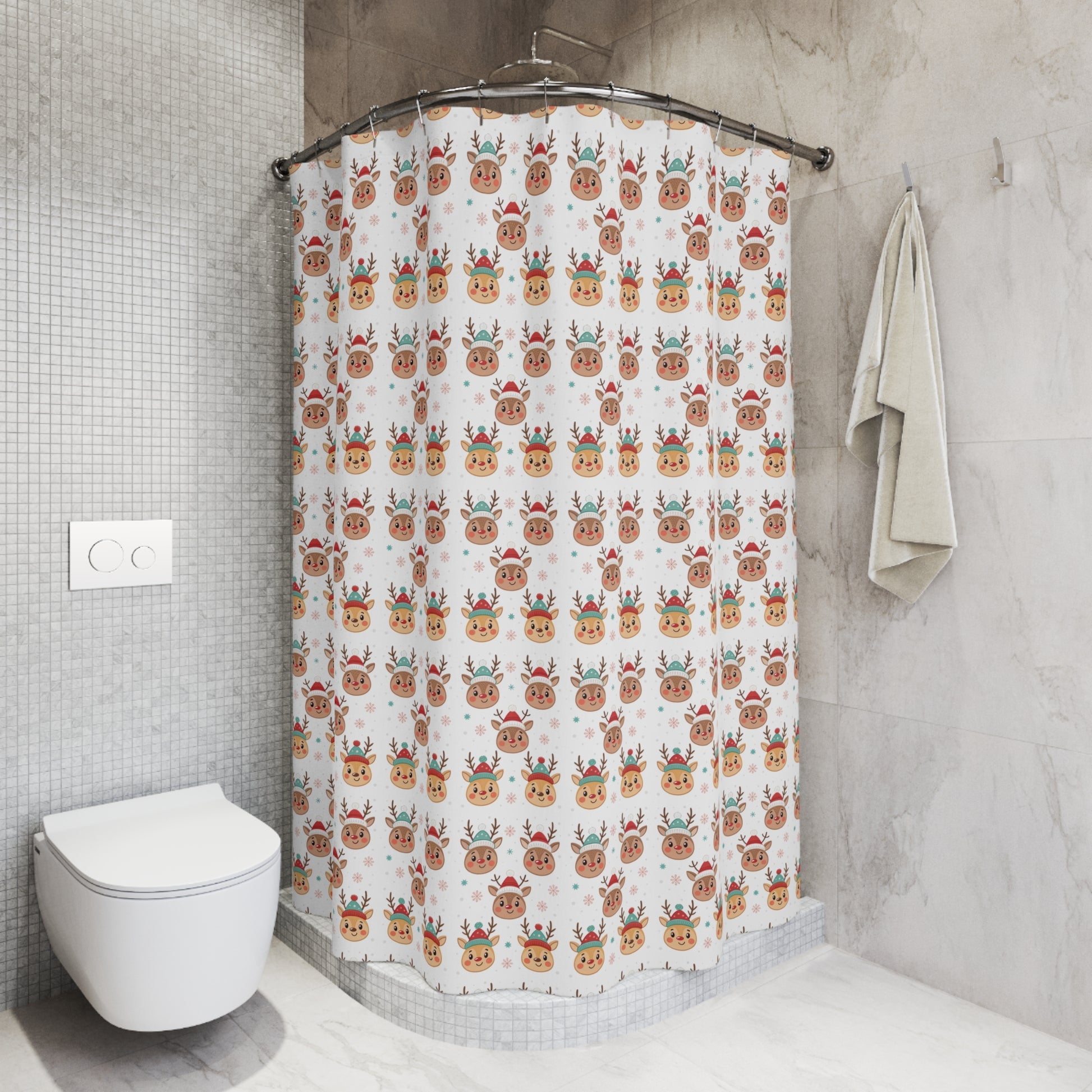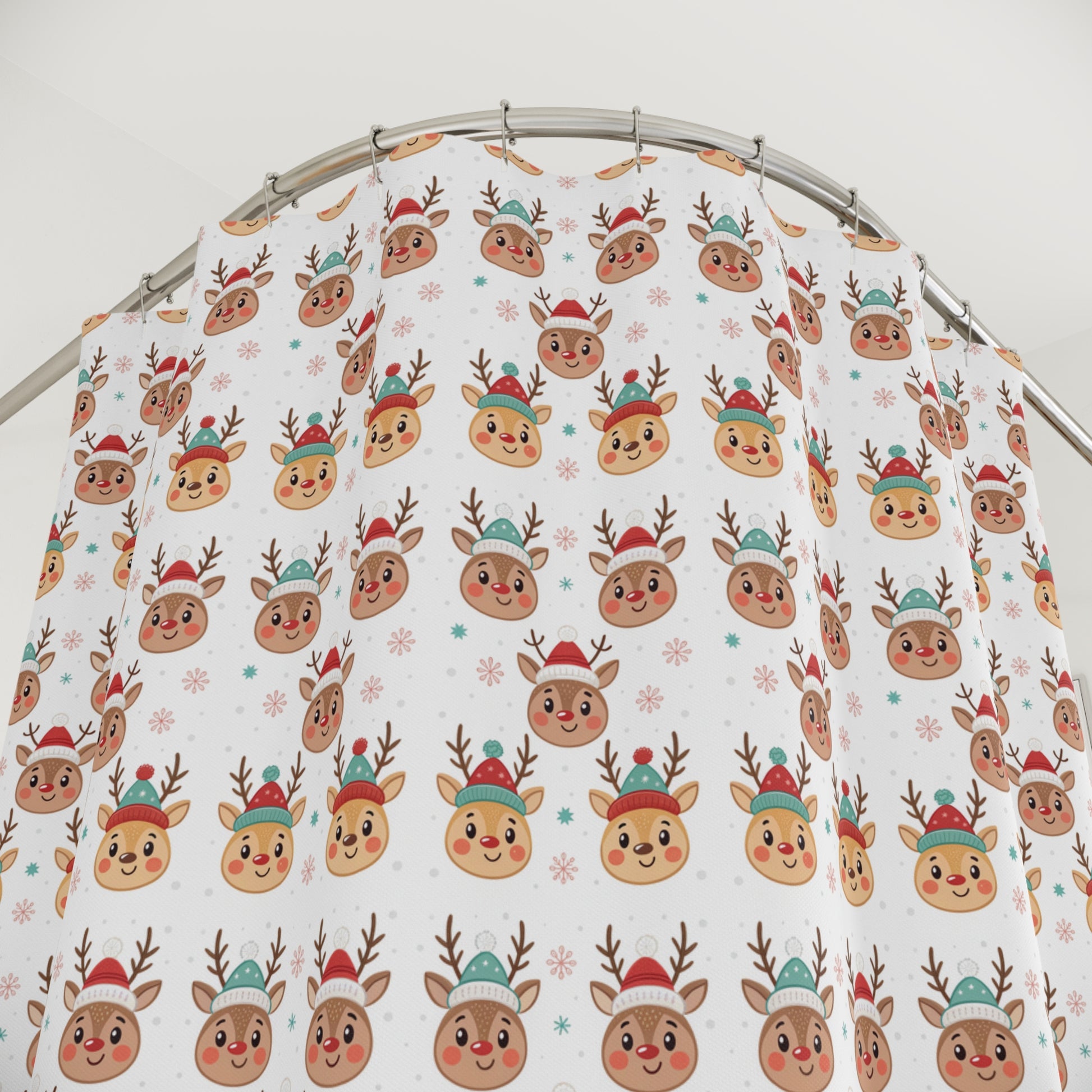 Festive Reindeer Shower Curtain | Holiday Decor, Christmas Gift, Bathroom Accessory, Seasonal Home Decor, Cute Shower Curtain
