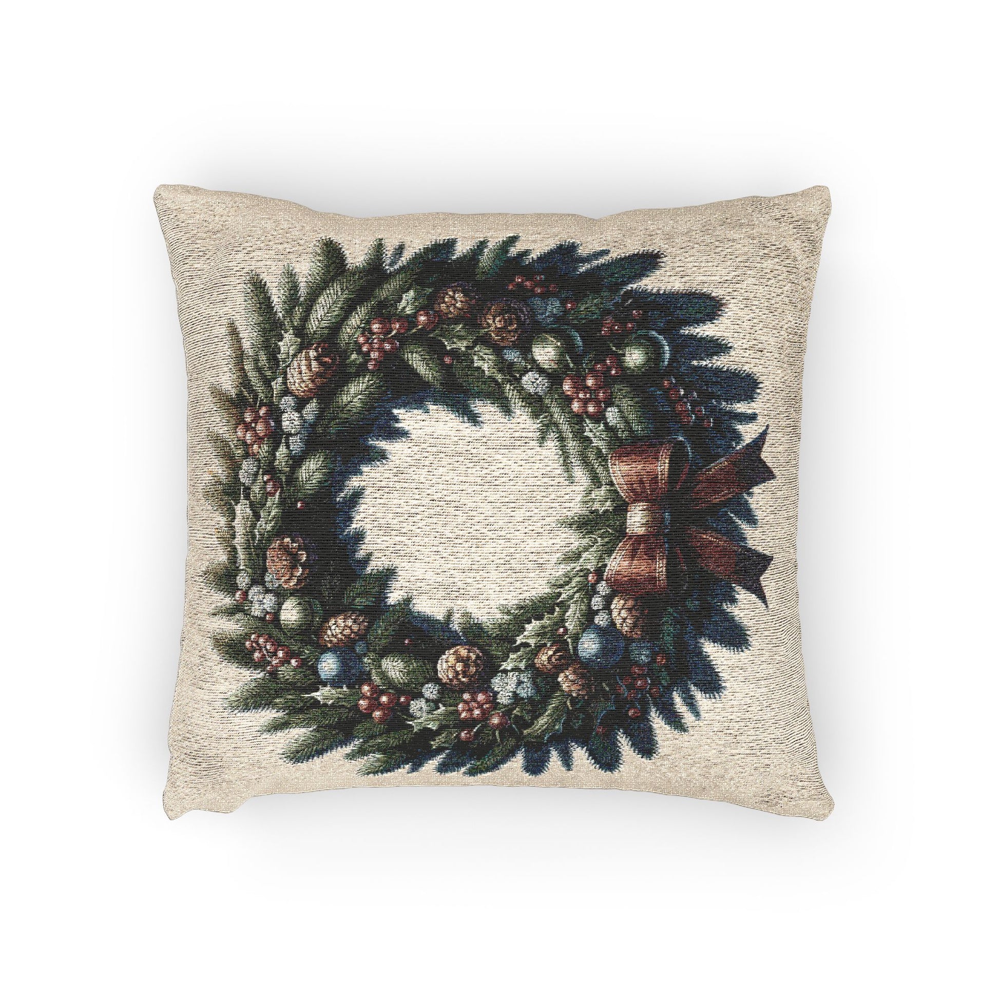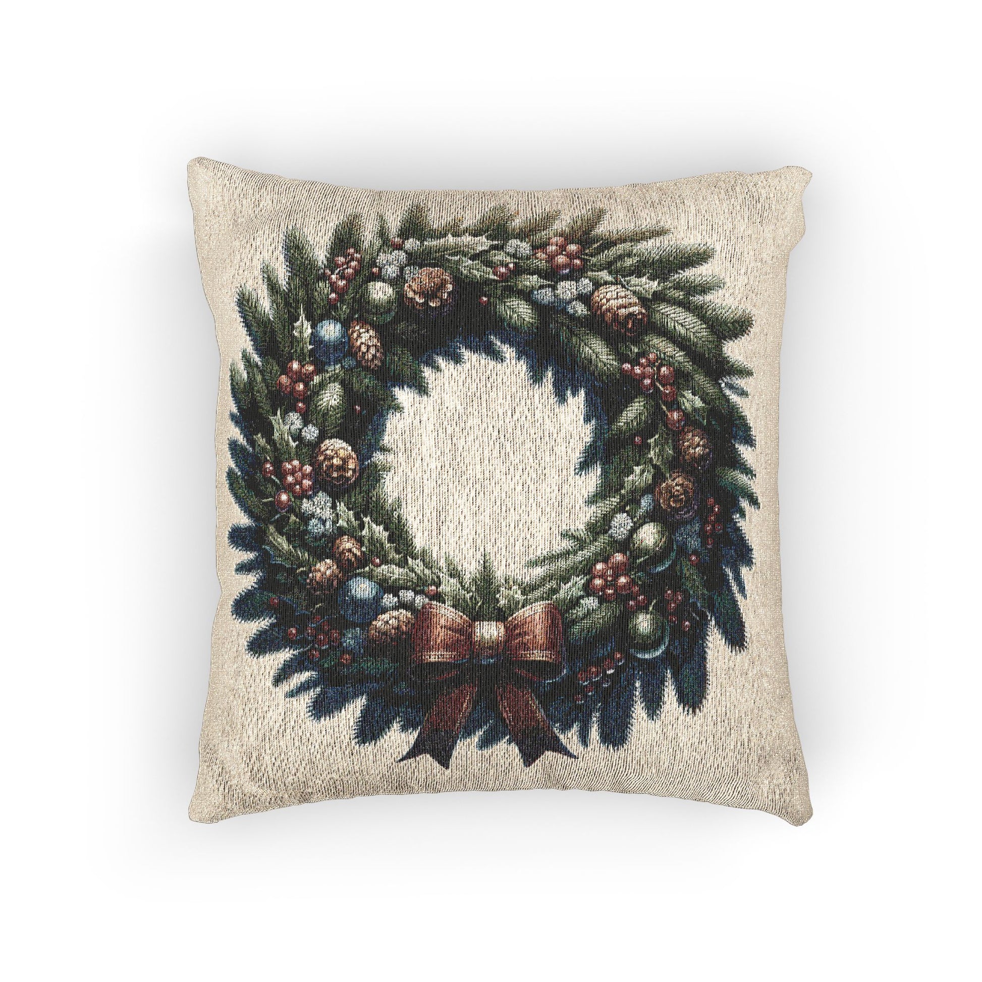 Elevate your home decor with this exquisite woven pillow, designed to bring warmth and charm to any space. Its enchanting wreath design balances festive elegance and cozy comfort, making it a perfect addition to your holiday festivities. Ideal for anyone looking to brighten up their living room or bedroom, this pillow nods to seasonal celebrations like Christmas and gatherings with loved ones. Adorn your sofa or armchair with this plush accessory for a welcoming ambiance. Whether you're decorating for the holidays or simply embracing a festive spirit year-round, this pillow invites a joyful atmosphere into your home.
