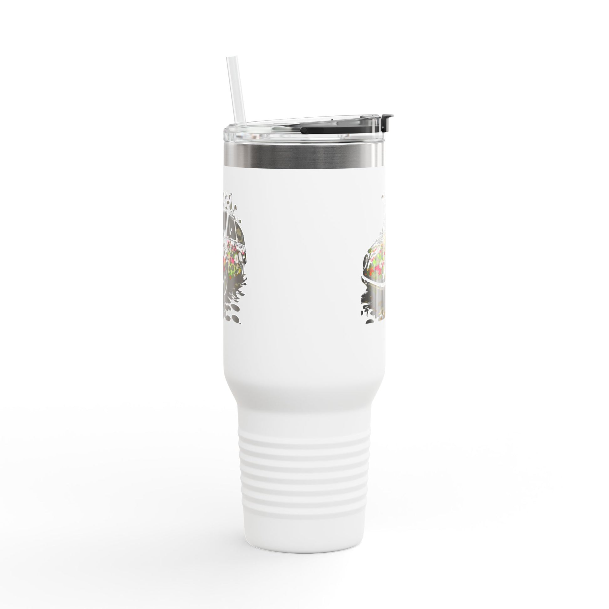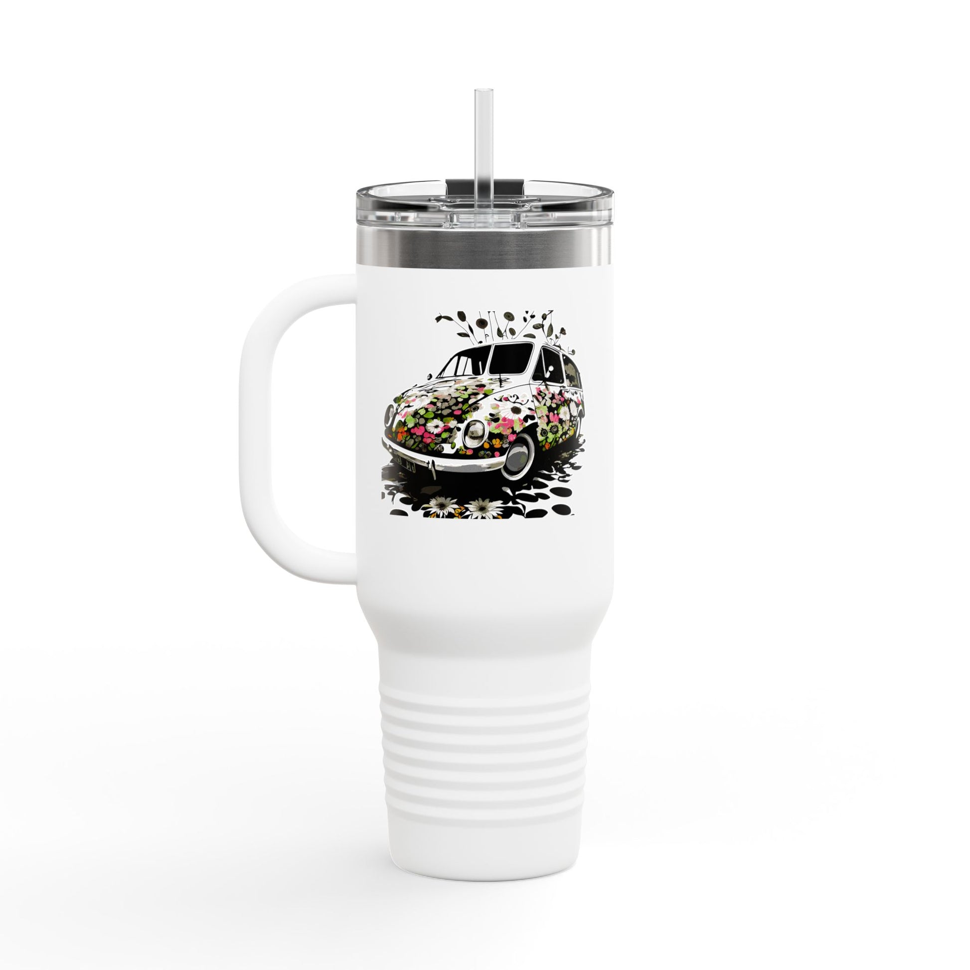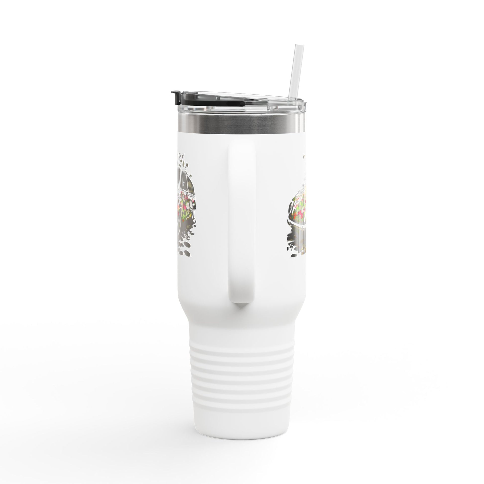 Floral Insulated Travel Mug for Hot & Cold Beverages, 40oz Drink Tumbler for Road Trips, Camping, Picnics, Gifts, Eco-Friendly