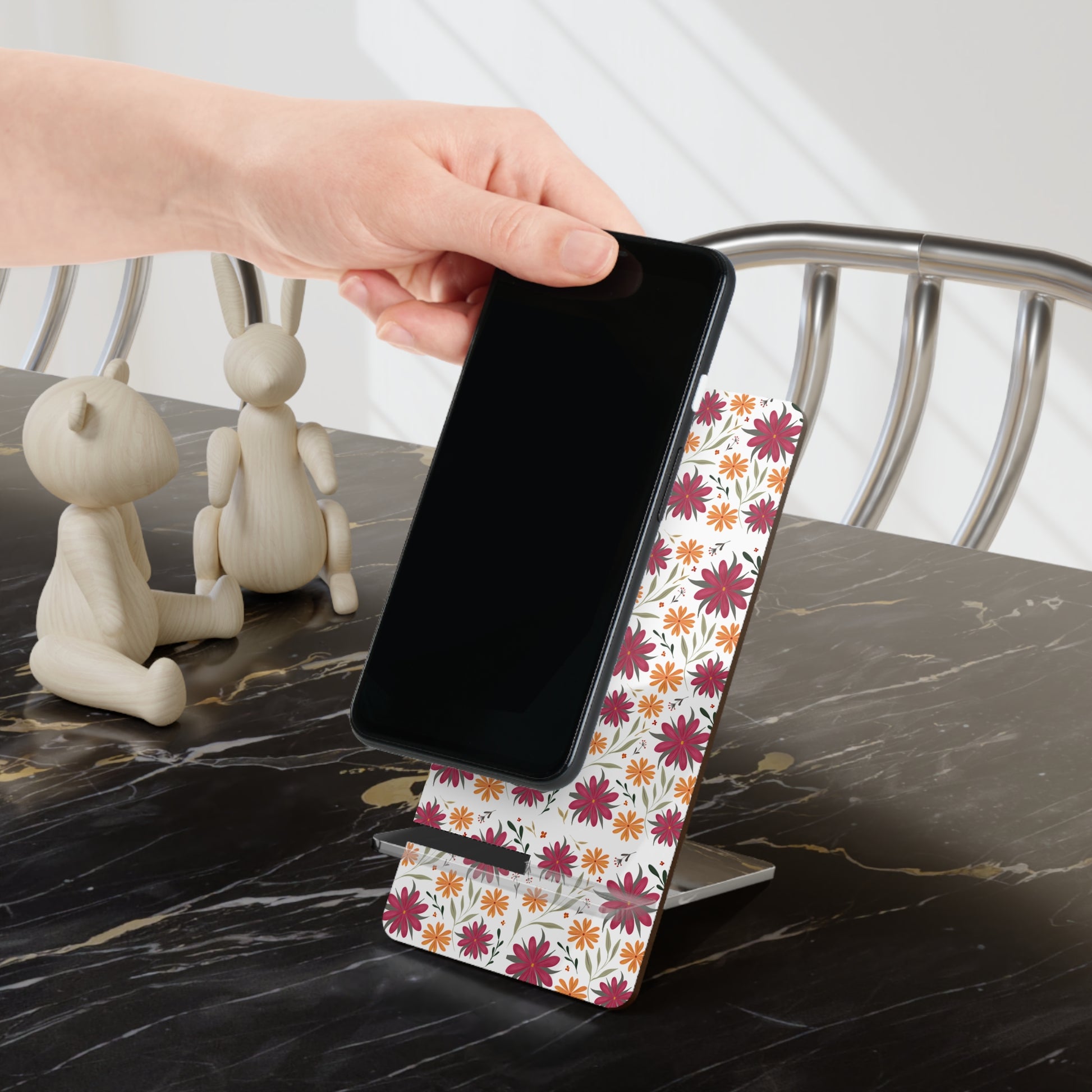 Floral Mobile Display Stand, Decorative Phone Holder, Desk Organizer, Functional Gift, Smartphone Stand, Cute Home Office Decor