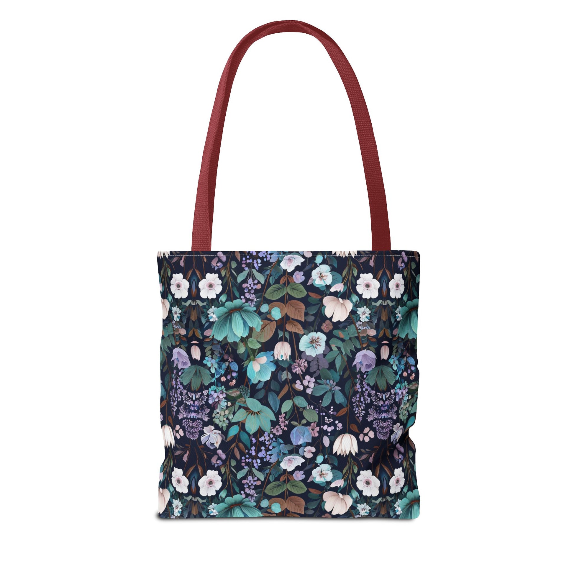 Floral Nightfall Tote Bag — Dark Botanical All-Over Print