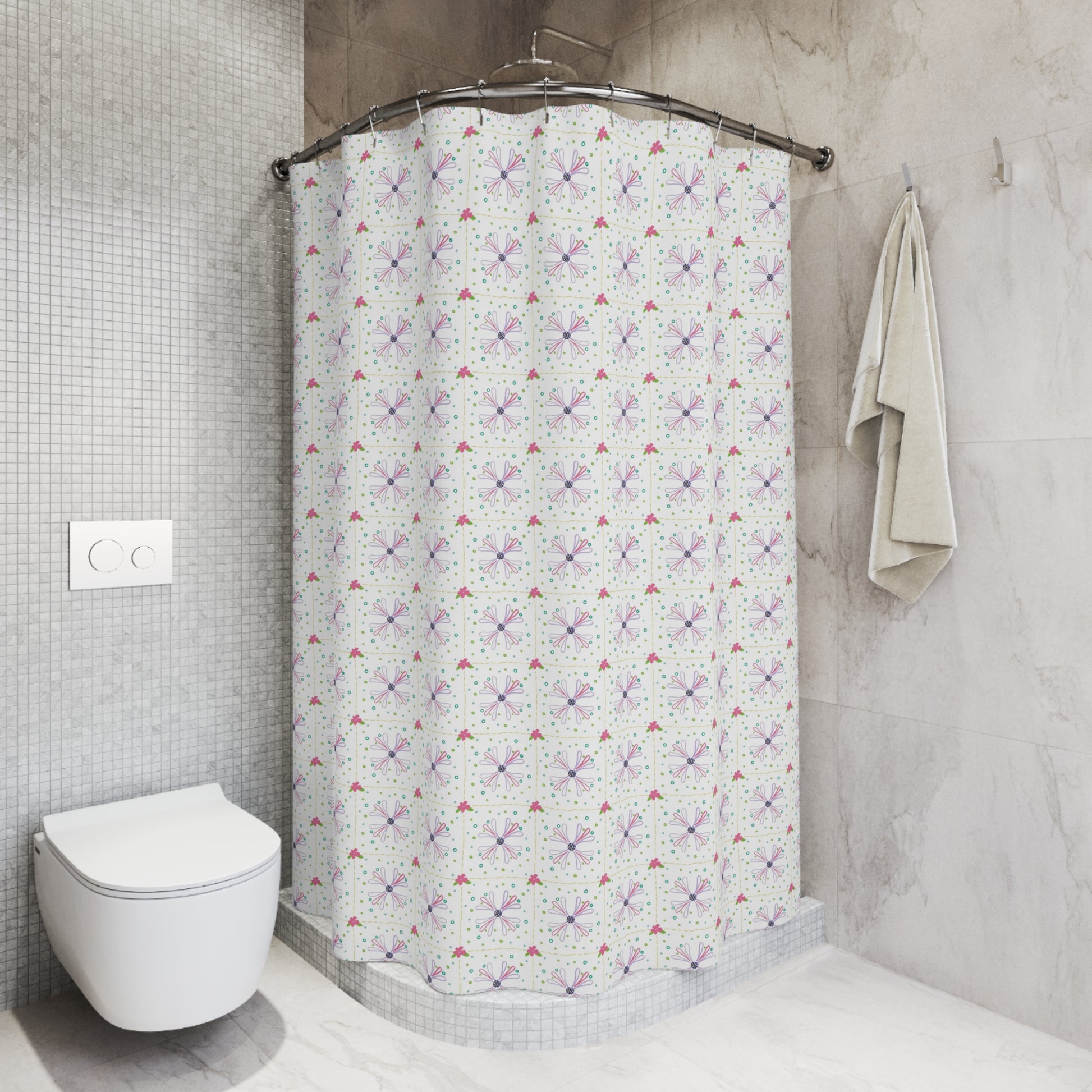 Elevate your bathroom decor with our stunning shower curtain, designed to bring a fresh and vibrant atmosphere to your space. This eye-catching piece features a beautiful one-sided print that adds a splash of color and charm, perfect for creating a serene oasis in your home. The durable 100% polyester fabric ensures it stands up to everyday use while drying quickly, making it both practical and stylish. Ideal for adults who enjoy a touch of flair in their living space, this shower curtain is a fantastic addition for housewarming gifts or bathroom makeovers. It’s perfect for any celebration or occasion, from seasonal updates to festive gatherings, adding a delightful touch to your bathroom aesthetics.