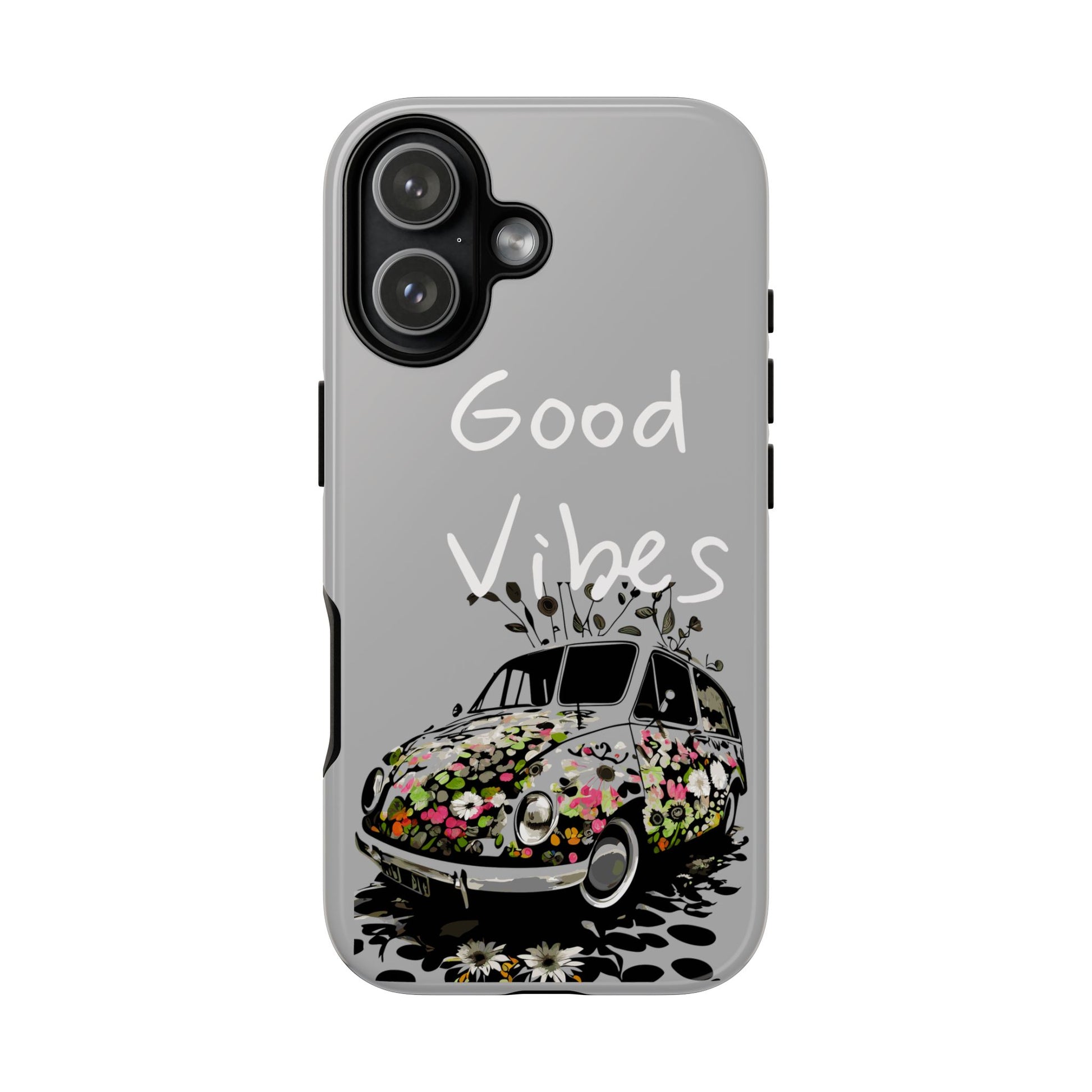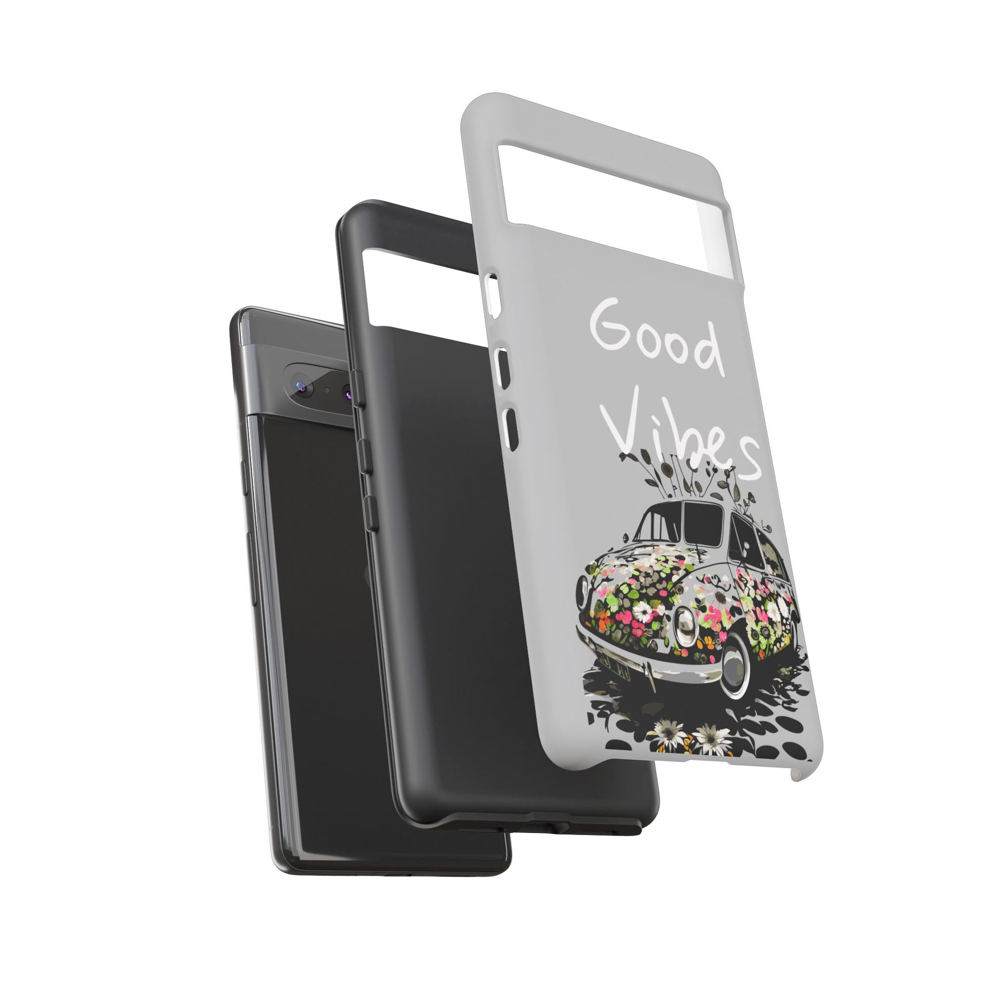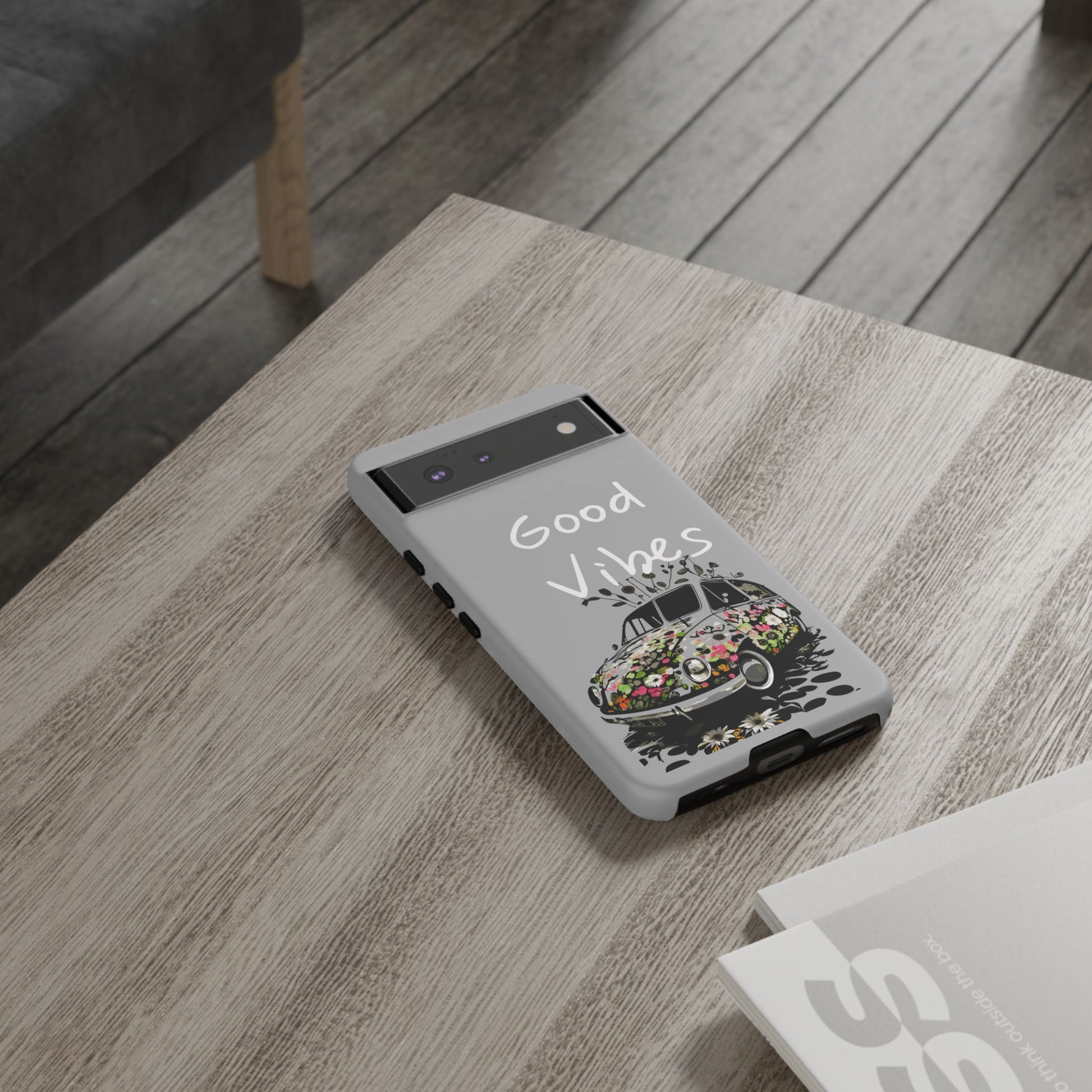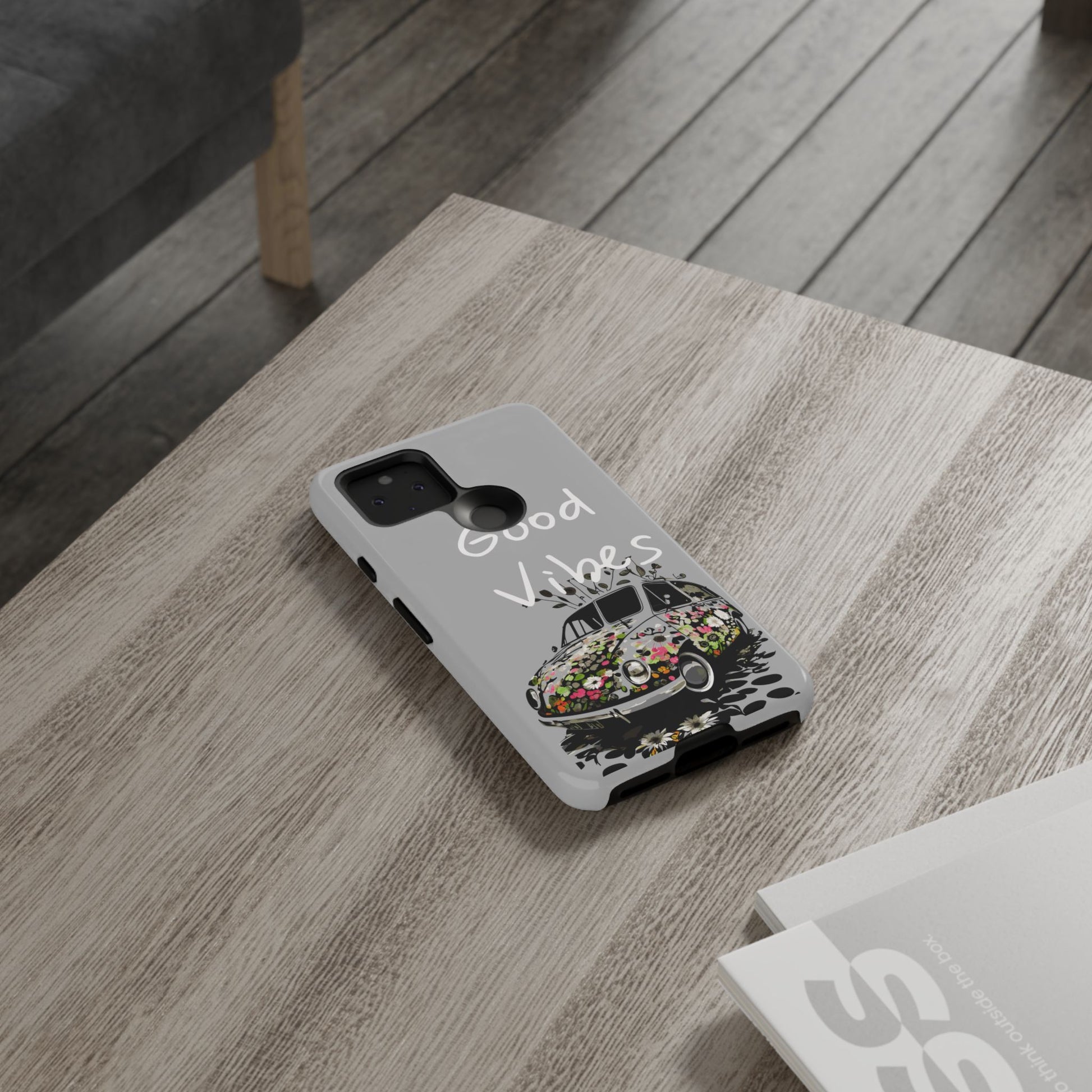 Introducing our protective phone case, designed to make a statement while keeping your device safe. With a fun and vibrant design featuring a colorful floral van and the encouraging phrase 'Good Vibes,' this phone case is perfect for anyone who embraces positivity and creativity. It caters to young adults and those young at heart who appreciate unique accessories that reflect their personality. This phone case not only adds a splash of color to your everyday life but also provides top-notch protection for your phone. It's an ideal gift for birthdays, holidays, or just to treat yourself. Let your phone stand out while being safe from daily bumps and drops!