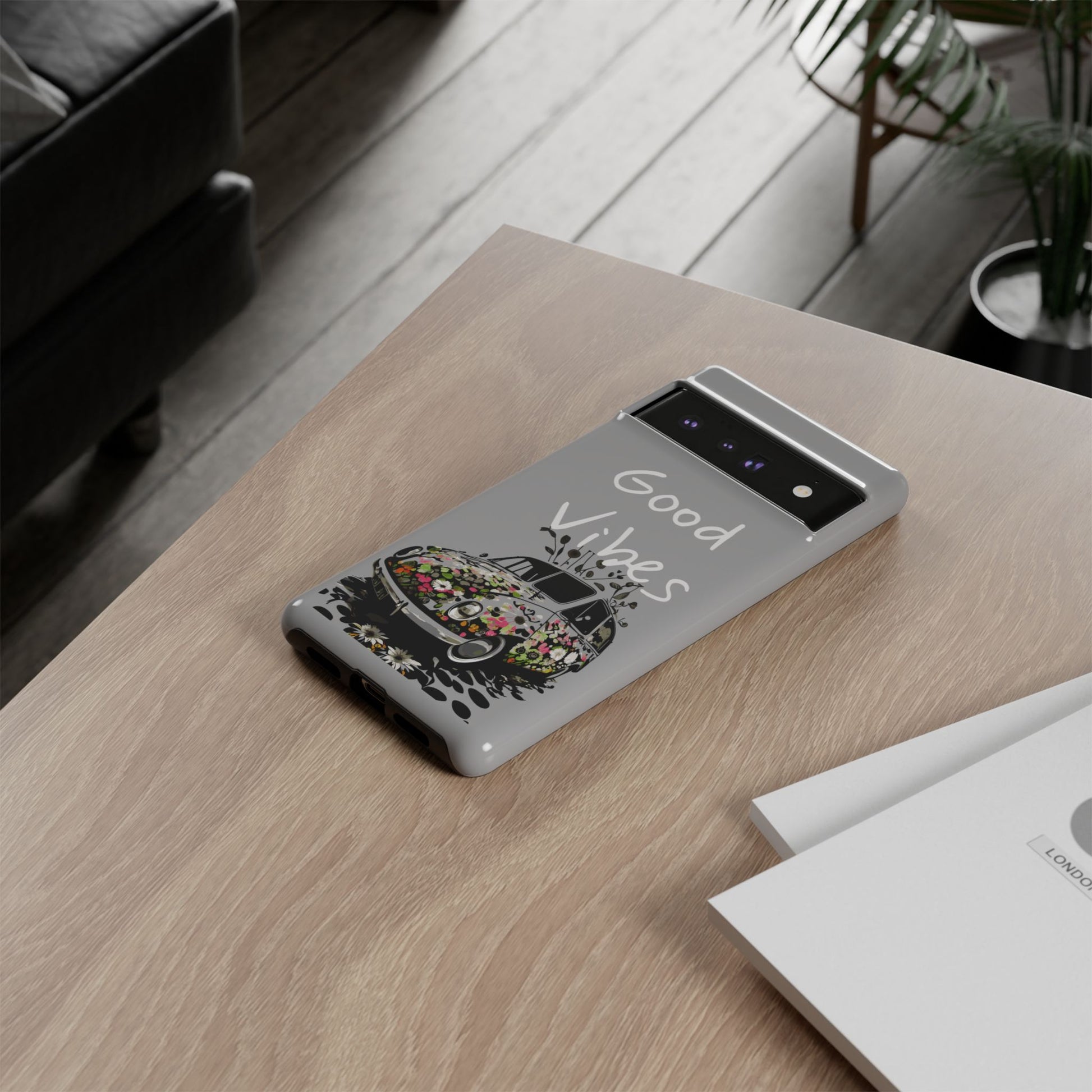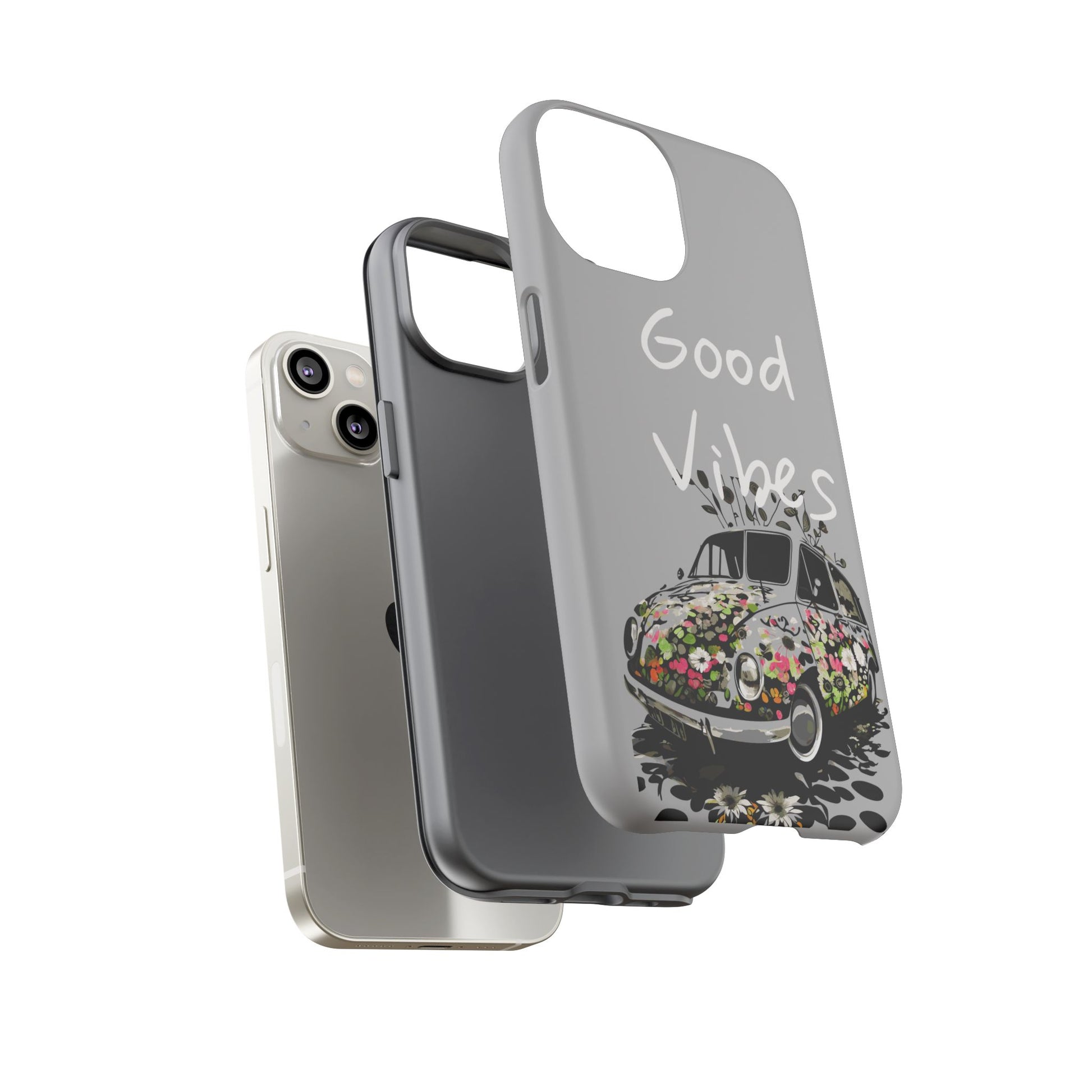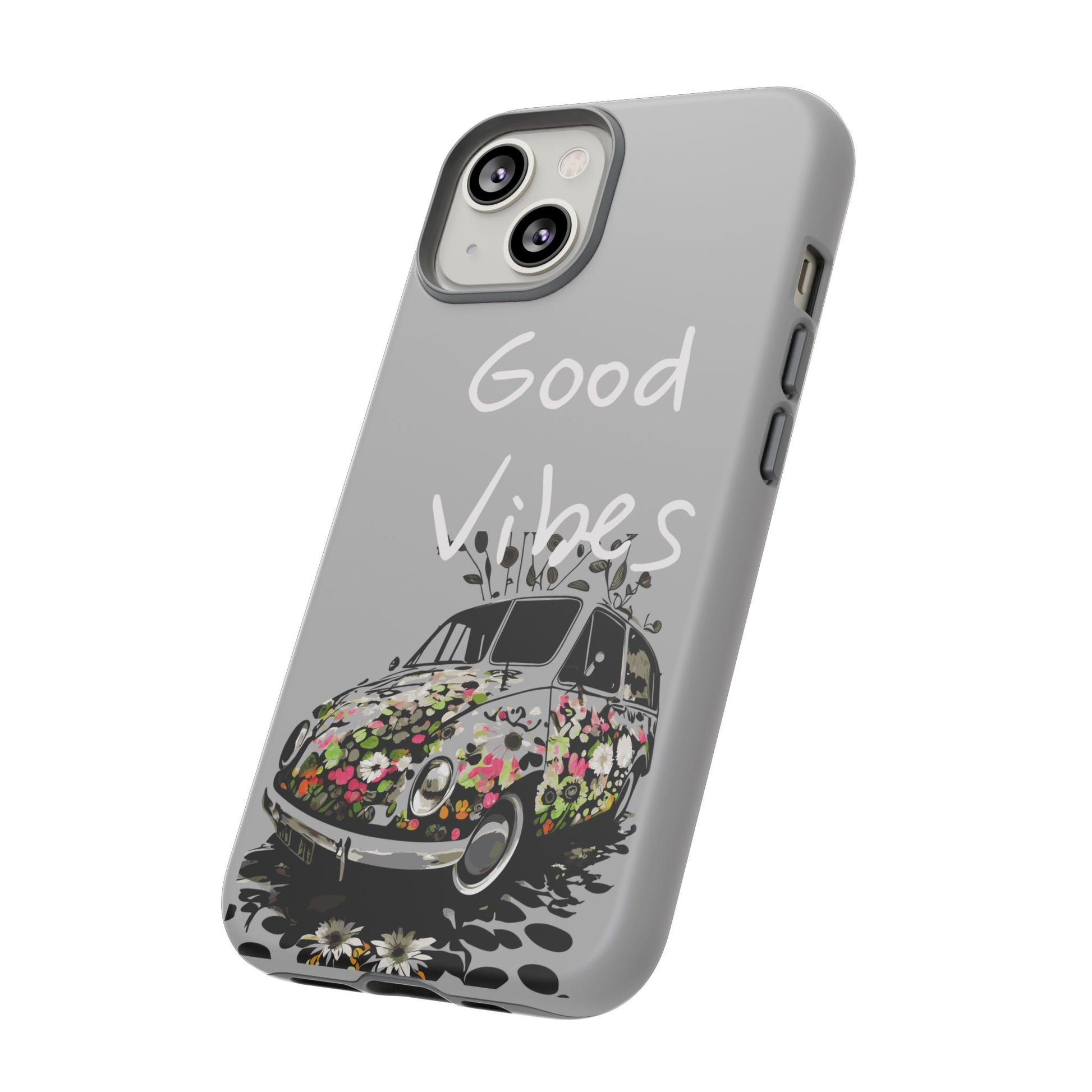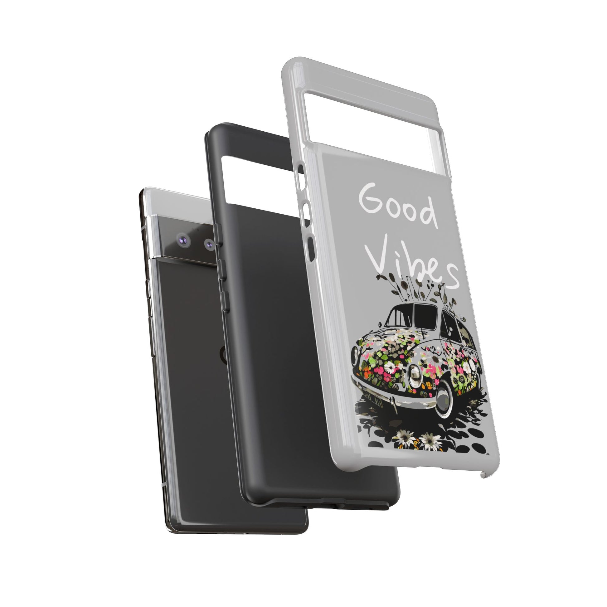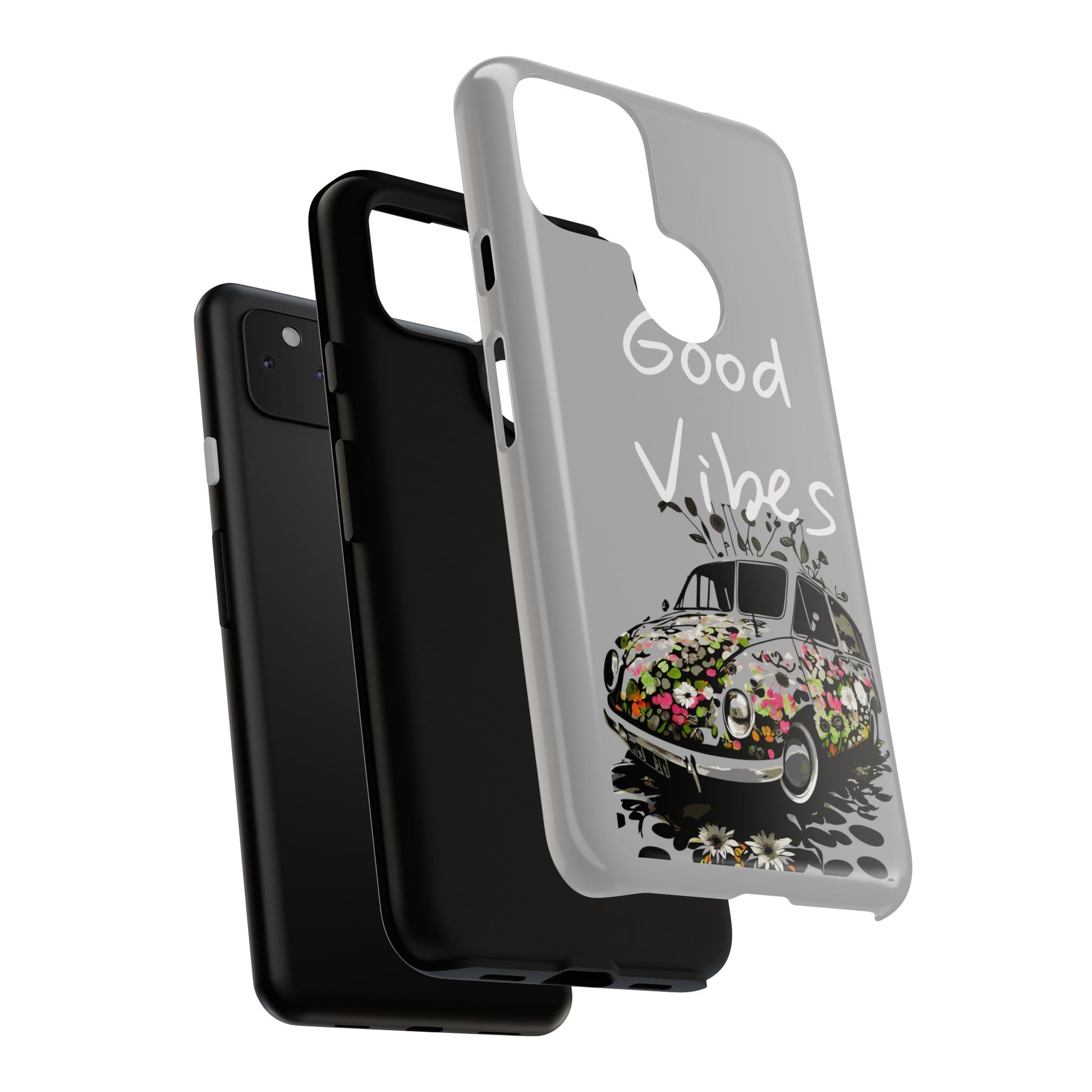 Introducing our protective phone case, designed to make a statement while keeping your device safe. With a fun and vibrant design featuring a colorful floral van and the encouraging phrase 'Good Vibes,' this phone case is perfect for anyone who embraces positivity and creativity. It caters to young adults and those young at heart who appreciate unique accessories that reflect their personality. This phone case not only adds a splash of color to your everyday life but also provides top-notch protection for your phone. It's an ideal gift for birthdays, holidays, or just to treat yourself. Let your phone stand out while being safe from daily bumps and drops!
