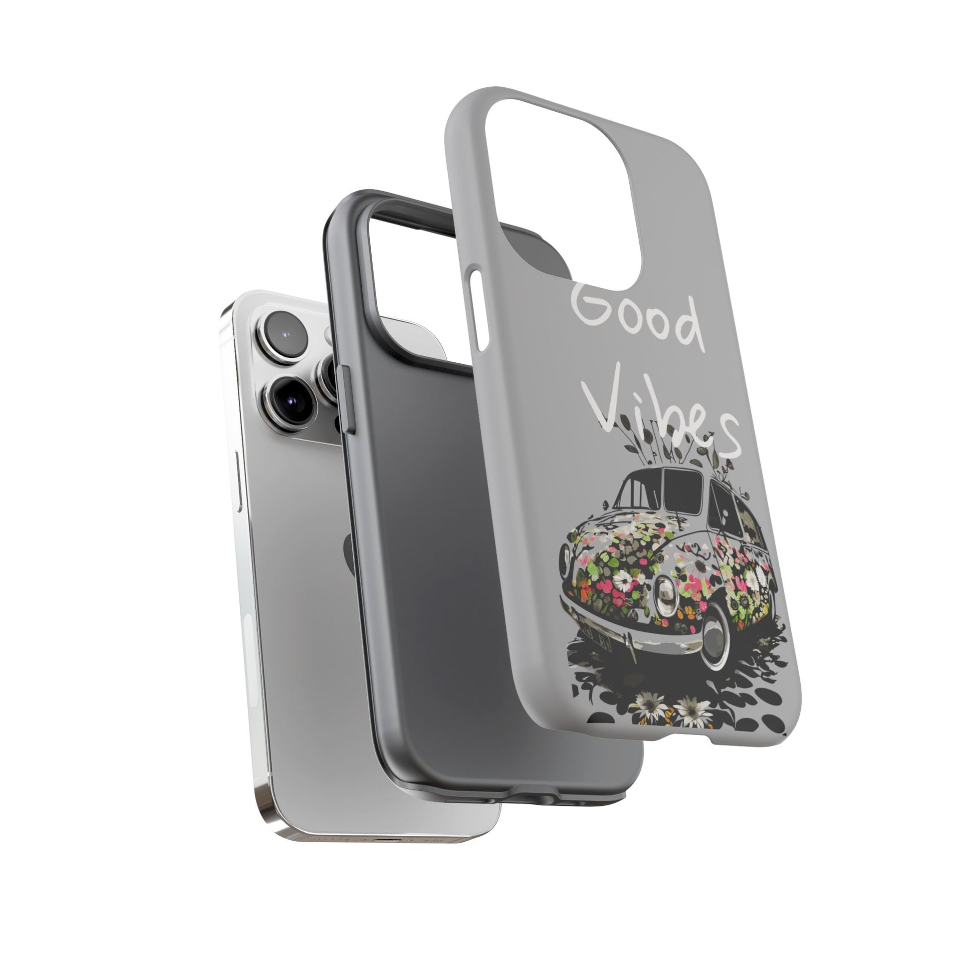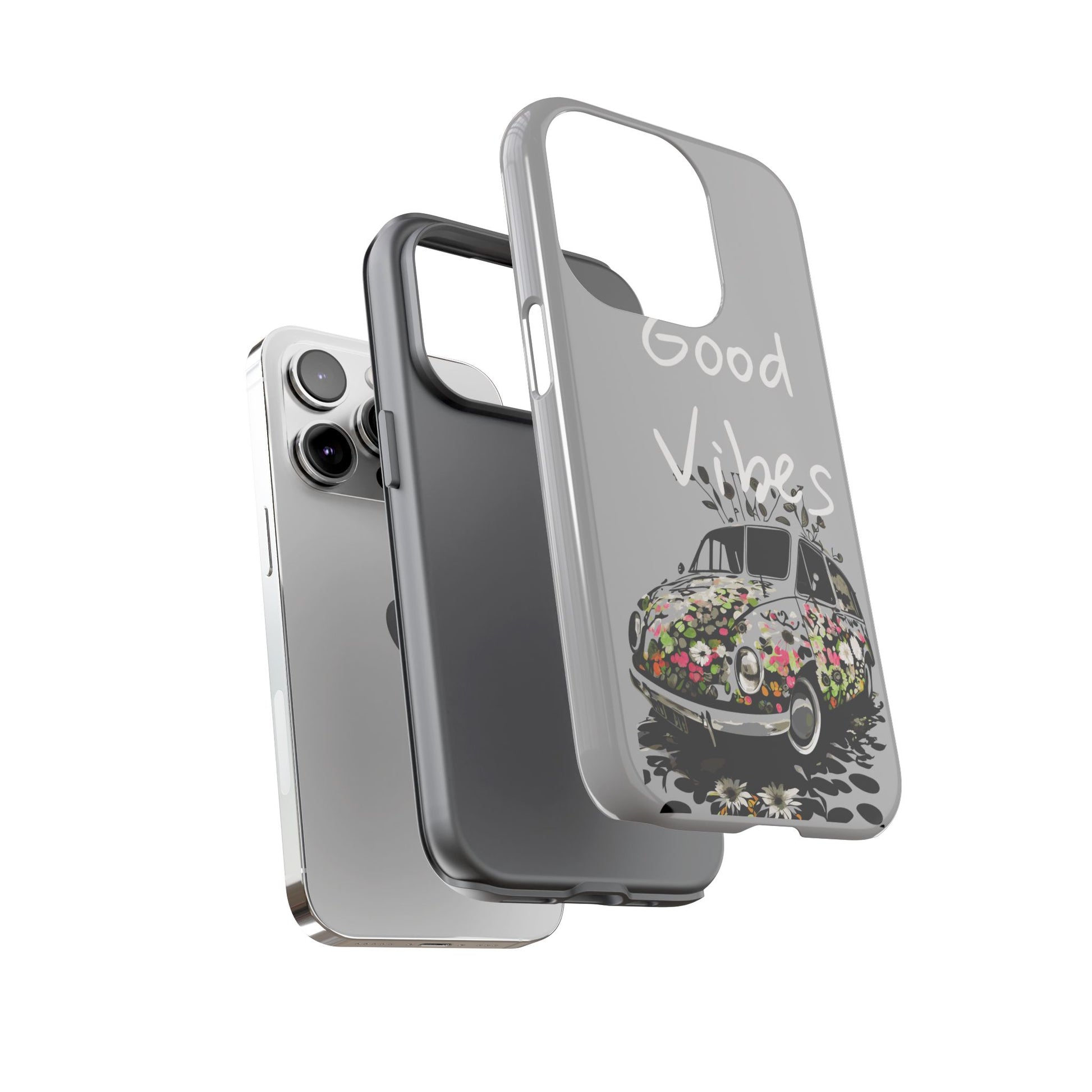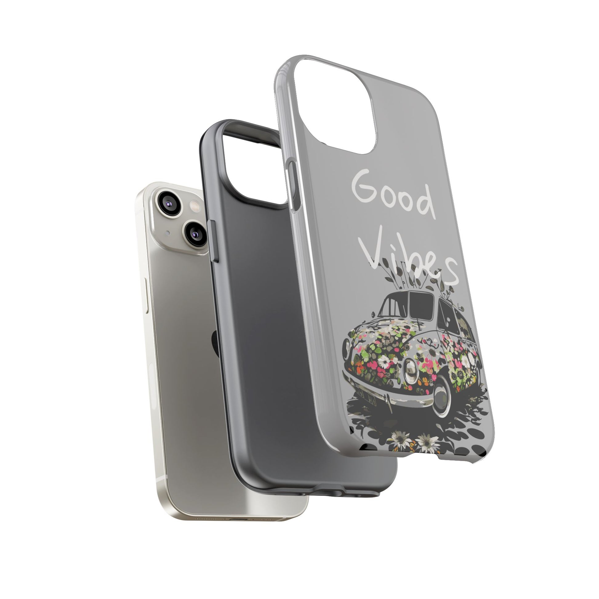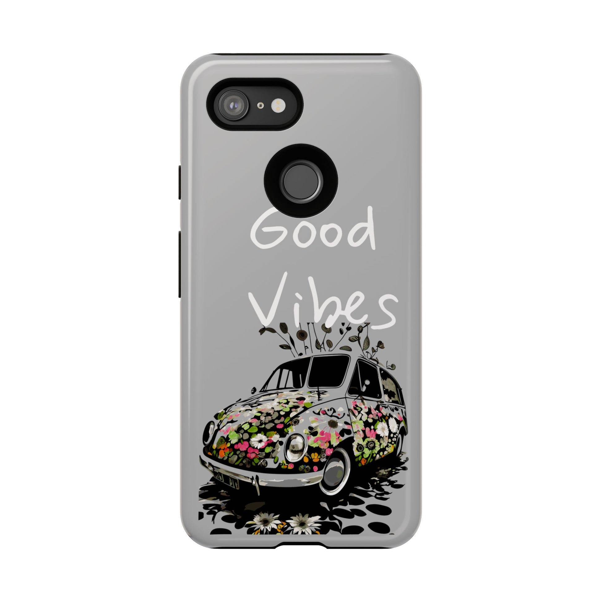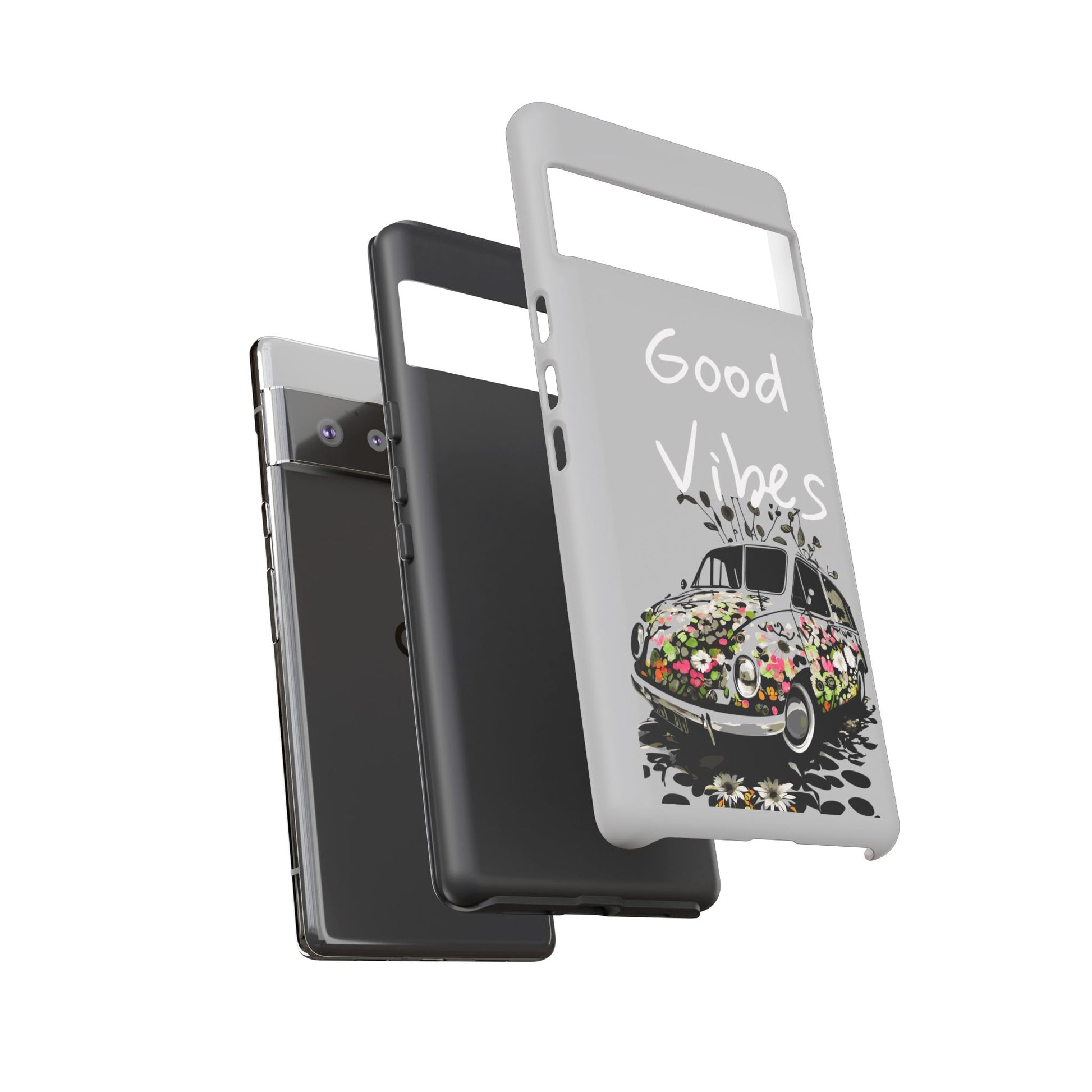 Introducing our protective phone case, designed to make a statement while keeping your device safe. With a fun and vibrant design featuring a colorful floral van and the encouraging phrase 'Good Vibes,' this phone case is perfect for anyone who embraces positivity and creativity. It caters to young adults and those young at heart who appreciate unique accessories that reflect their personality. This phone case not only adds a splash of color to your everyday life but also provides top-notch protection for your phone. It's an ideal gift for birthdays, holidays, or just to treat yourself. Let your phone stand out while being safe from daily bumps and drops!
