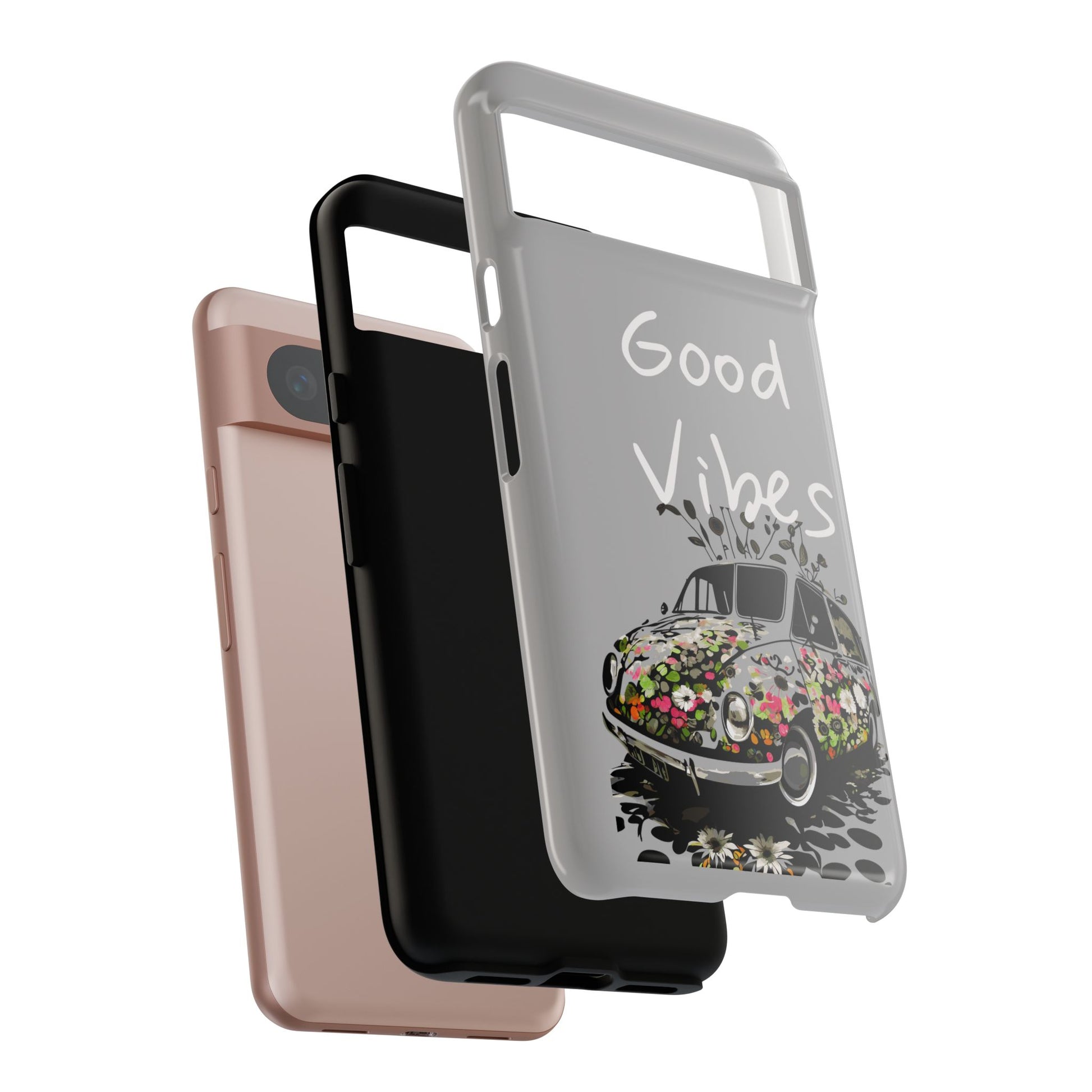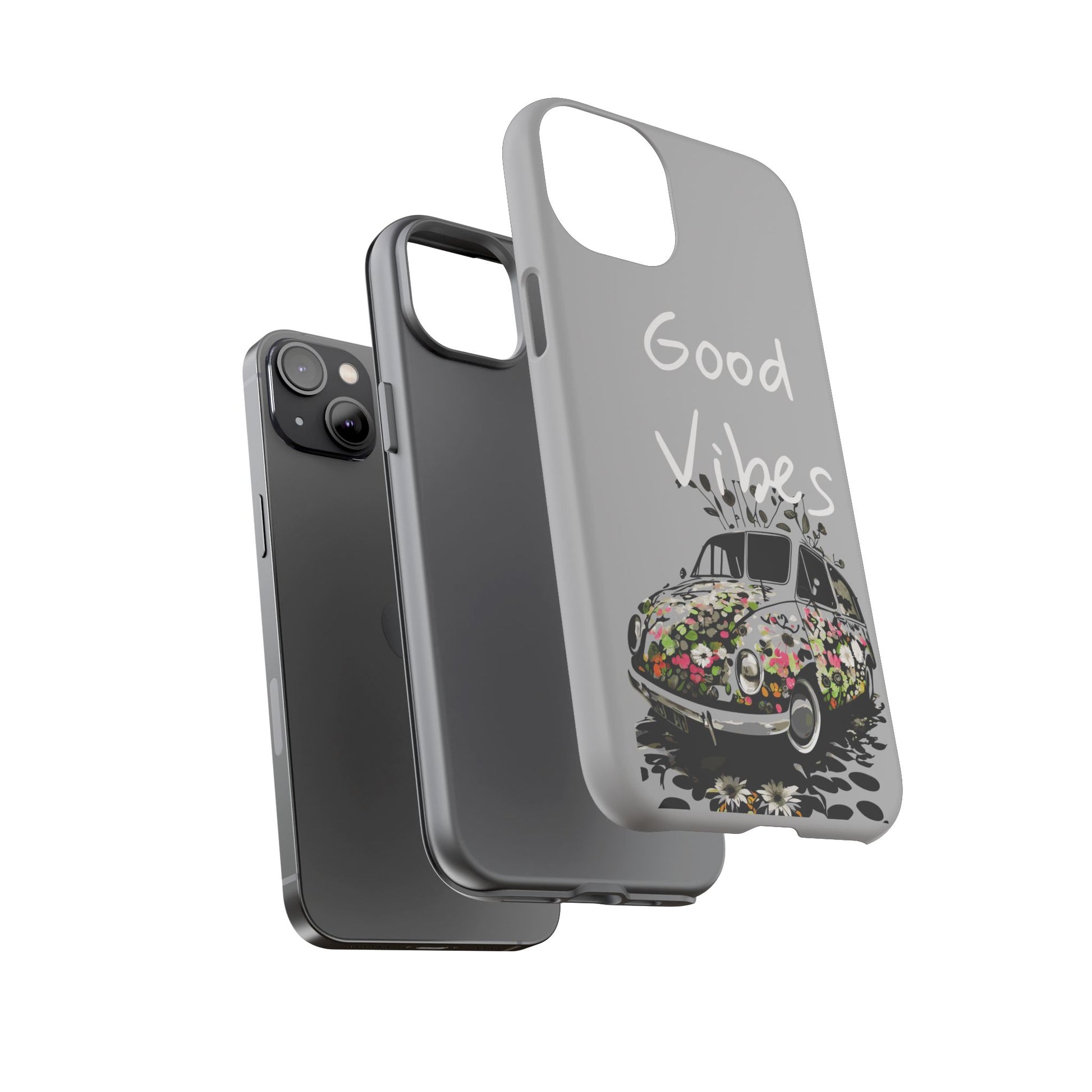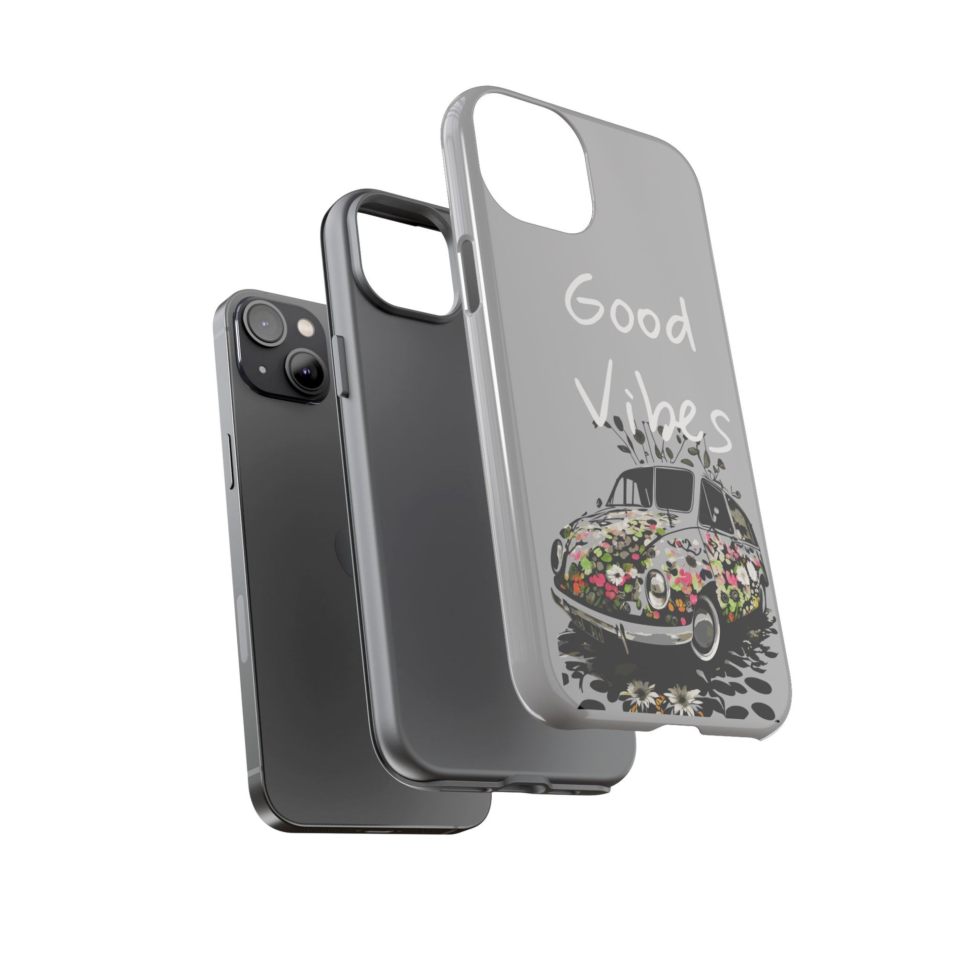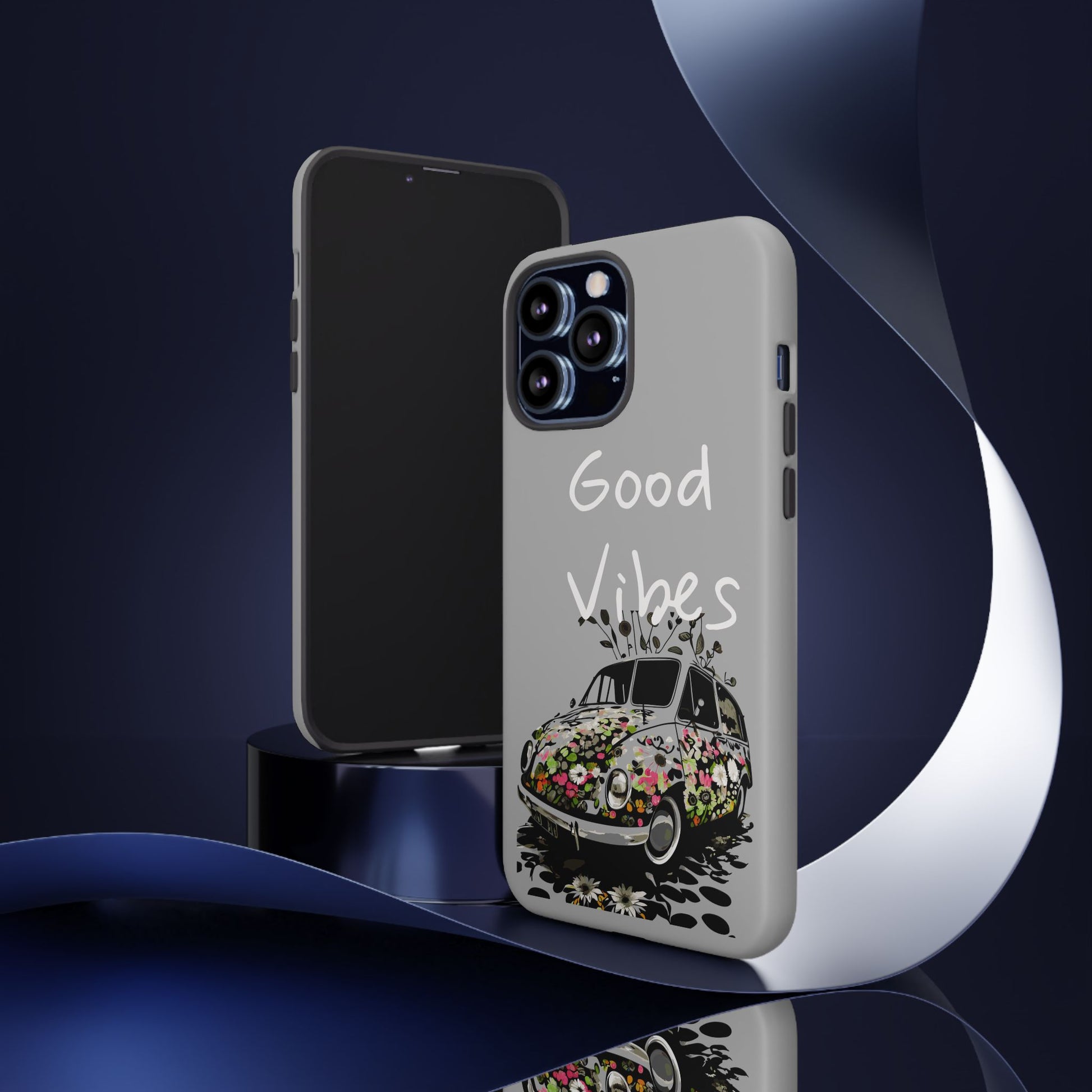 Introducing our protective phone case, designed to make a statement while keeping your device safe. With a fun and vibrant design featuring a colorful floral van and the encouraging phrase 'Good Vibes,' this phone case is perfect for anyone who embraces positivity and creativity. It caters to young adults and those young at heart who appreciate unique accessories that reflect their personality. This phone case not only adds a splash of color to your everyday life but also provides top-notch protection for your phone. It's an ideal gift for birthdays, holidays, or just to treat yourself. Let your phone stand out while being safe from daily bumps and drops!