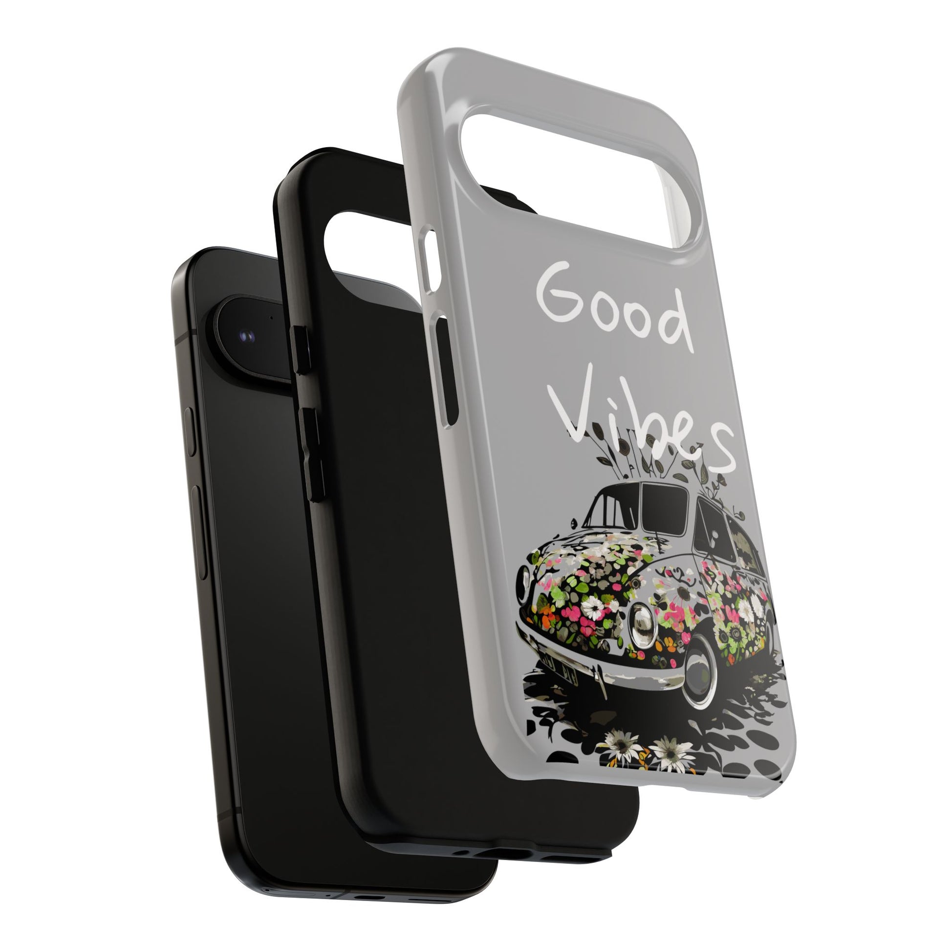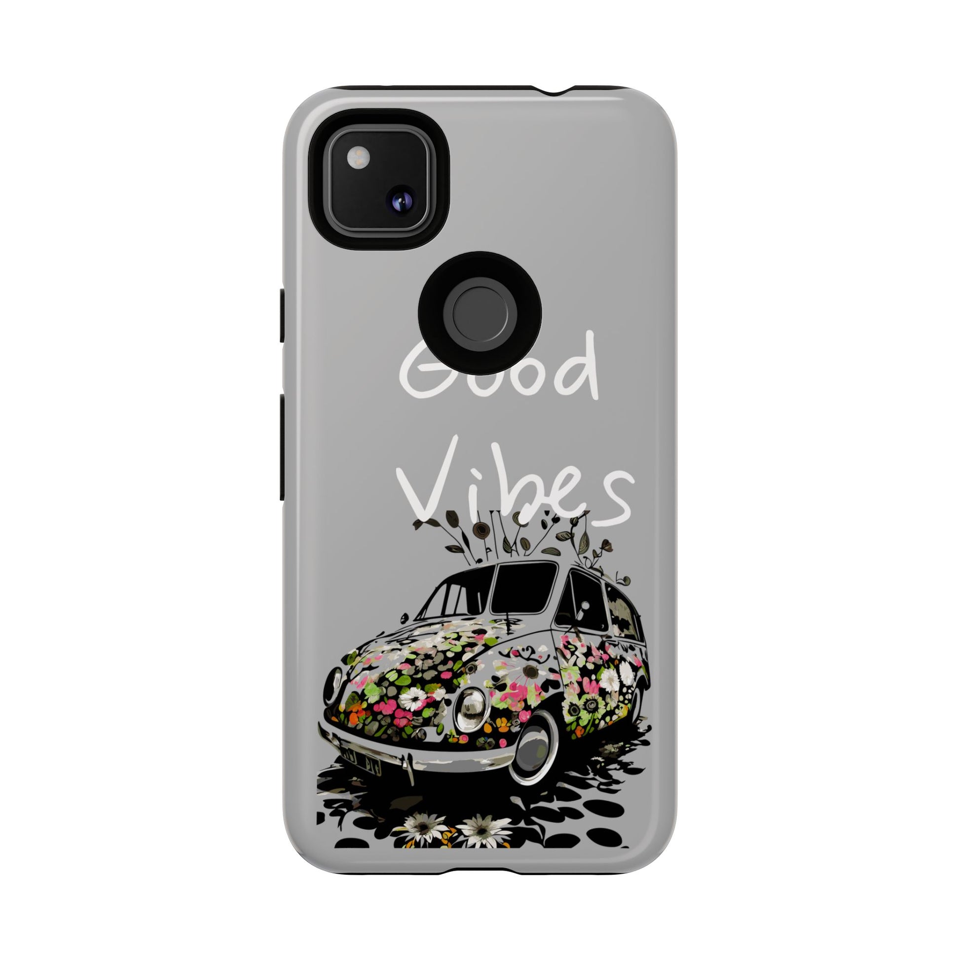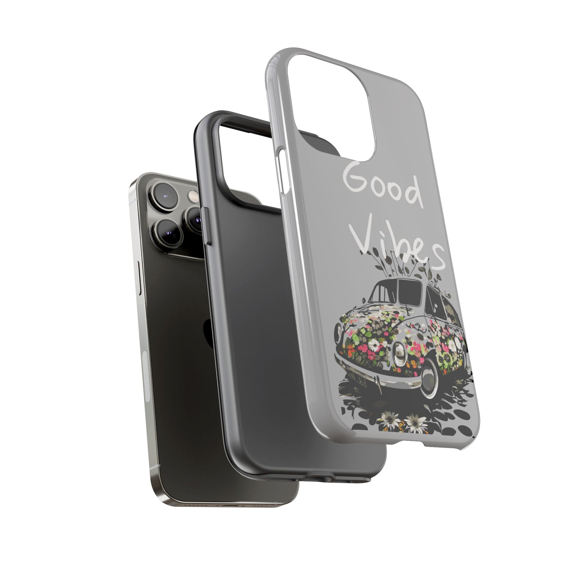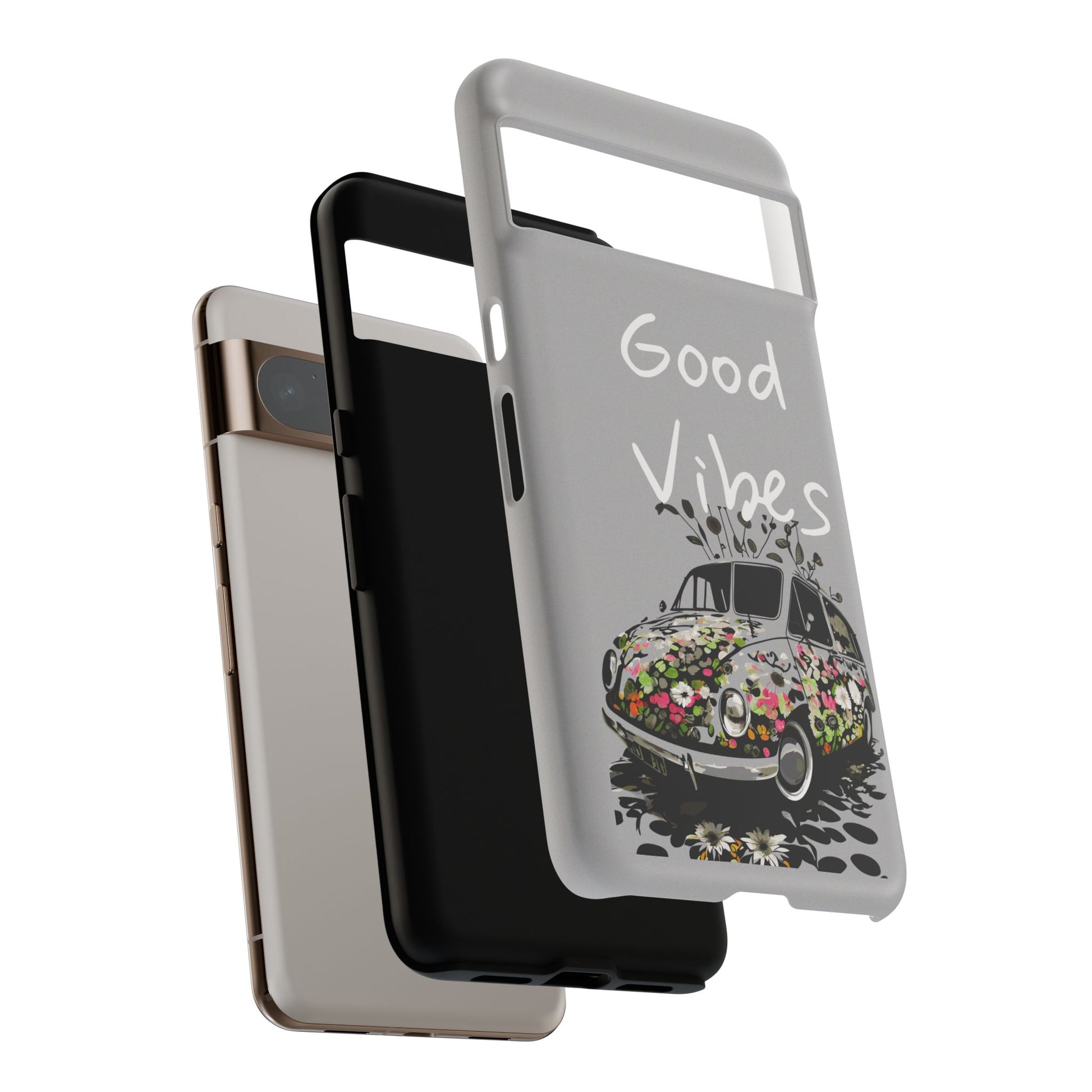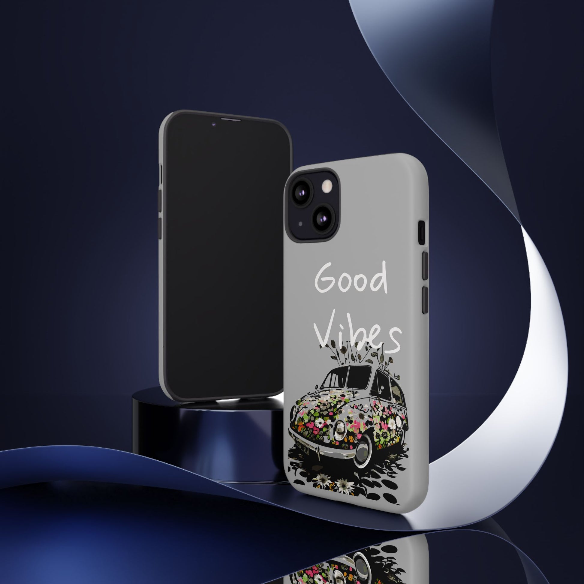 Introducing our protective phone case, designed to make a statement while keeping your device safe. With a fun and vibrant design featuring a colorful floral van and the encouraging phrase 'Good Vibes,' this phone case is perfect for anyone who embraces positivity and creativity. It caters to young adults and those young at heart who appreciate unique accessories that reflect their personality. This phone case not only adds a splash of color to your everyday life but also provides top-notch protection for your phone. It's an ideal gift for birthdays, holidays, or just to treat yourself. Let your phone stand out while being safe from daily bumps and drops!