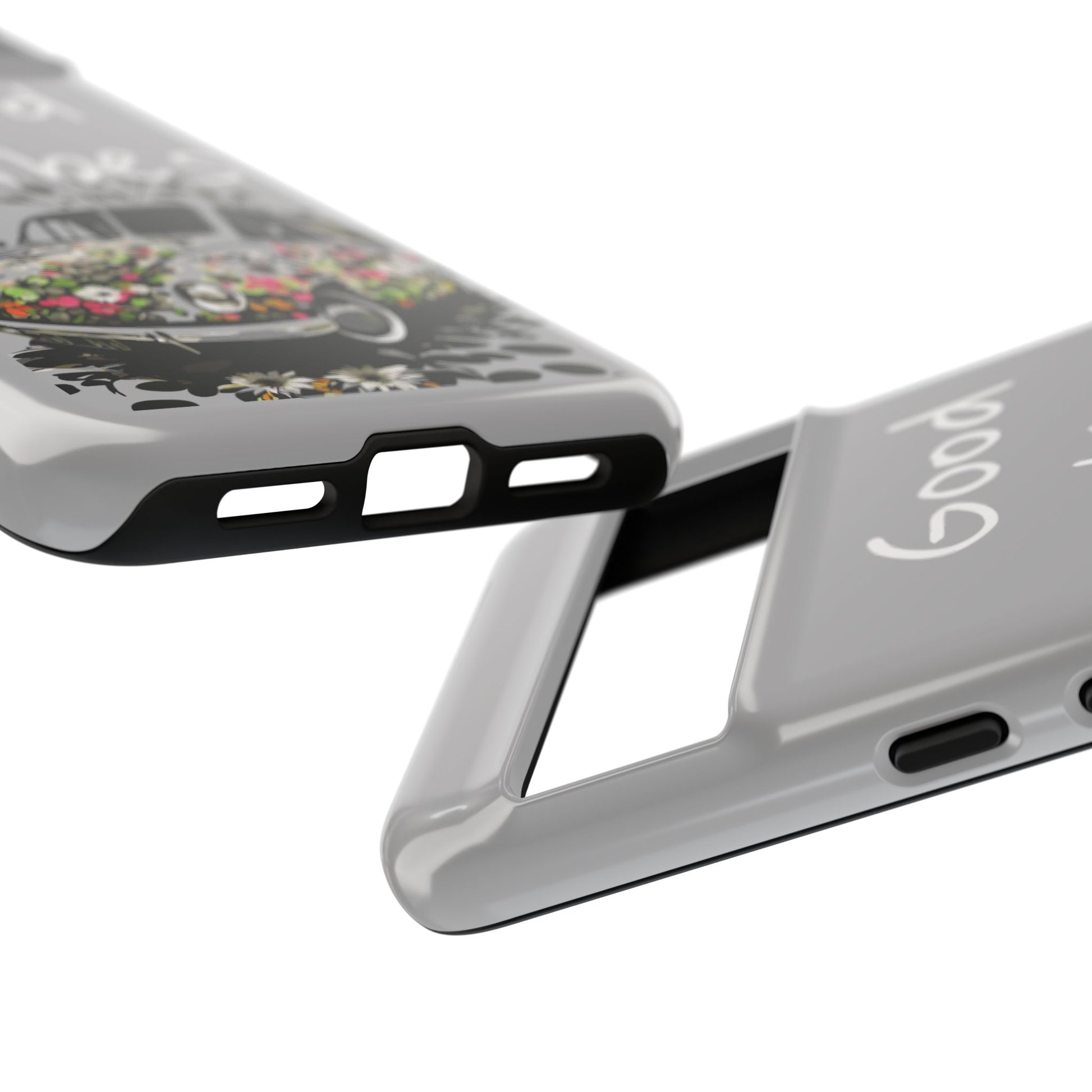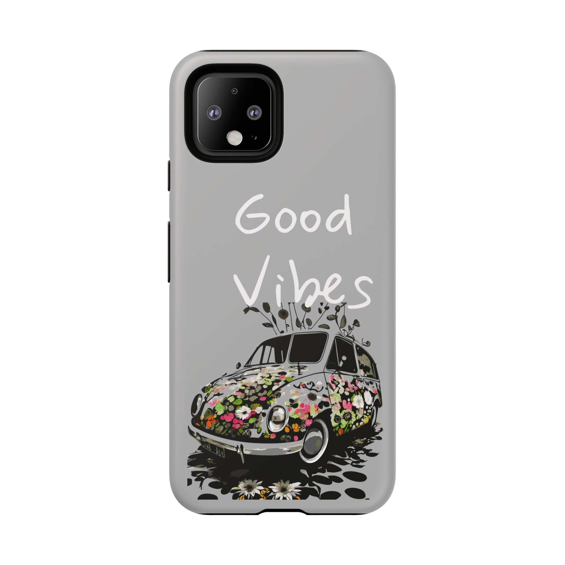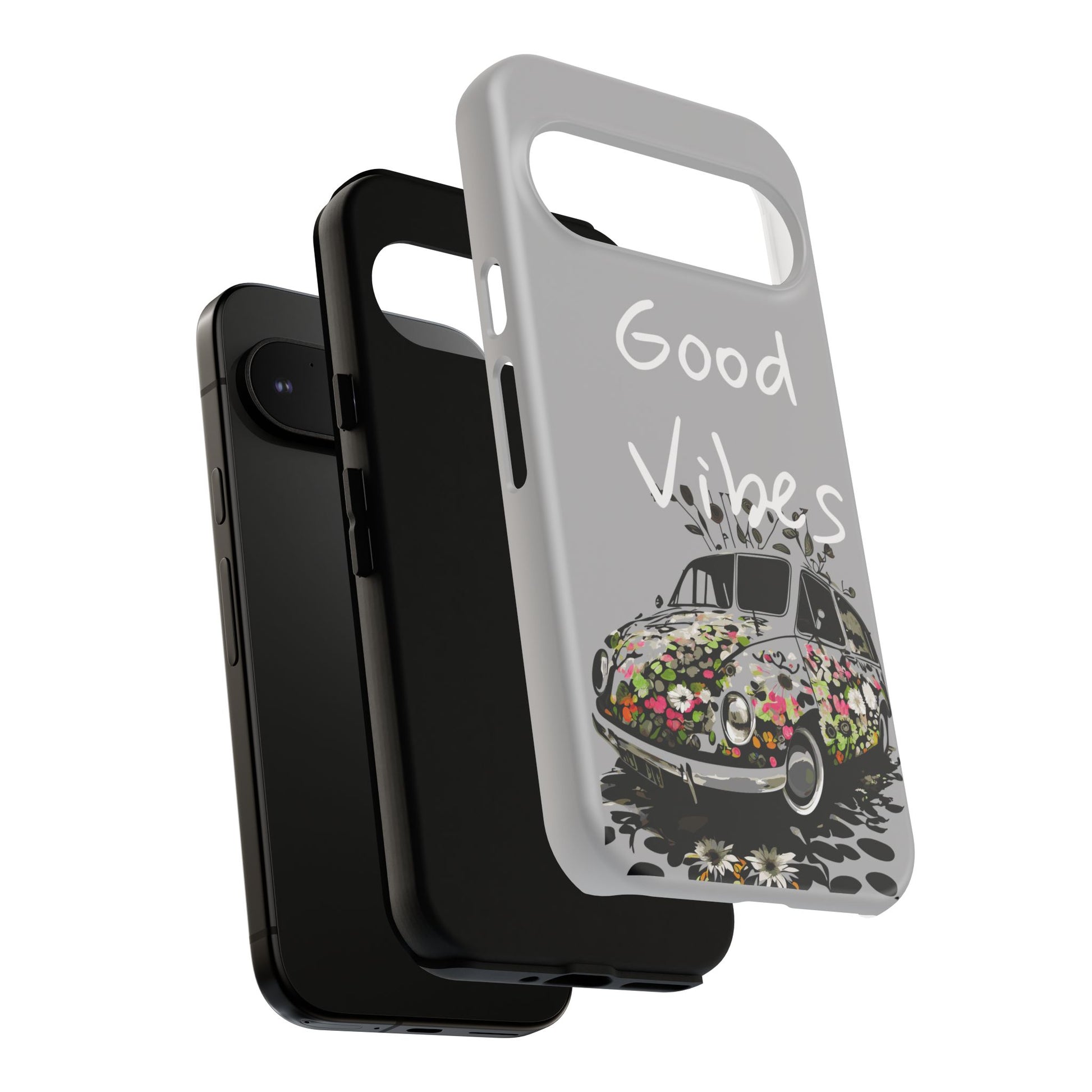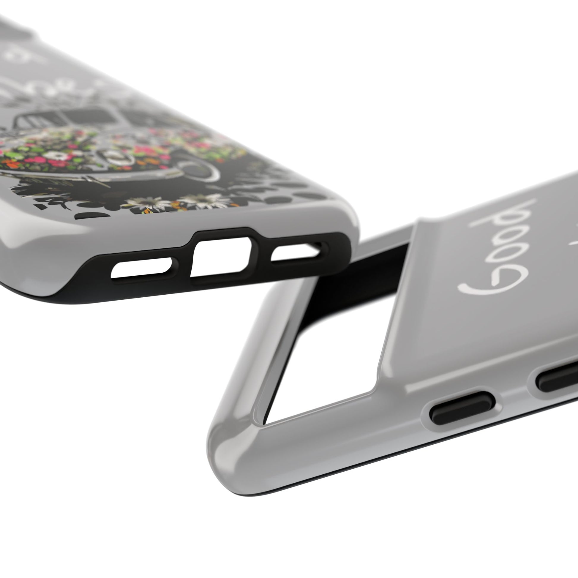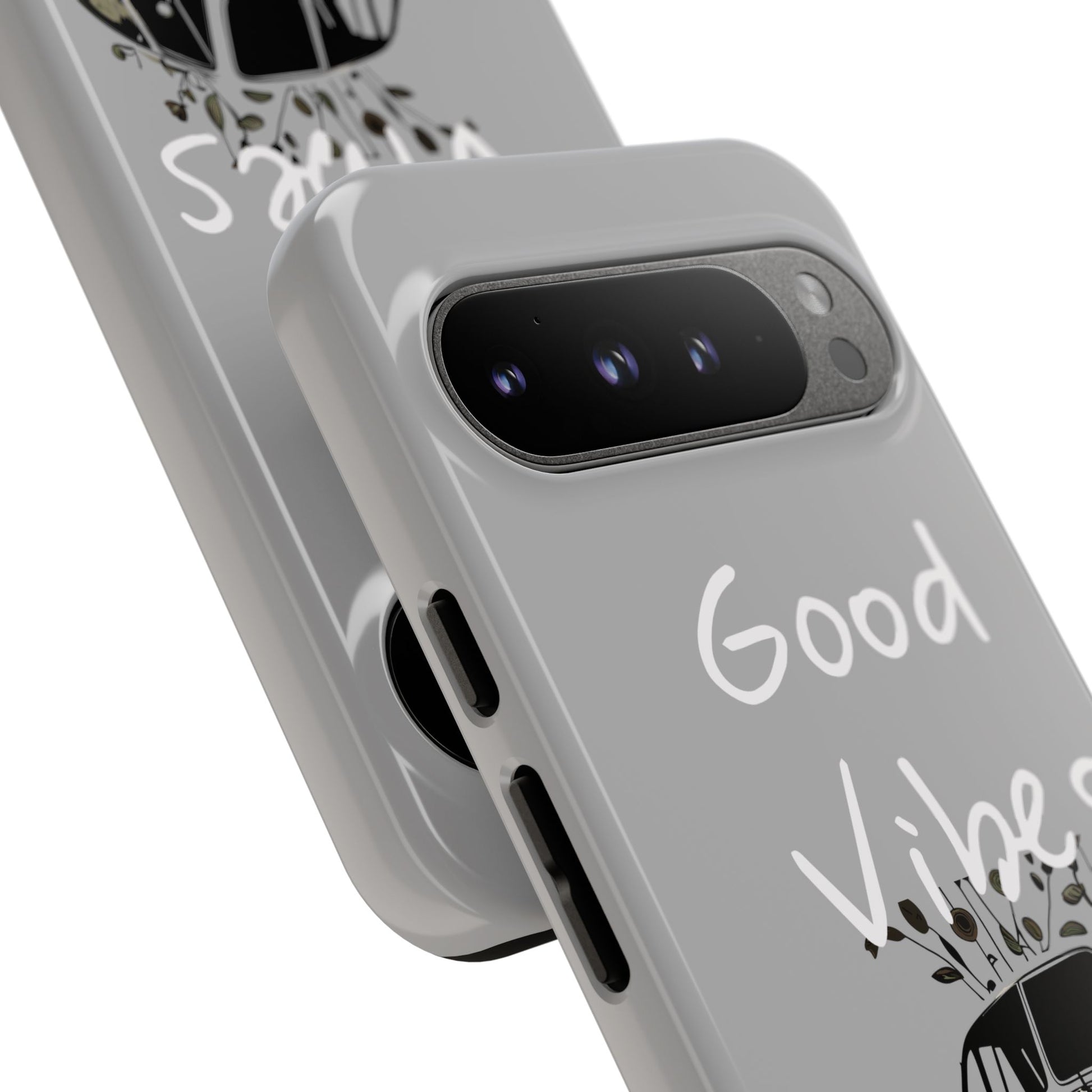 Introducing our protective phone case, designed to make a statement while keeping your device safe. With a fun and vibrant design featuring a colorful floral van and the encouraging phrase 'Good Vibes,' this phone case is perfect for anyone who embraces positivity and creativity. It caters to young adults and those young at heart who appreciate unique accessories that reflect their personality. This phone case not only adds a splash of color to your everyday life but also provides top-notch protection for your phone. It's an ideal gift for birthdays, holidays, or just to treat yourself. Let your phone stand out while being safe from daily bumps and drops!