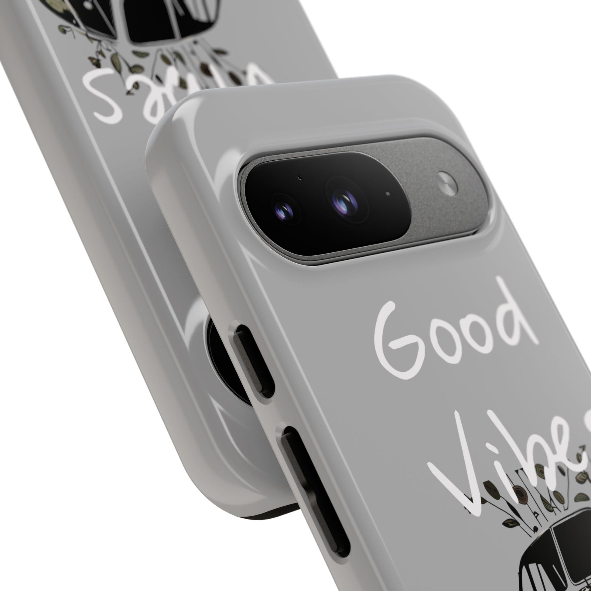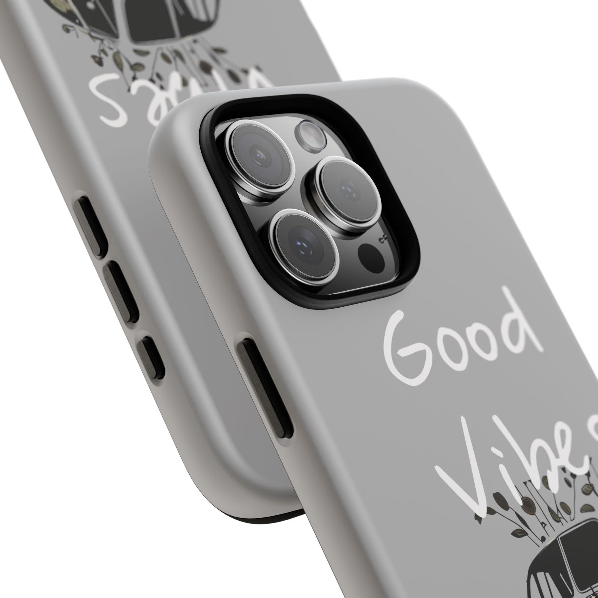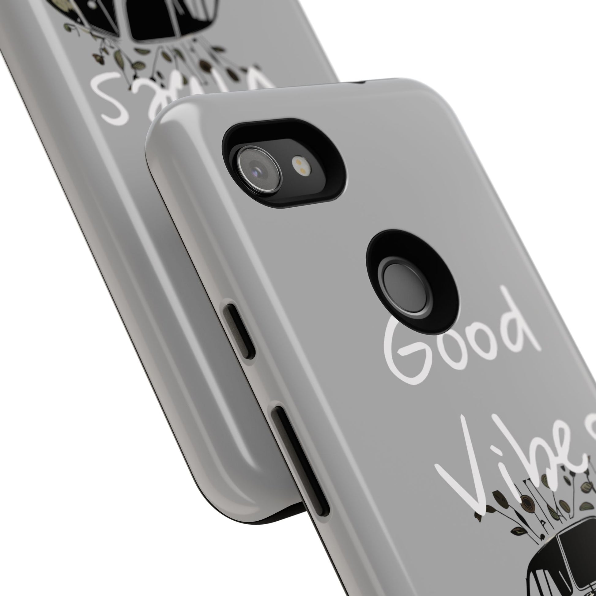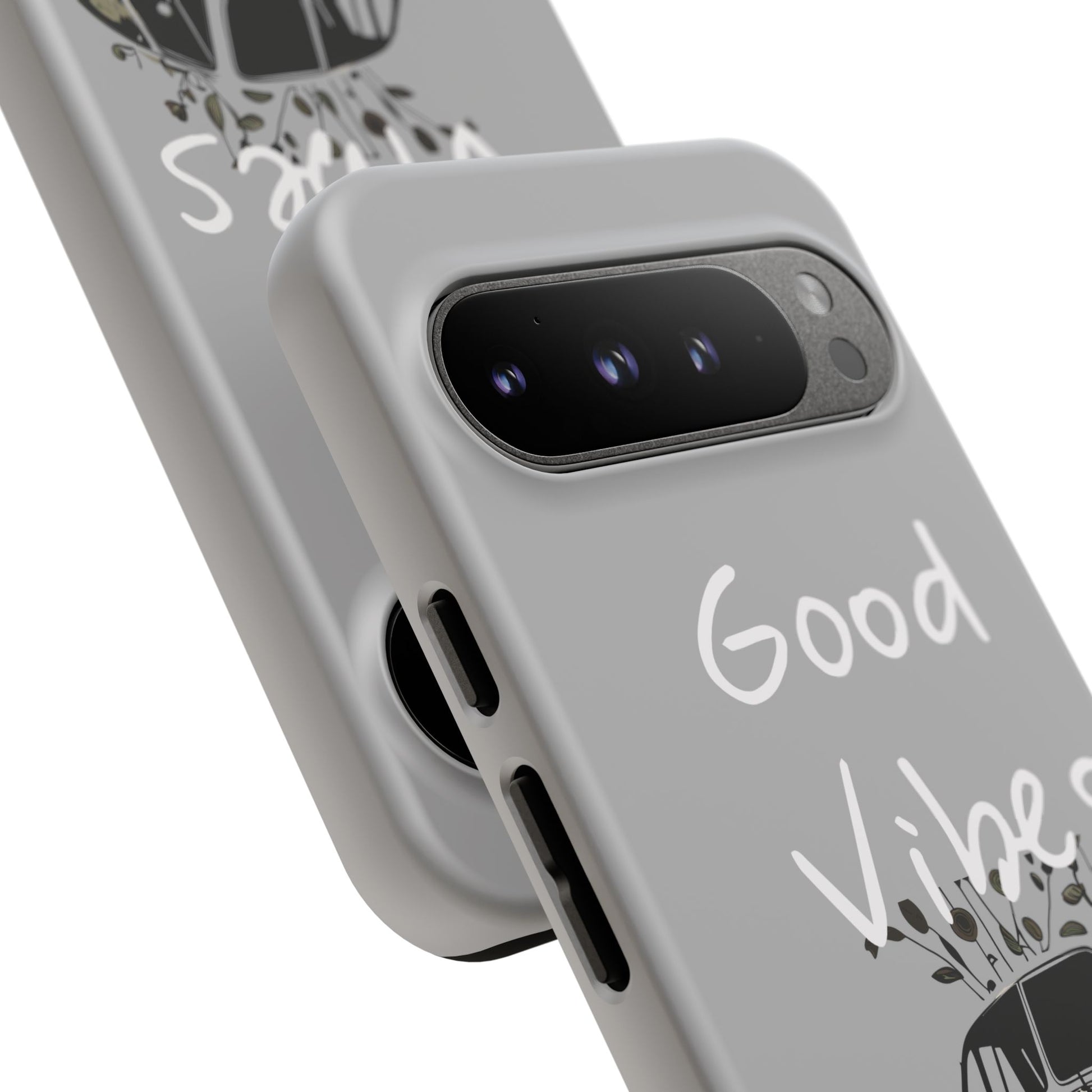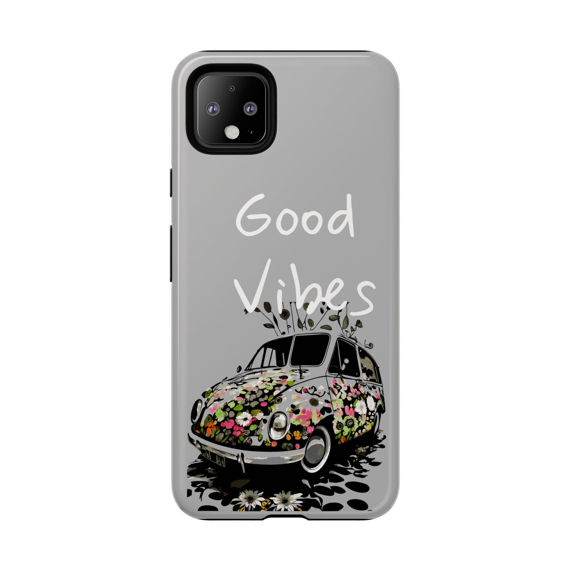 Introducing our protective phone case, designed to make a statement while keeping your device safe. With a fun and vibrant design featuring a colorful floral van and the encouraging phrase 'Good Vibes,' this phone case is perfect for anyone who embraces positivity and creativity. It caters to young adults and those young at heart who appreciate unique accessories that reflect their personality. This phone case not only adds a splash of color to your everyday life but also provides top-notch protection for your phone. It's an ideal gift for birthdays, holidays, or just to treat yourself. Let your phone stand out while being safe from daily bumps and drops!