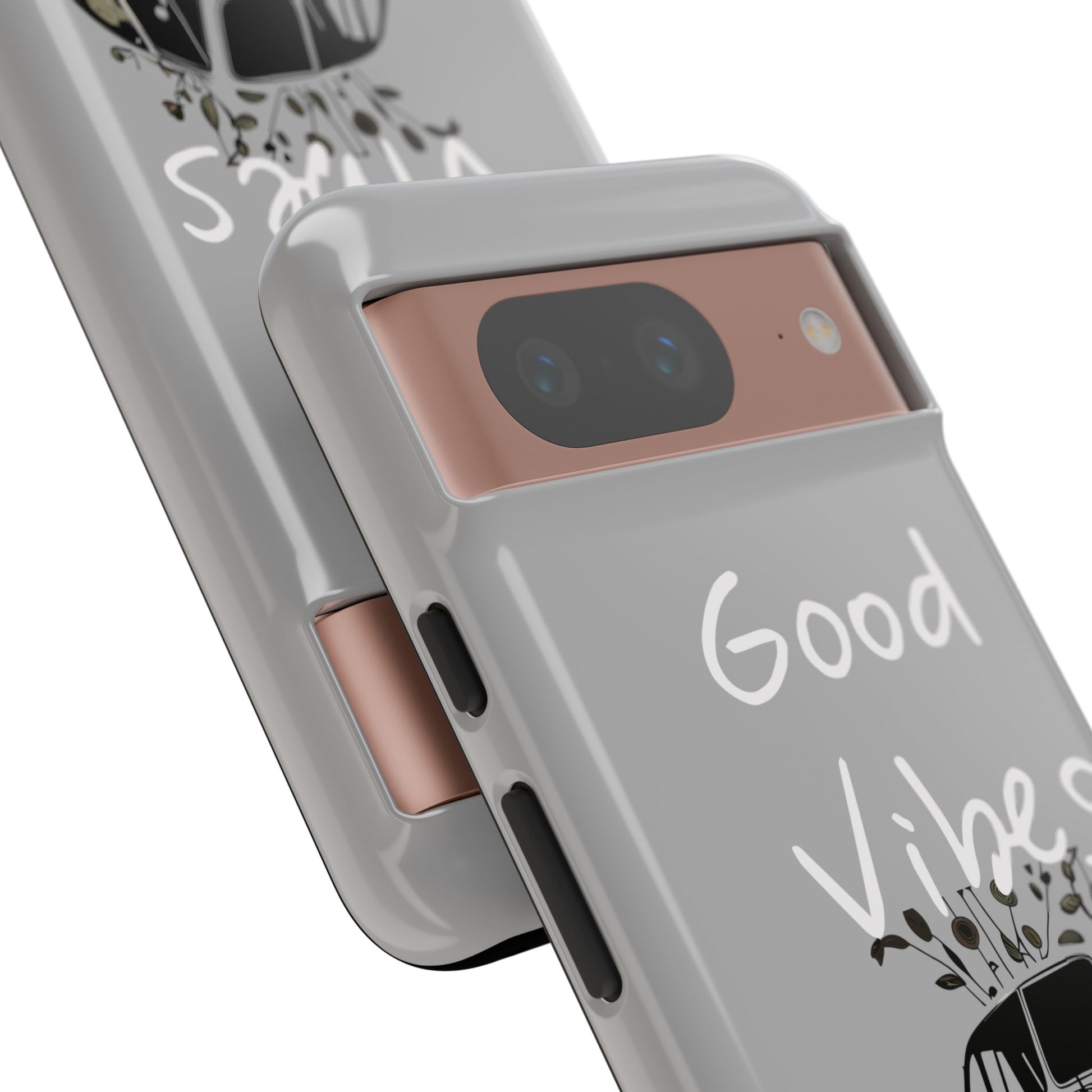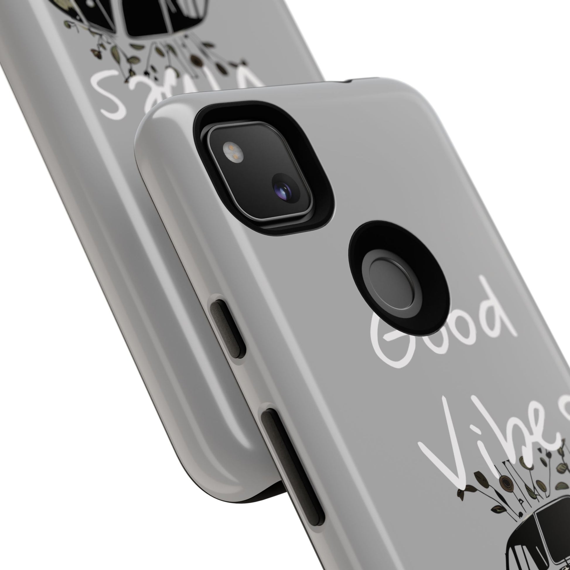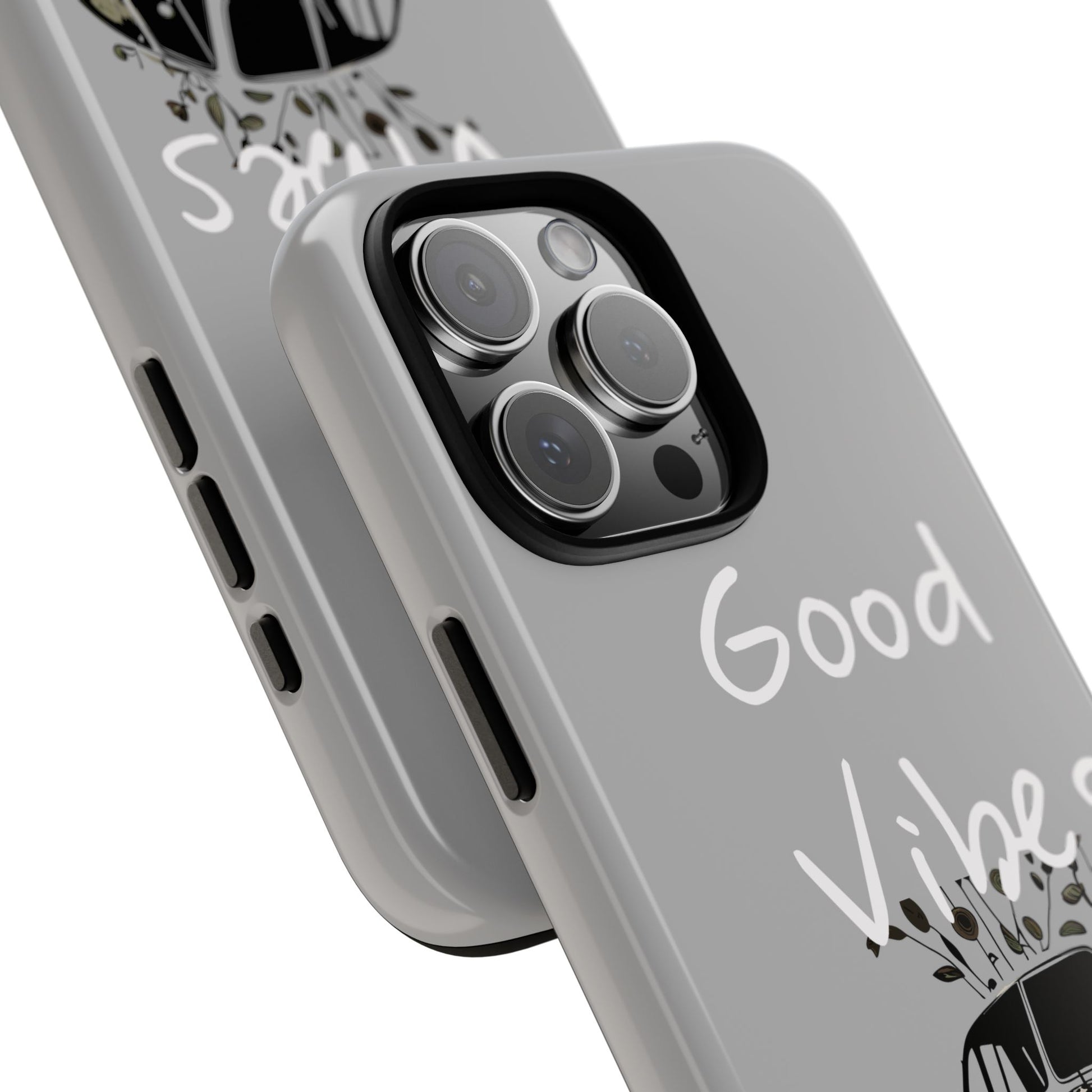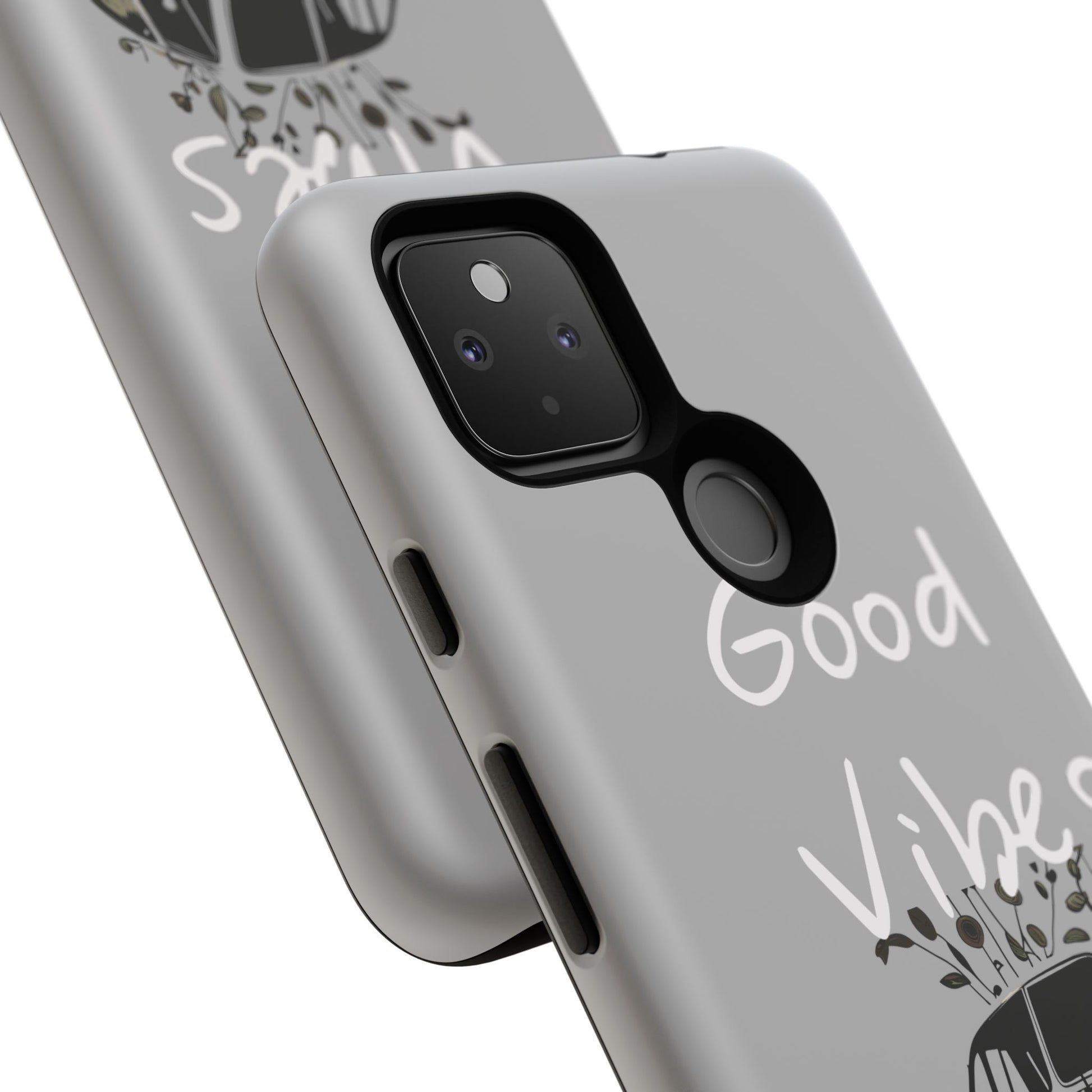 Introducing our protective phone case, designed to make a statement while keeping your device safe. With a fun and vibrant design featuring a colorful floral van and the encouraging phrase 'Good Vibes,' this phone case is perfect for anyone who embraces positivity and creativity. It caters to young adults and those young at heart who appreciate unique accessories that reflect their personality. This phone case not only adds a splash of color to your everyday life but also provides top-notch protection for your phone. It's an ideal gift for birthdays, holidays, or just to treat yourself. Let your phone stand out while being safe from daily bumps and drops!